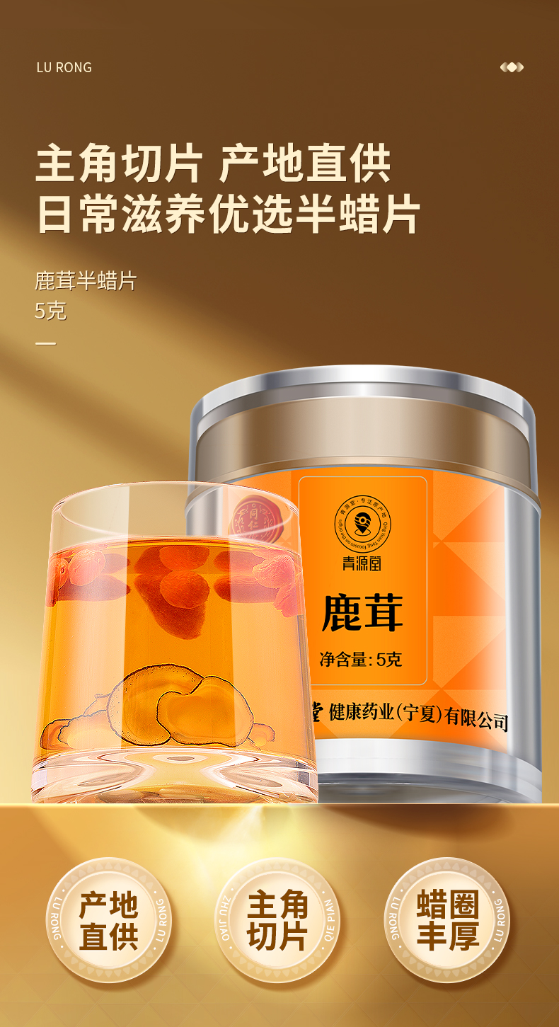 【正宗同仁堂品牌】北京同仁堂 青源堂 鹿茸片 鹿茸半蜡片5克 主角切片 蜡圈丰富 薄厚均匀SY