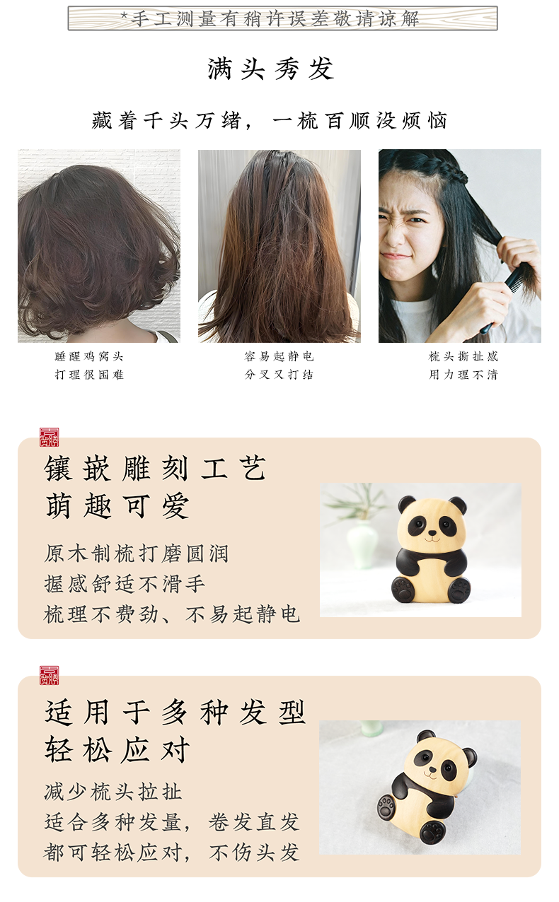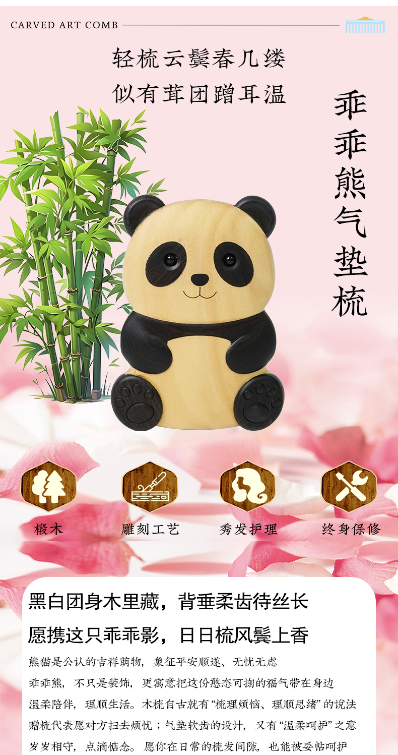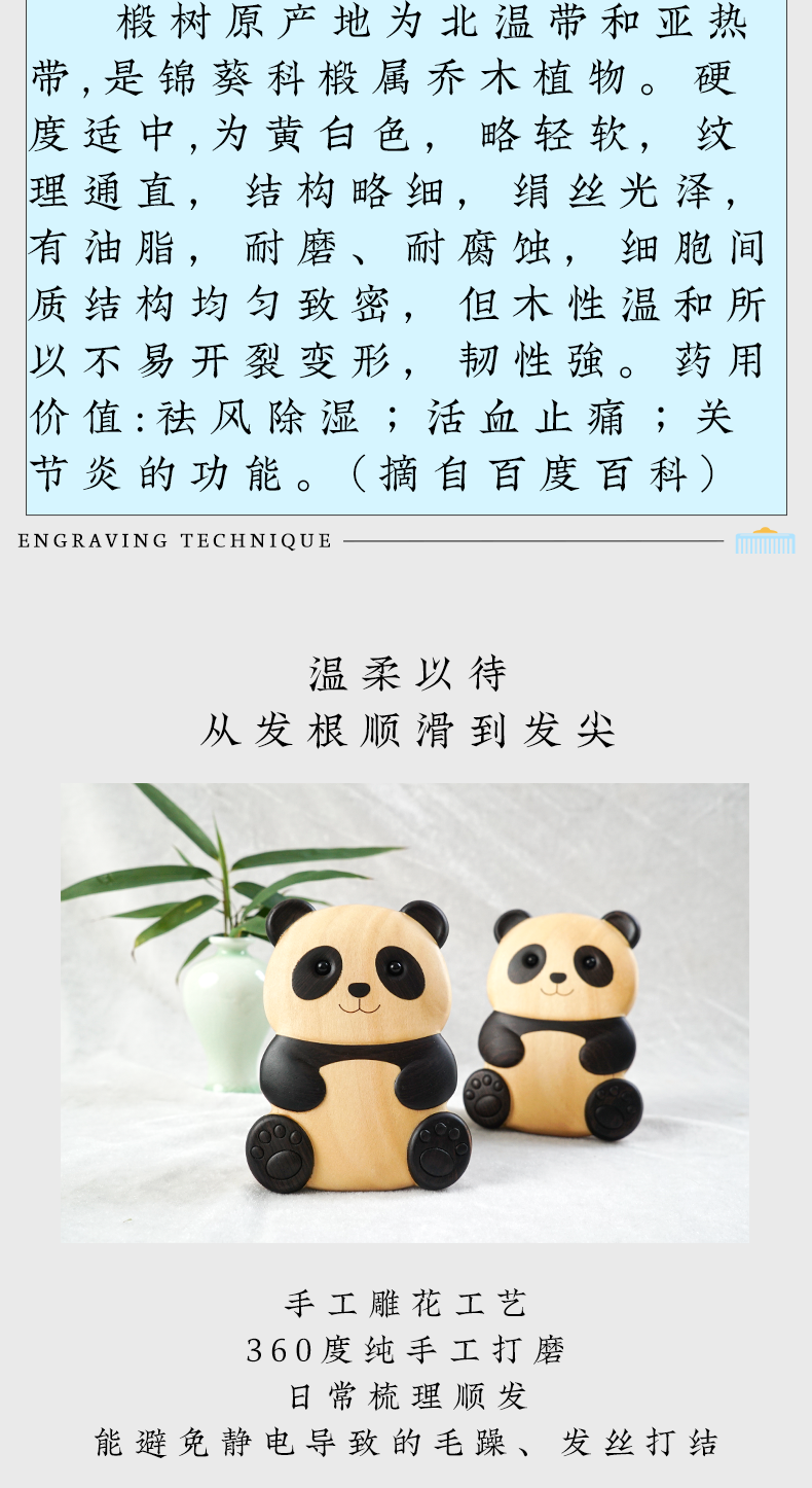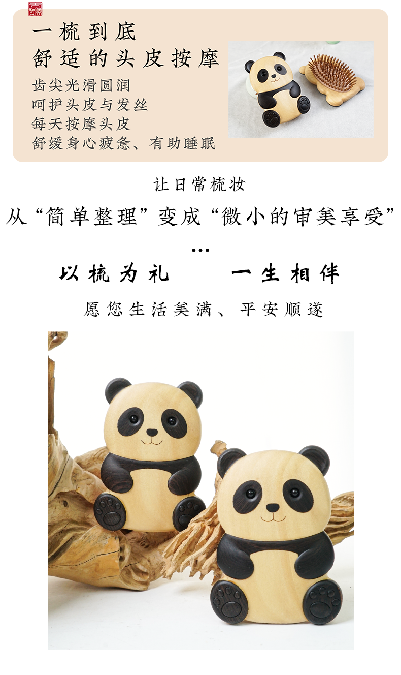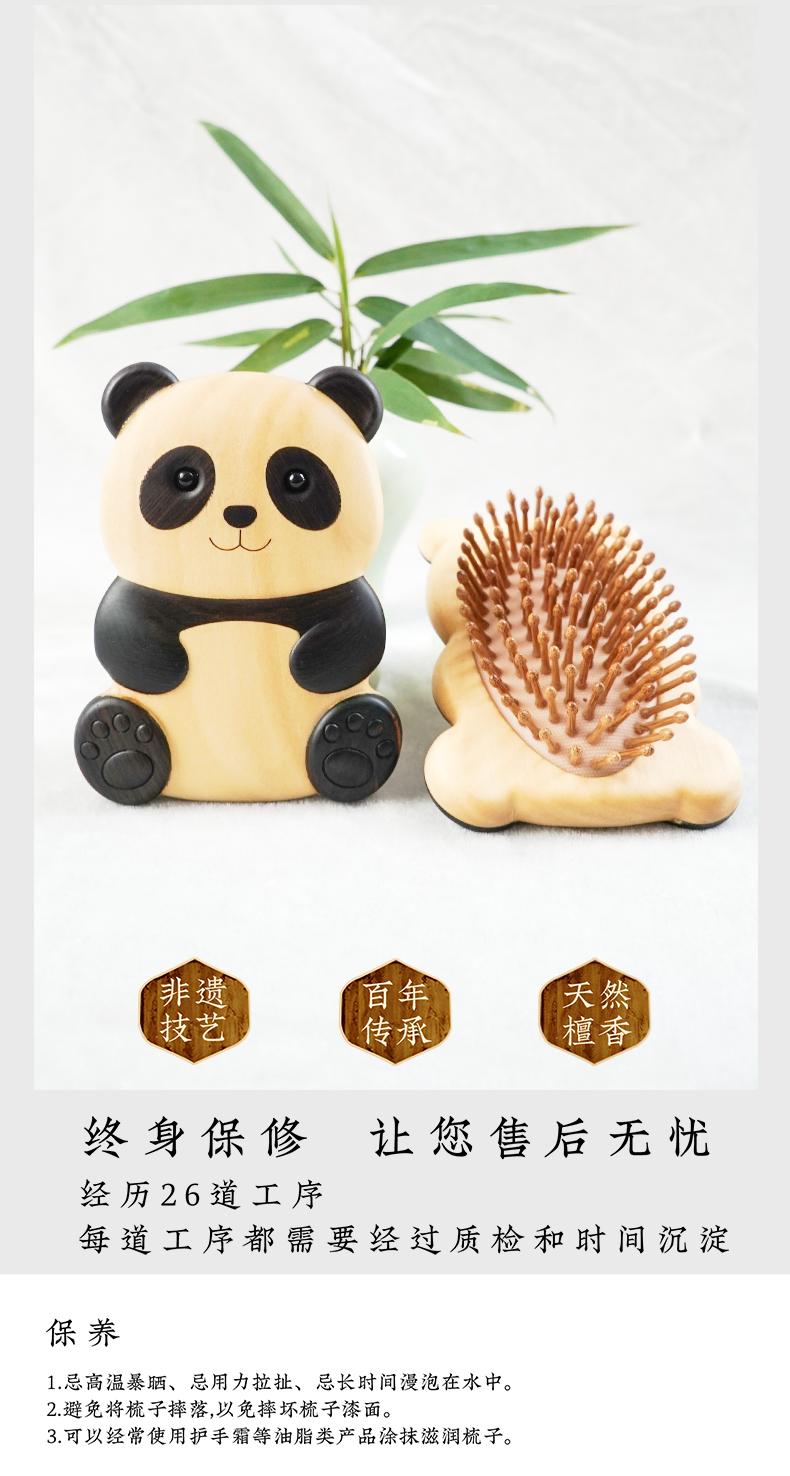 周广胜新品创意熊猫造型经络按摩梳家用护发蓬发礼盒女士专用送礼