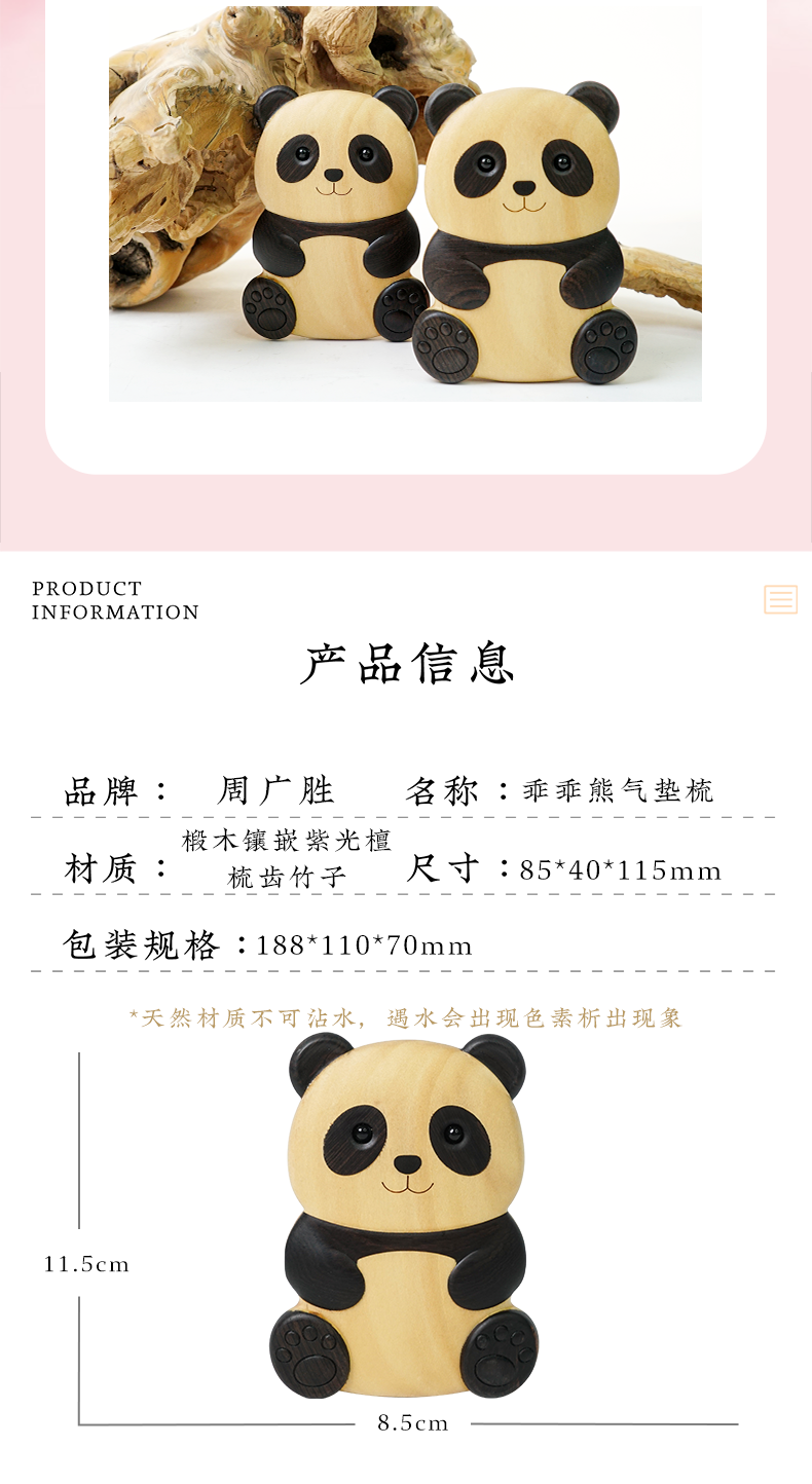 周广胜熊猫造型乖乖熊气垫梳按摩梳家用便携式护发顺发梳子礼盒装