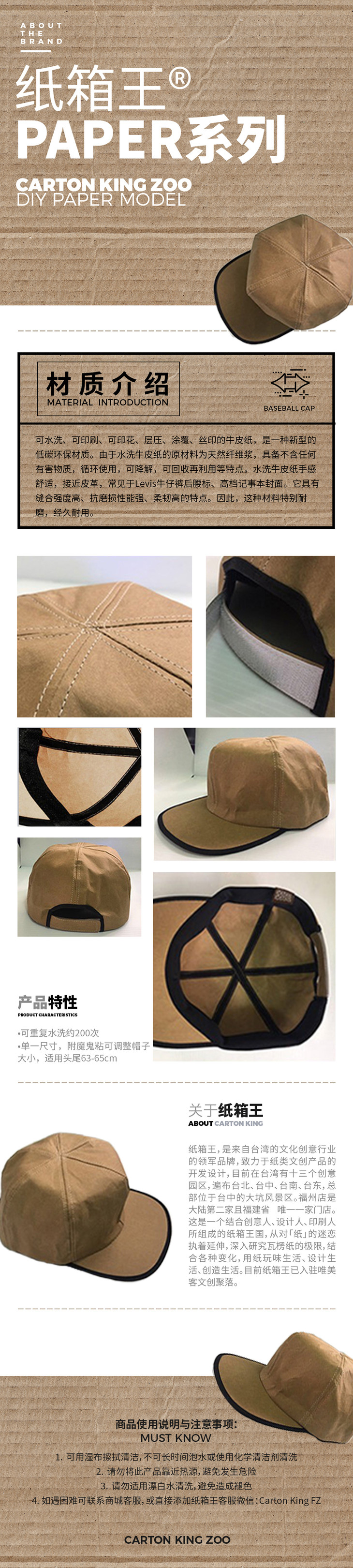 台湾纸箱王 PAPER系列 嘻哈帽 时尚可水洗牛皮纸帽