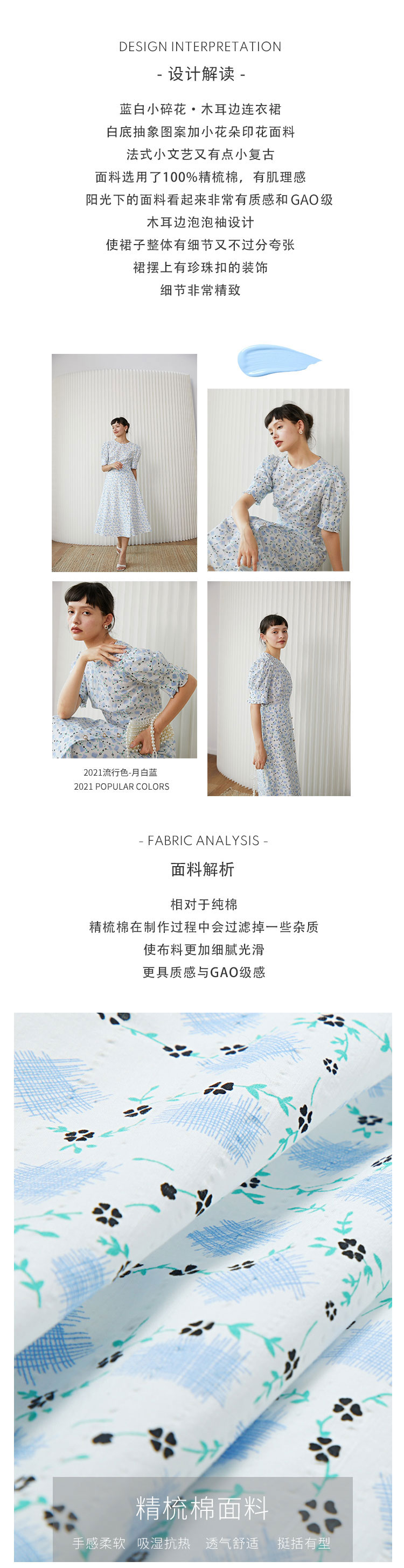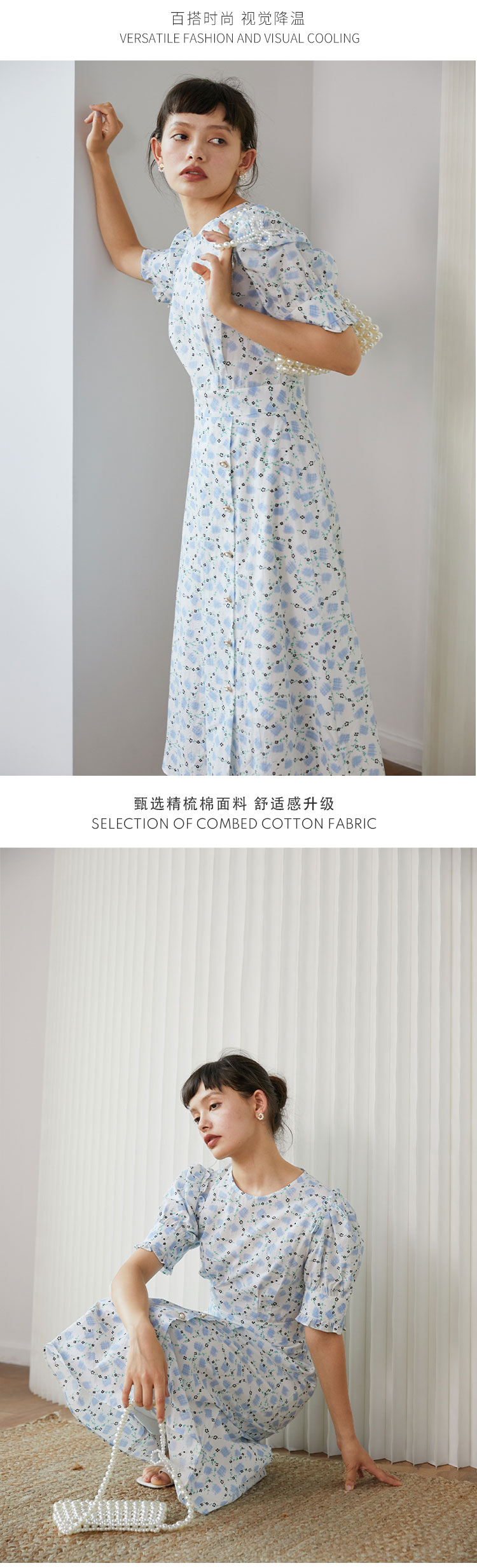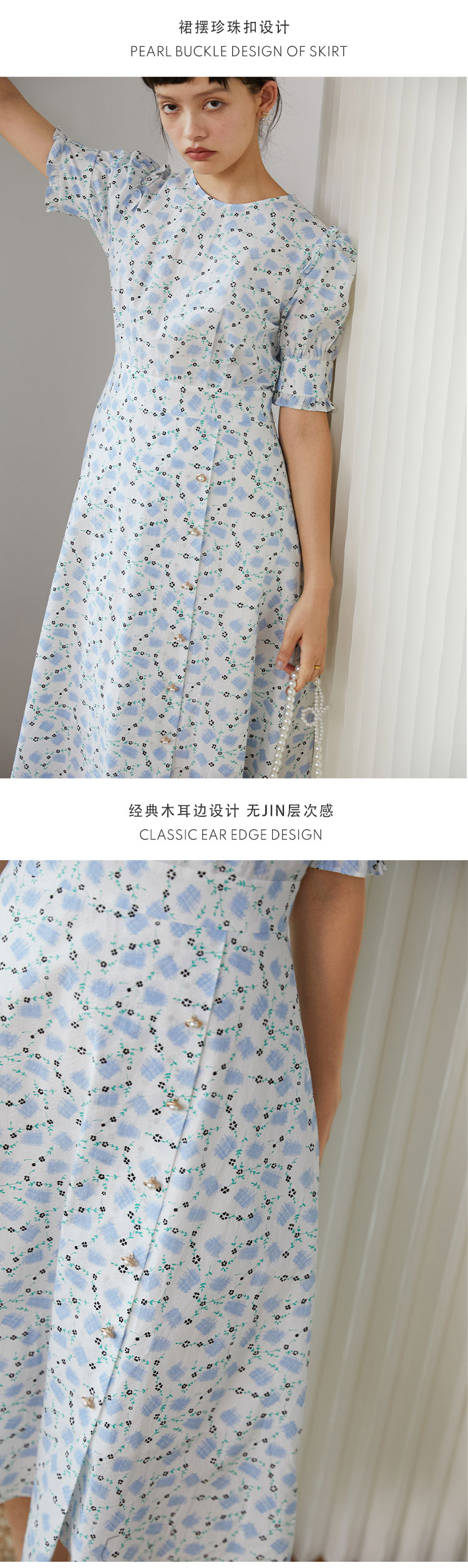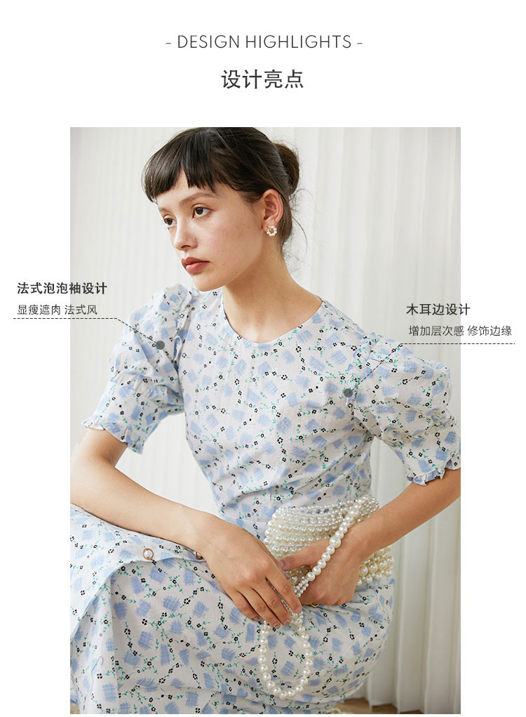 HeyDress法式复古碎花裙连衣裙女夏季新款收腰显瘦长裙木耳边薄款纯棉裙子