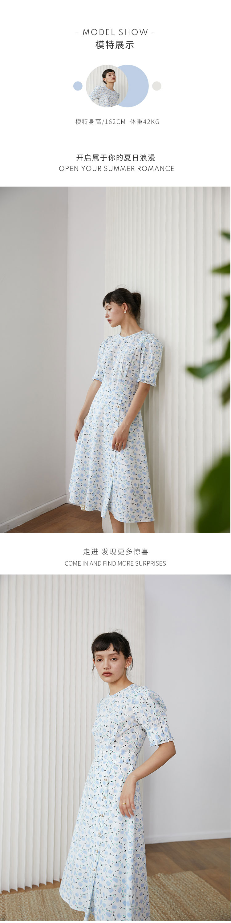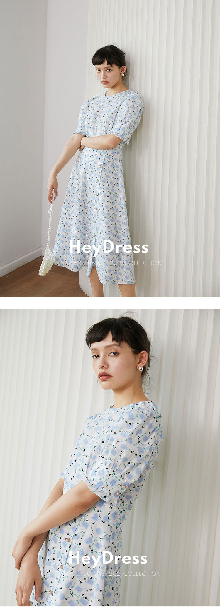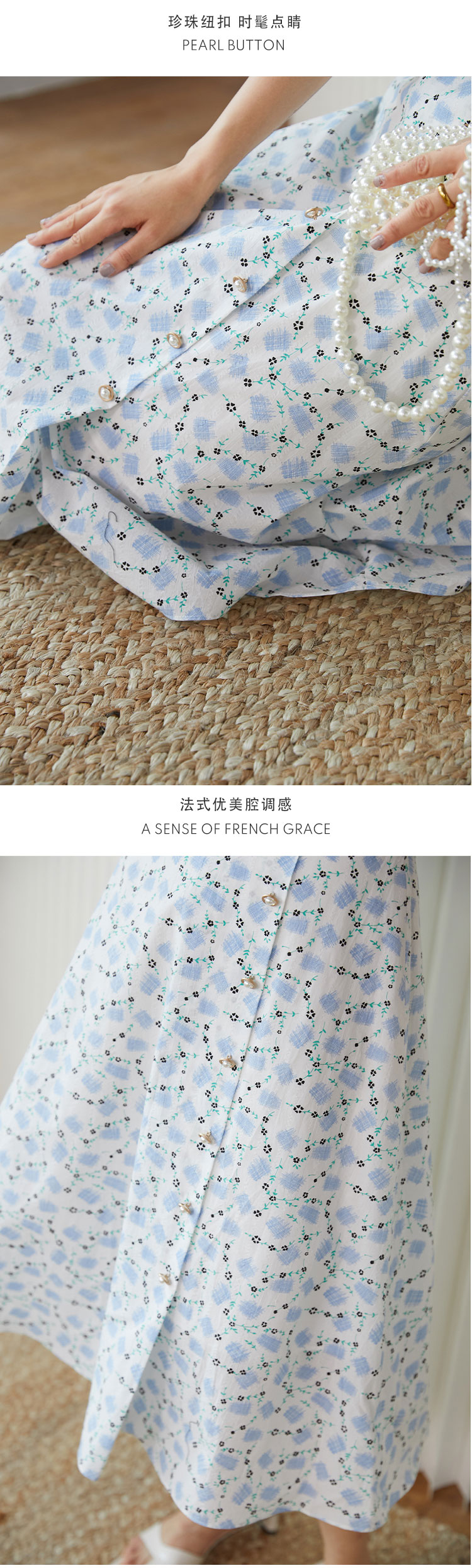 HeyDress法式复古碎花裙连衣裙女夏季新款收腰显瘦长裙木耳边薄款纯棉裙子