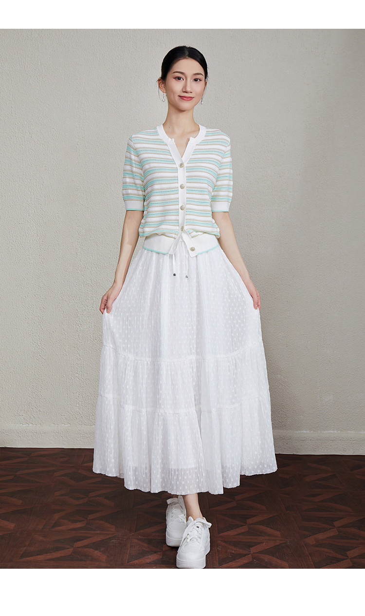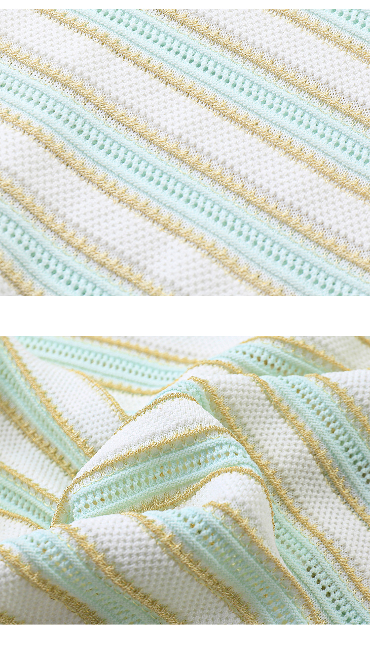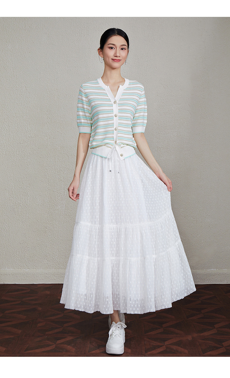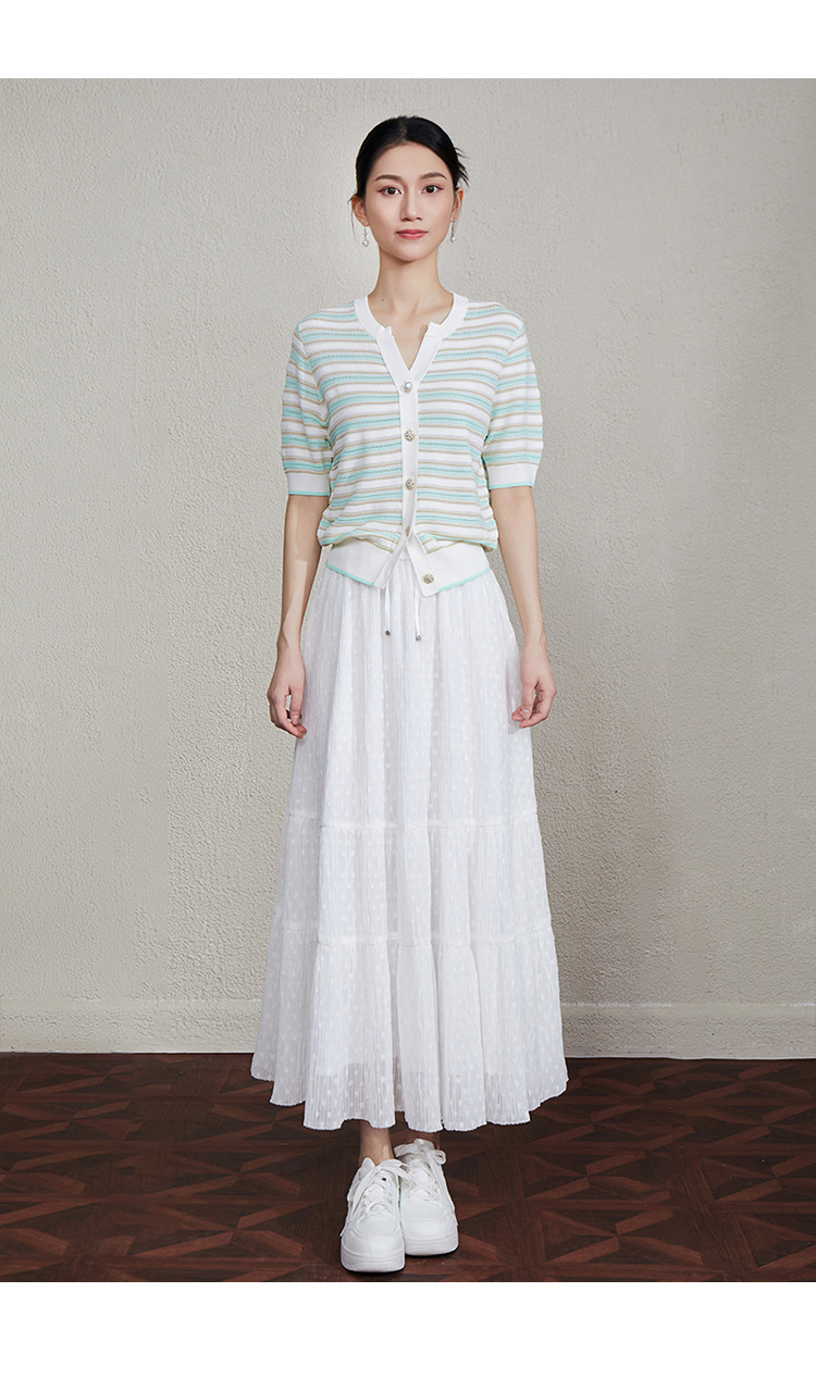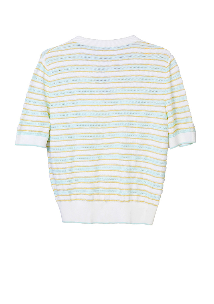 「自」全新升级【铂金会员275/天猫369/差价94】(80940)洛诗琳夏季新款V领撞色通勤百搭气质条纹镂空针织开衫女