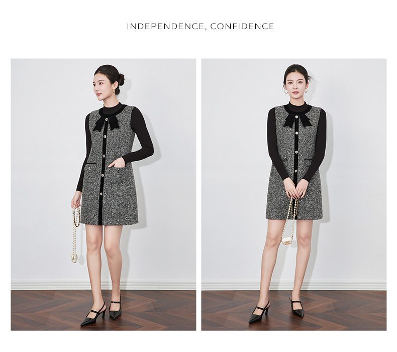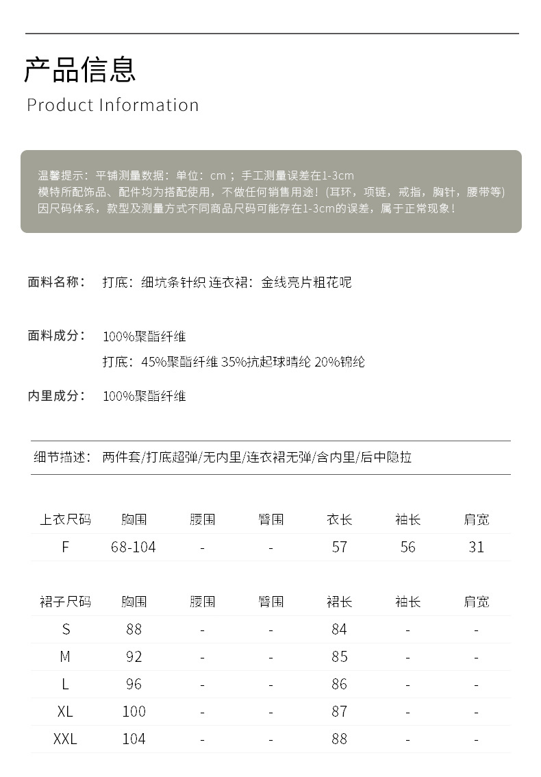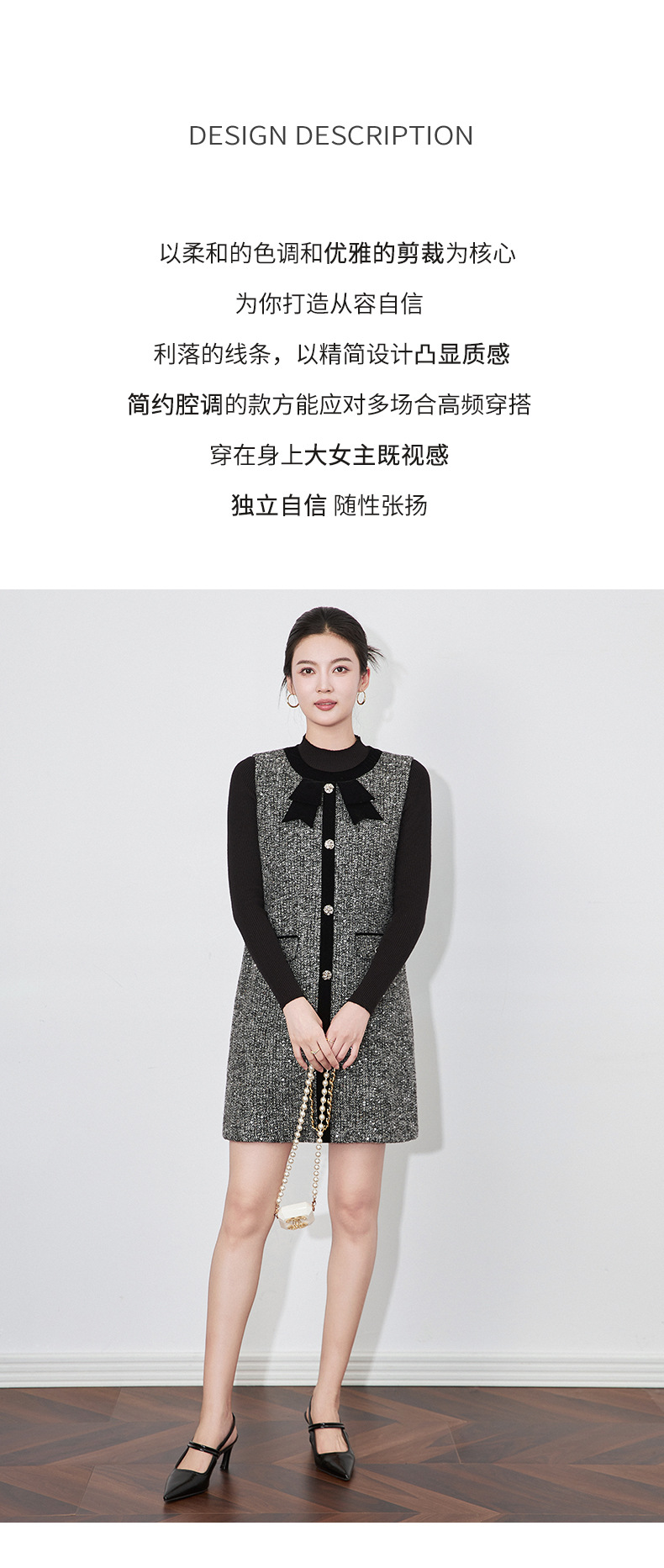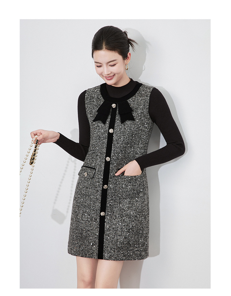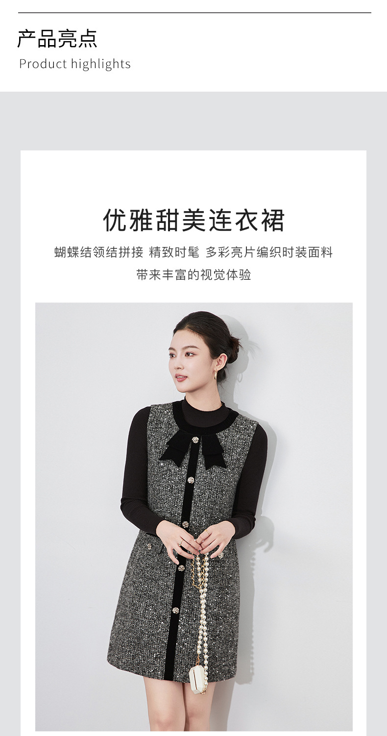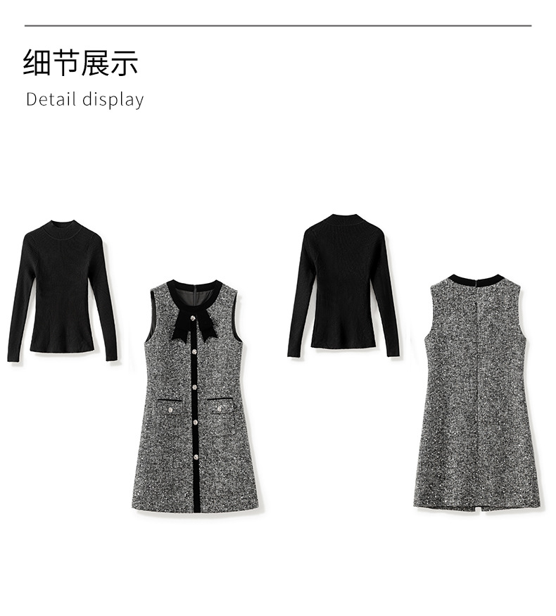 【高货wl】全新升级【铂金会员339/天猫459/差价120】(40408) 洛诗琳新款立领细坑条针织打底衫亮片蝴蝶结背心裙套装