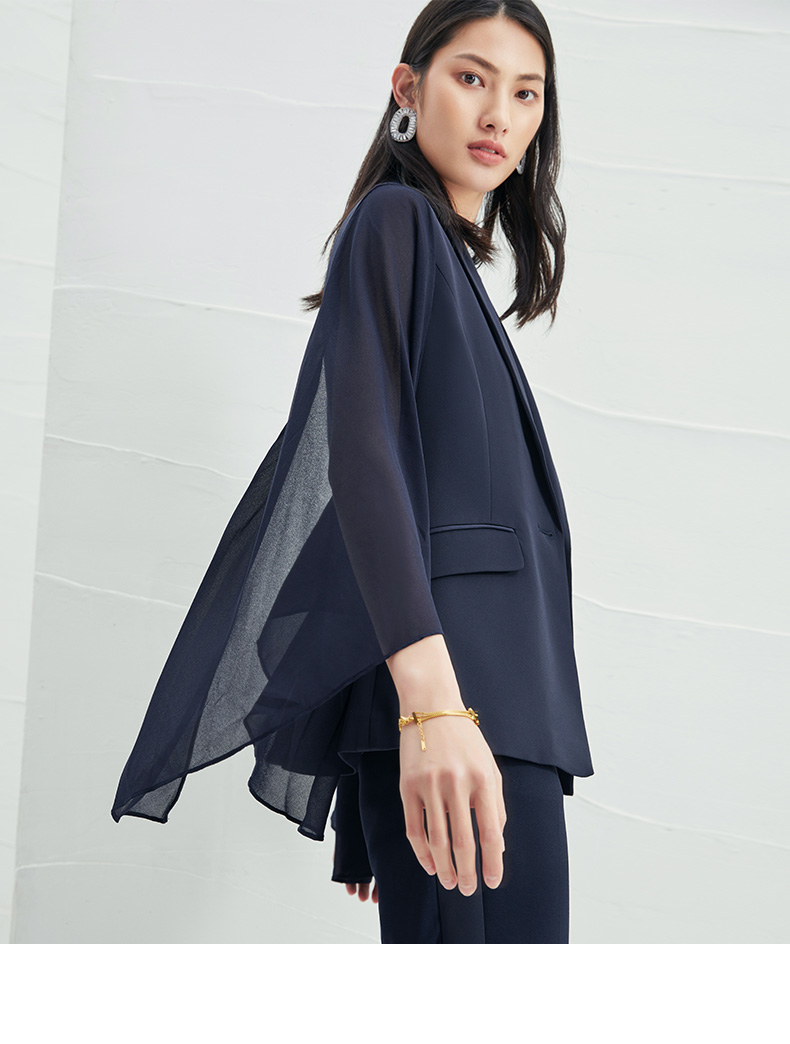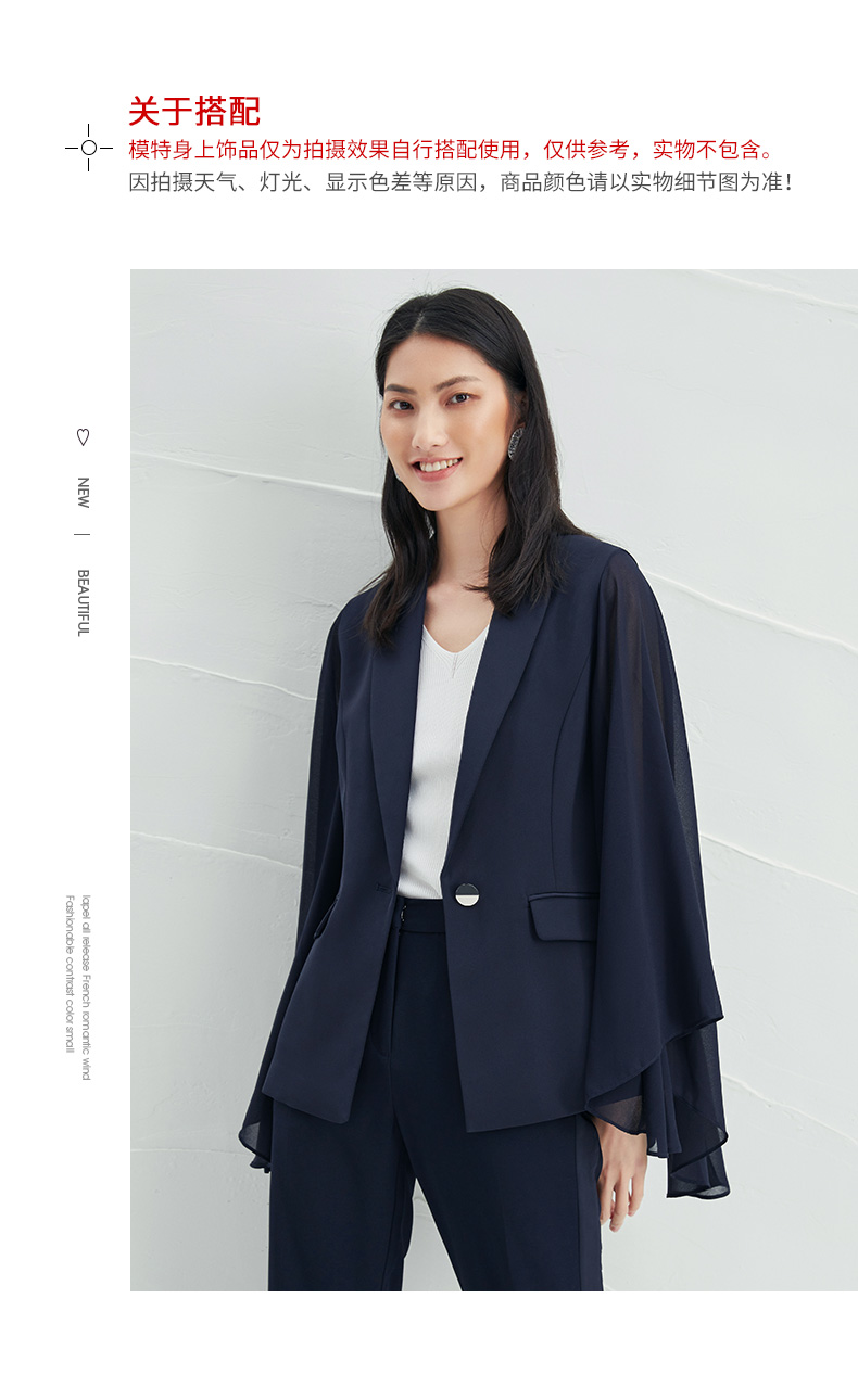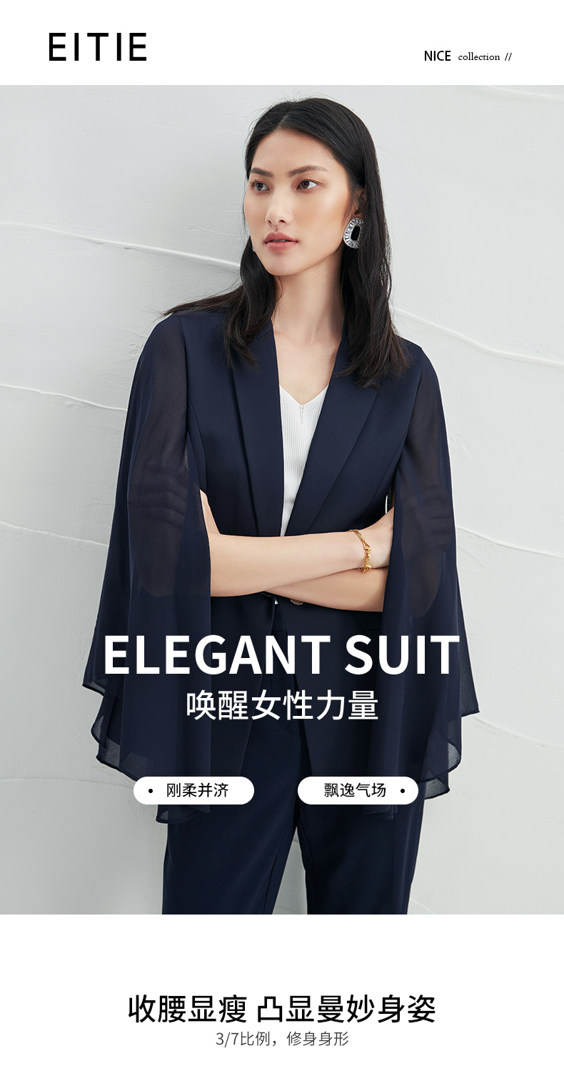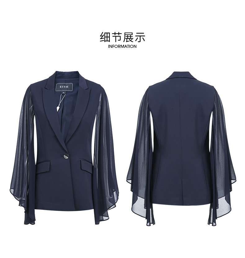 EITIE爱特爱V领纯色高贵修身优雅雪纺袖外套6603303