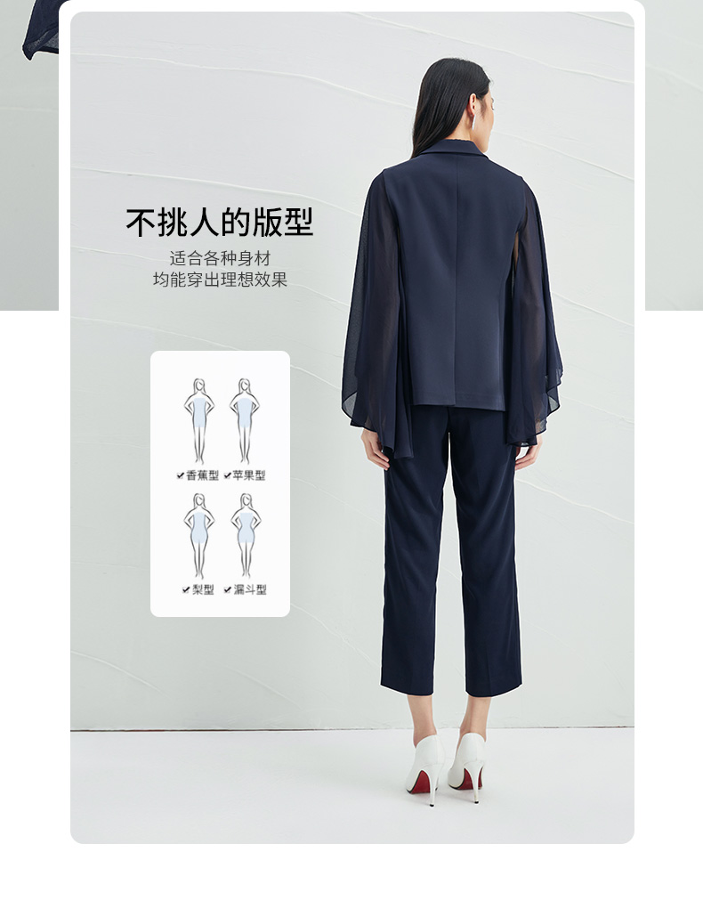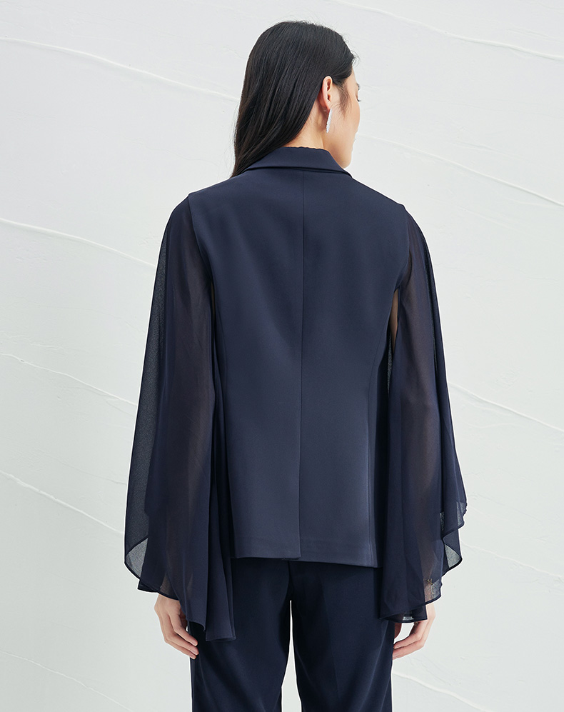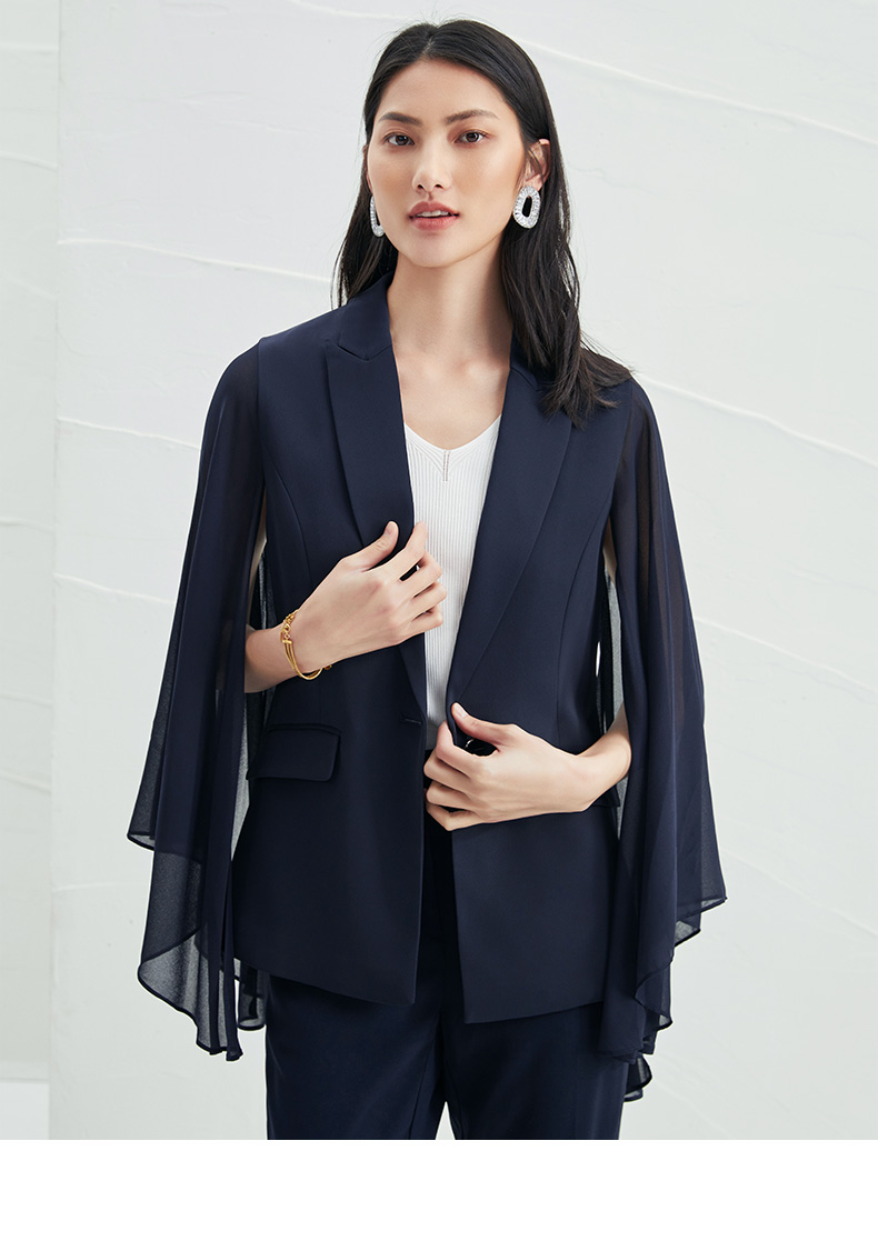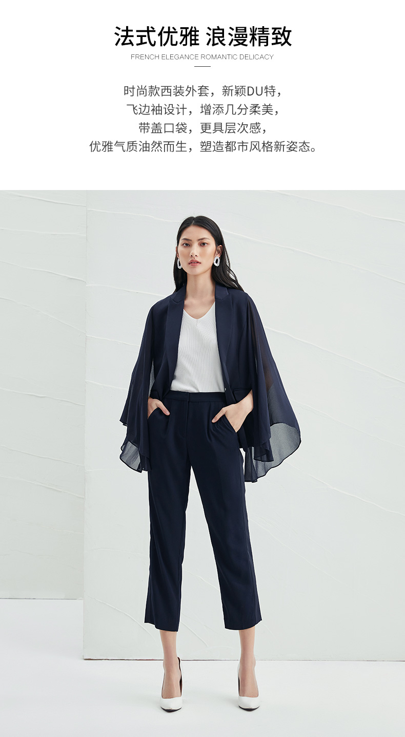 EITIE爱特爱V领纯色高贵修身优雅雪纺袖外套6603303