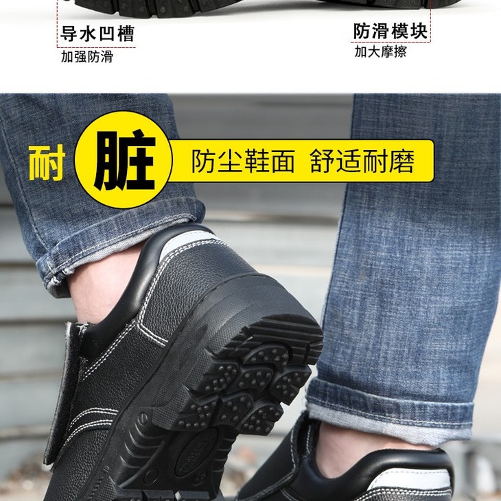 劳保鞋男女防砸防刺穿工作鞋休闲牛皮翻盖焊工鞋舒适橡胶耐磨四季款功能鞋 黑色