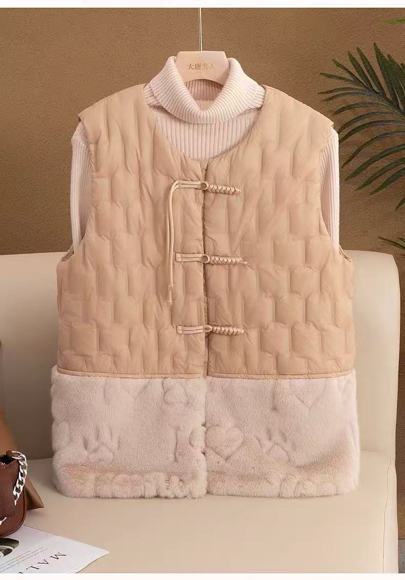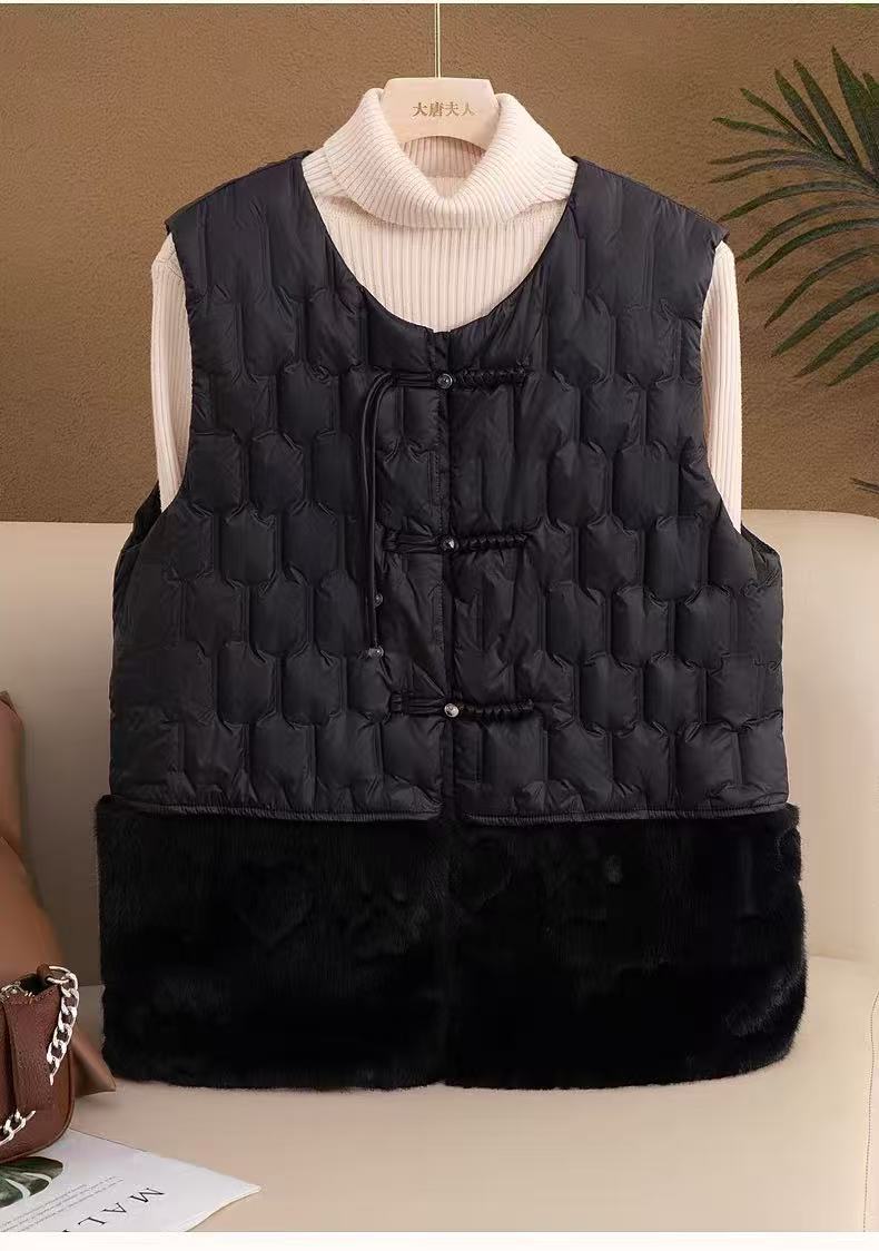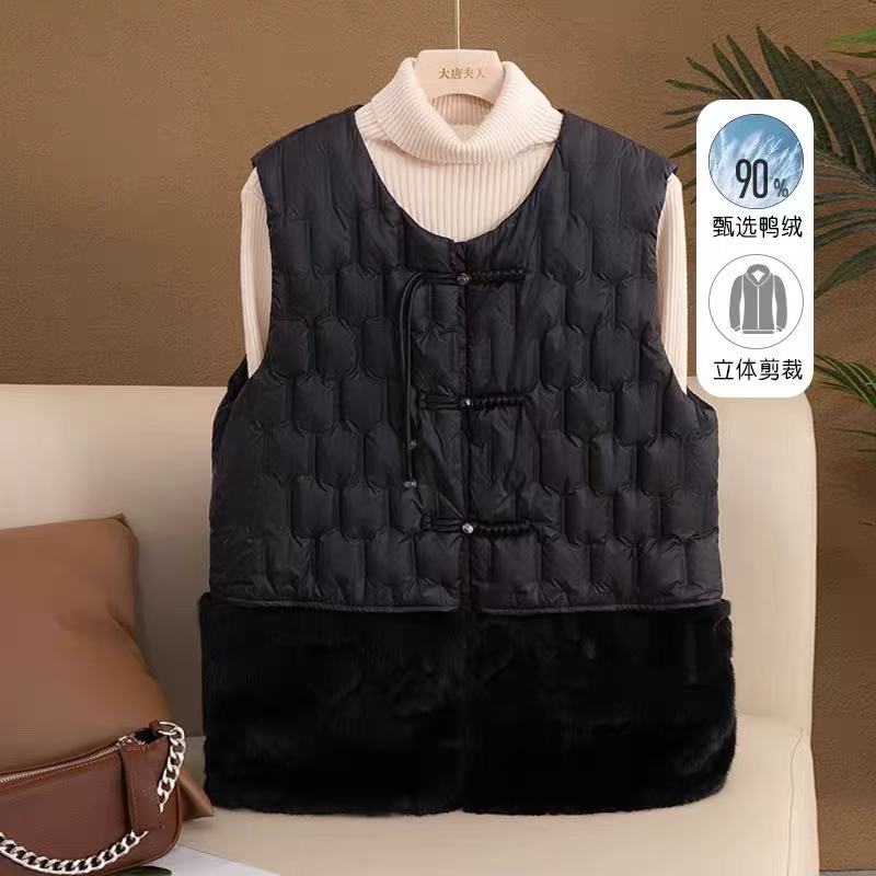 【孤品捡漏】(羽绒 90%白鸭绒)G62羽绒拼环保毛新中式马甲-喜出