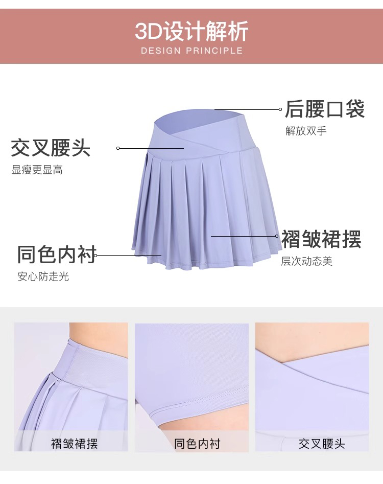 【限时秒】YOGACODE【火树银花系列】2024 假两件百褶瑜伽裙女防走光羽毛球网球裙 DSJ468