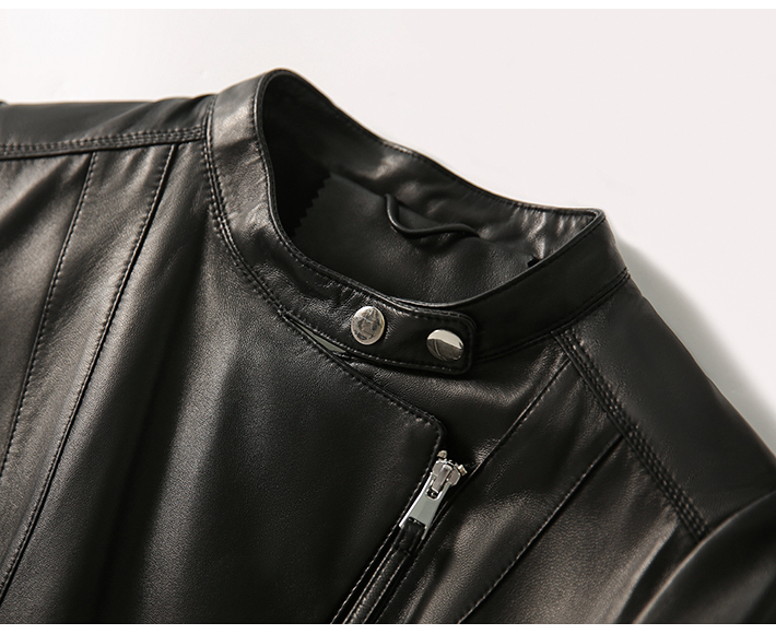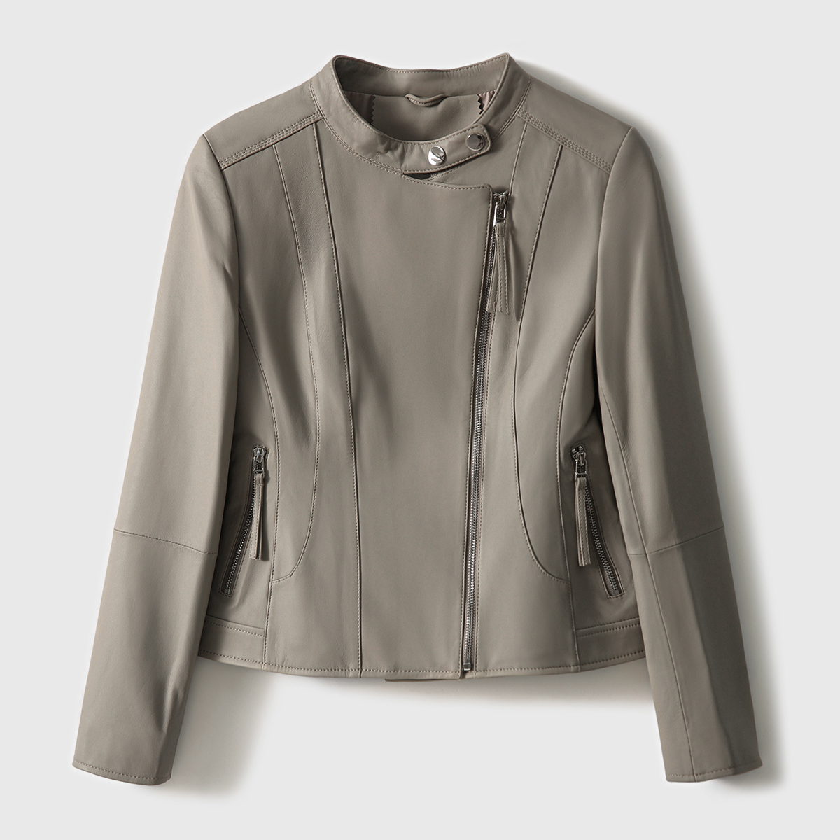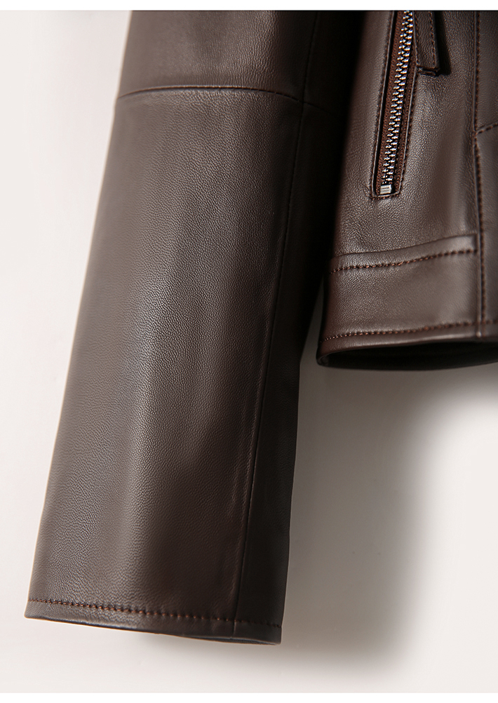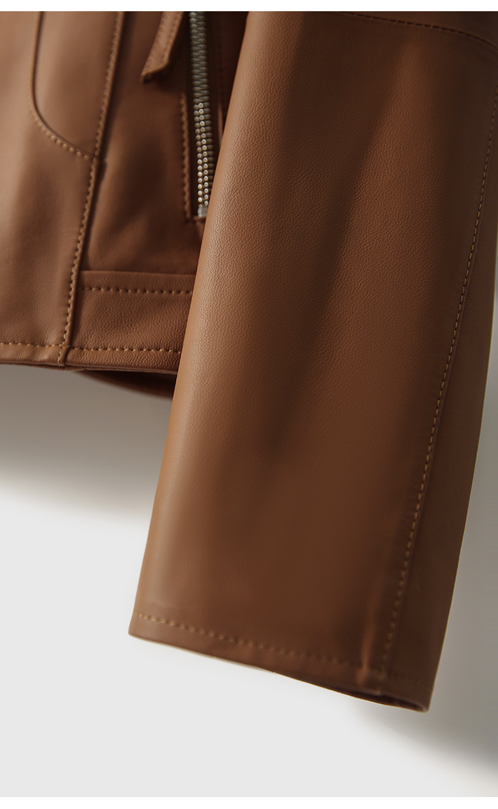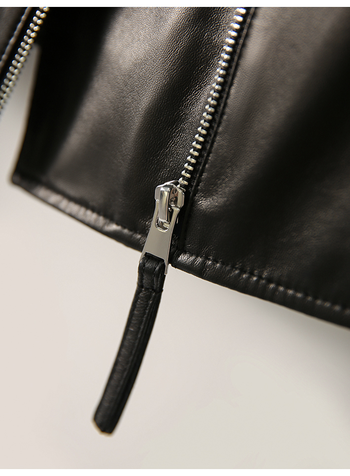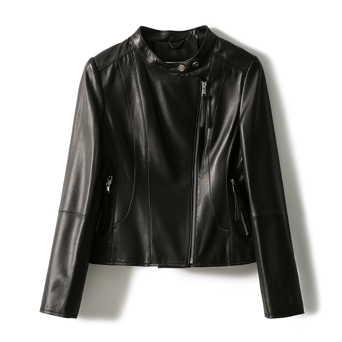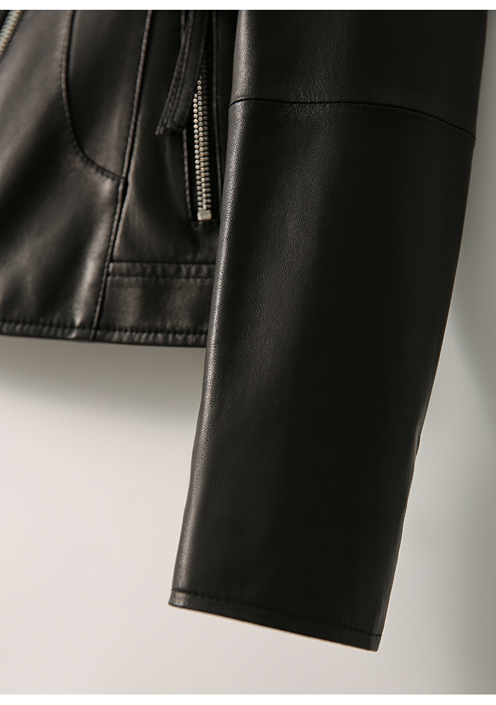 ALBB-秋冬时尚百搭短款重磅修身版轻涂仿绵羊皮皮衣女立领机车夹克