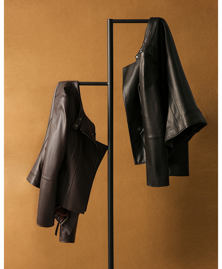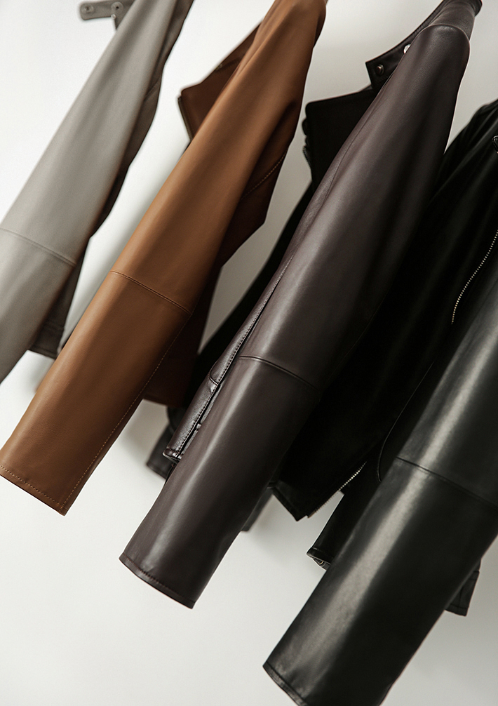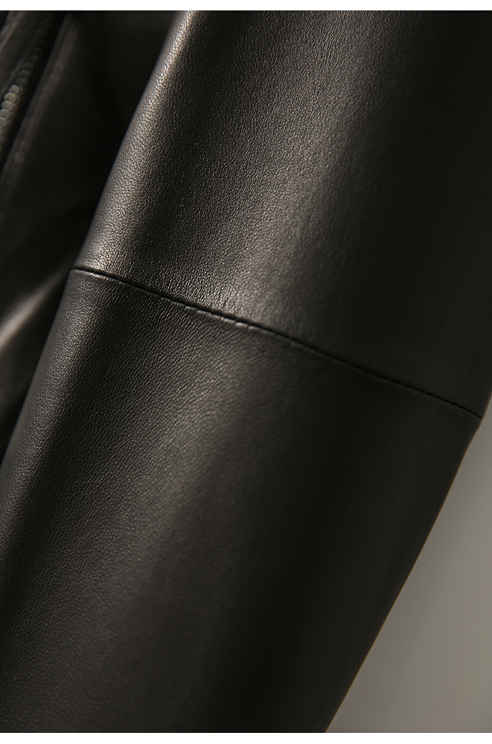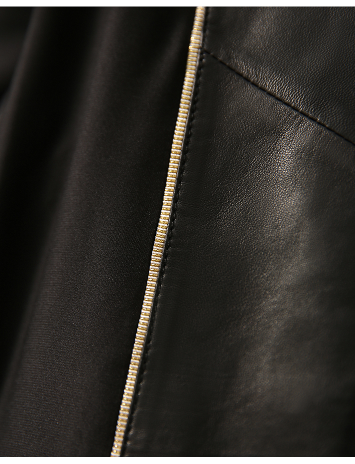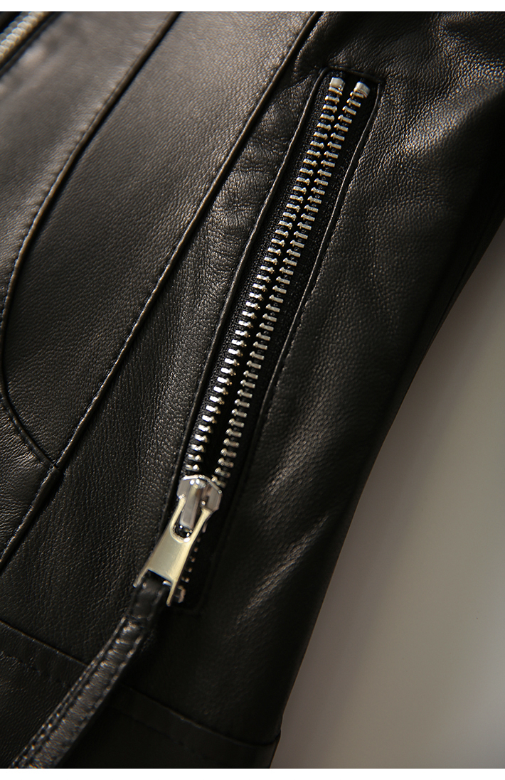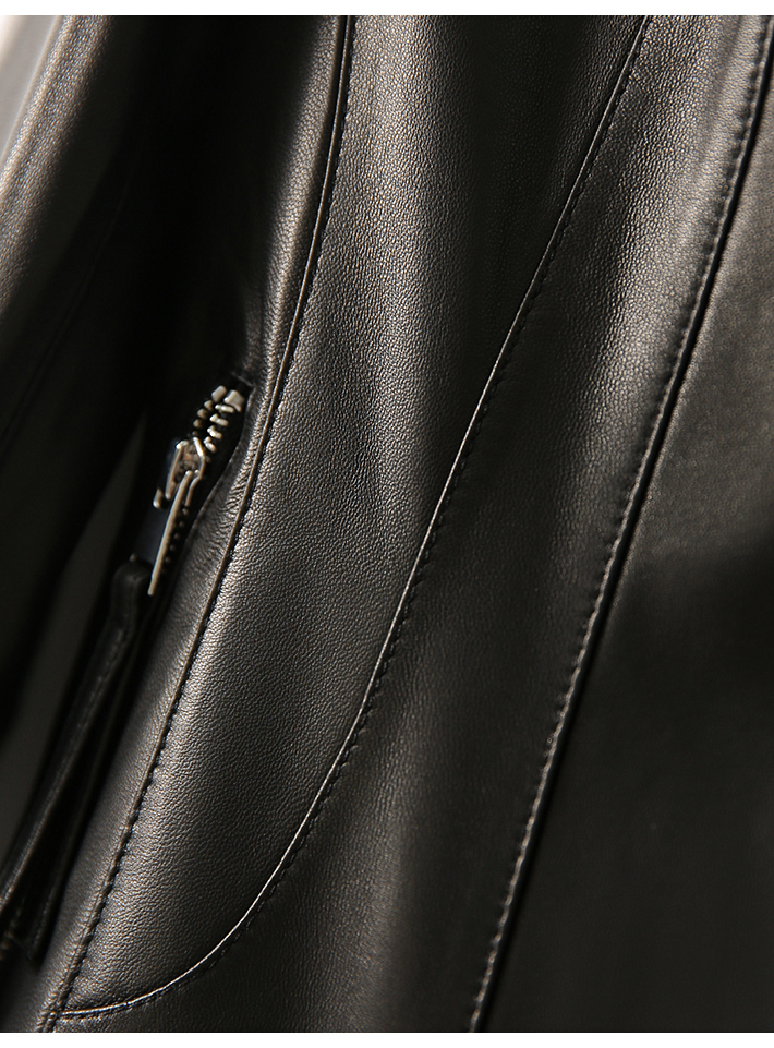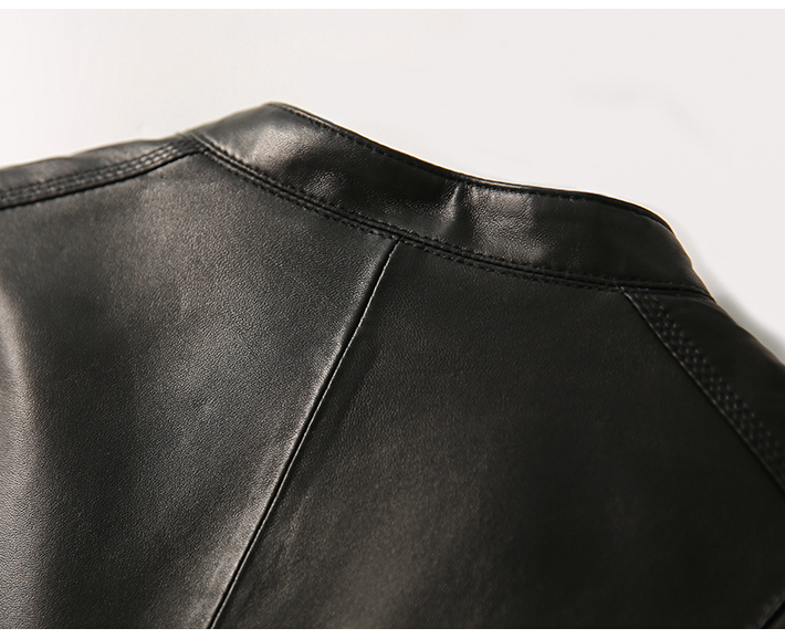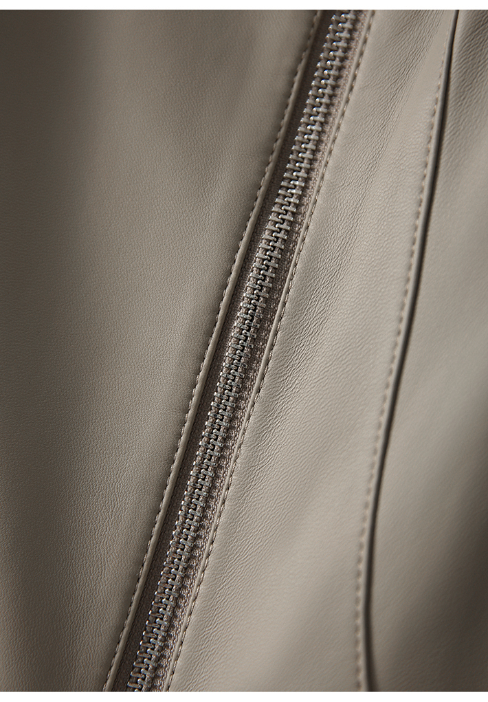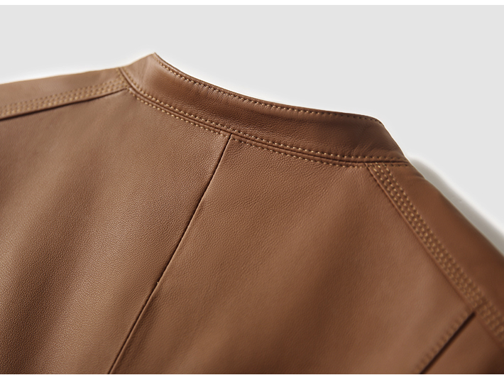 ALBB-秋冬时尚百搭短款重磅修身版轻涂仿绵羊皮皮衣女立领机车夹克
