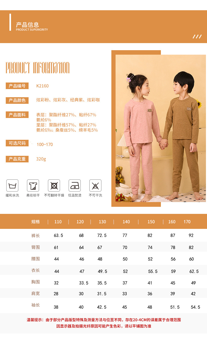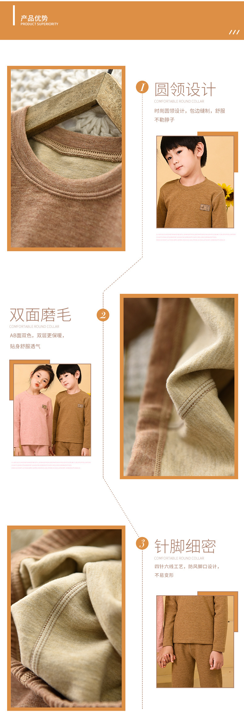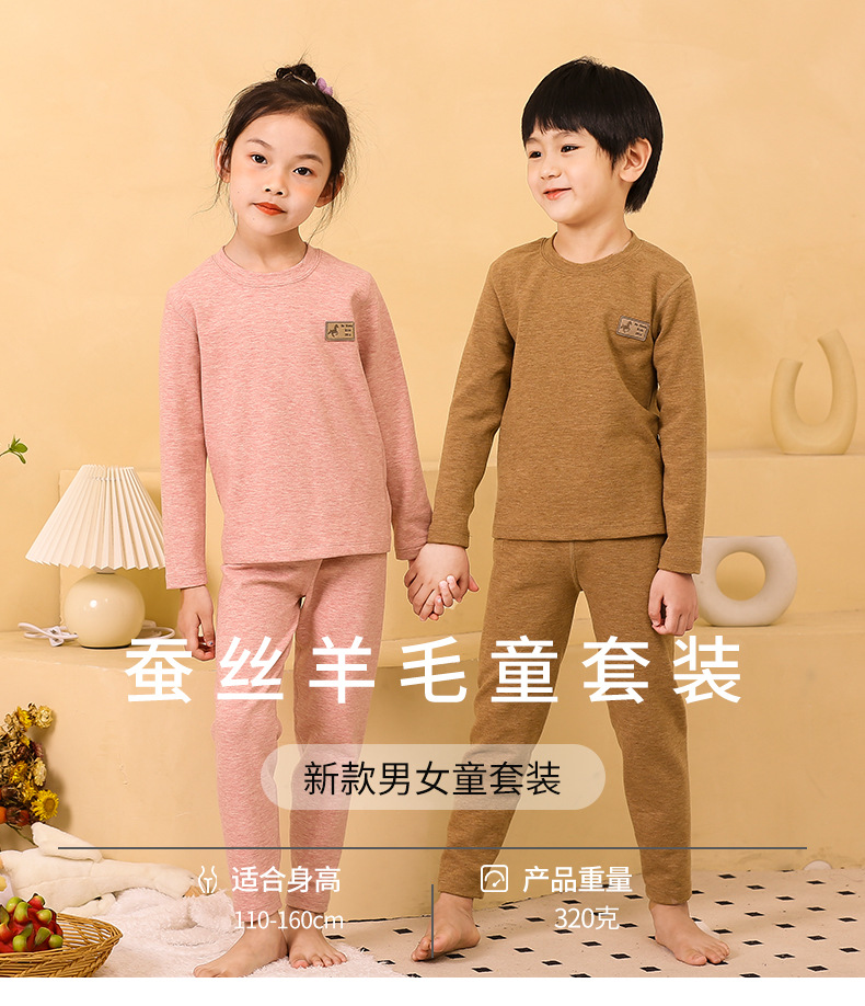 "雀说儿童蚕丝羊毛德绒保暖内衣套装冬季新款中大童保暖衣男童秋衣秋裤AL K2160"