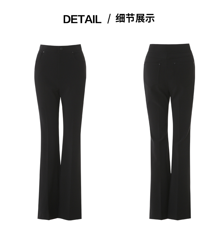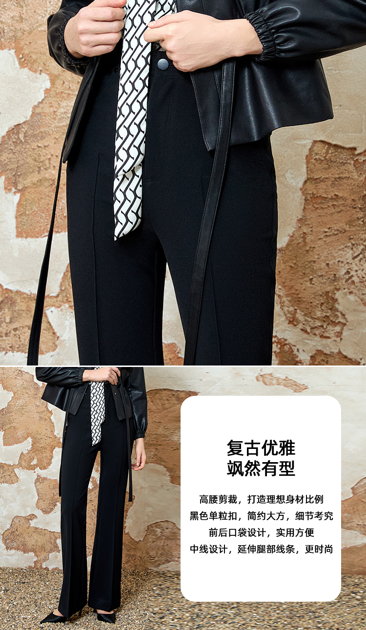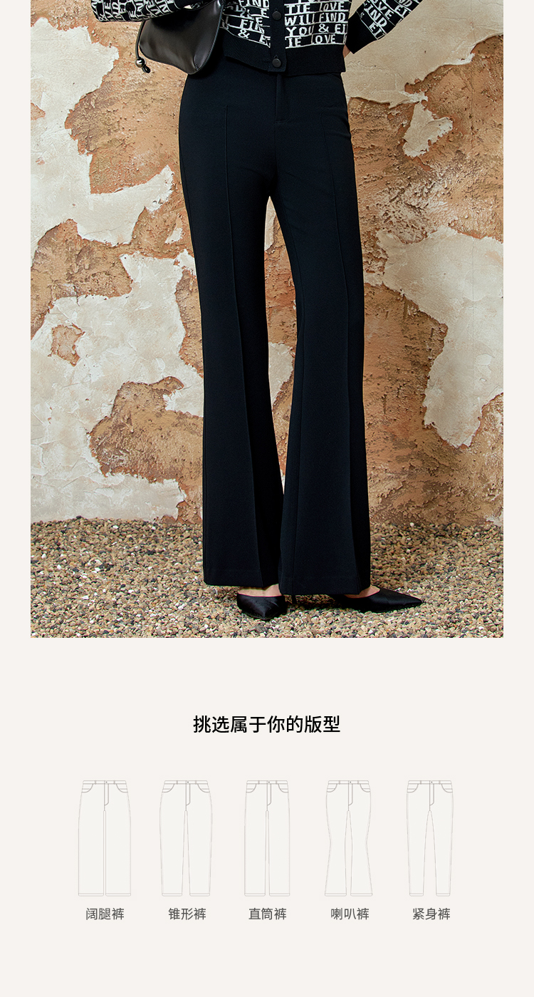 EITIE爱特爱气质通勤高腰显瘦黑色微喇休闲裤2025春新款8105802