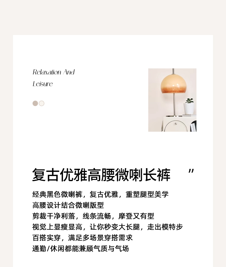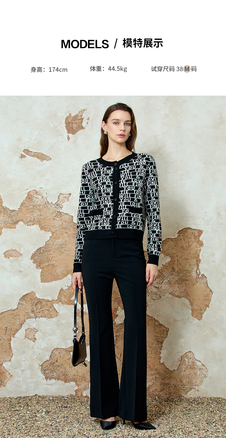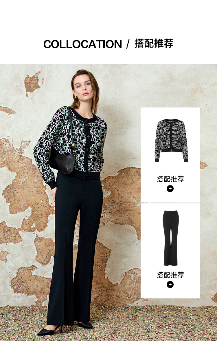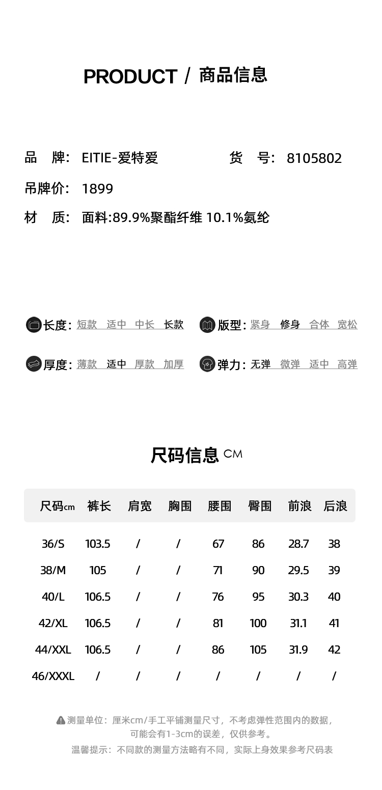 EITIE爱特爱气质通勤高腰显瘦黑色微喇休闲裤2025春新款8105802