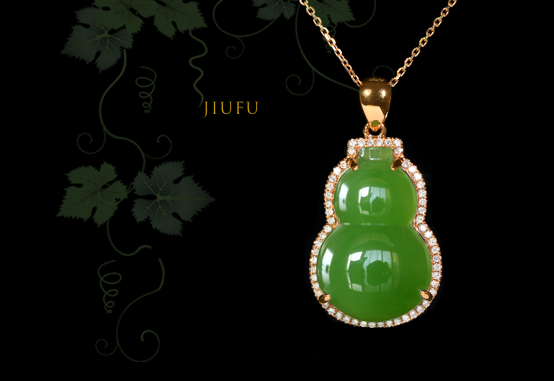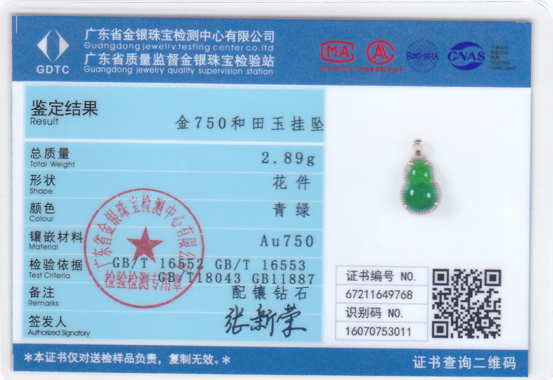 玉石尺寸:单面葫芦12*18mm/苹果绿 配镶:钻石