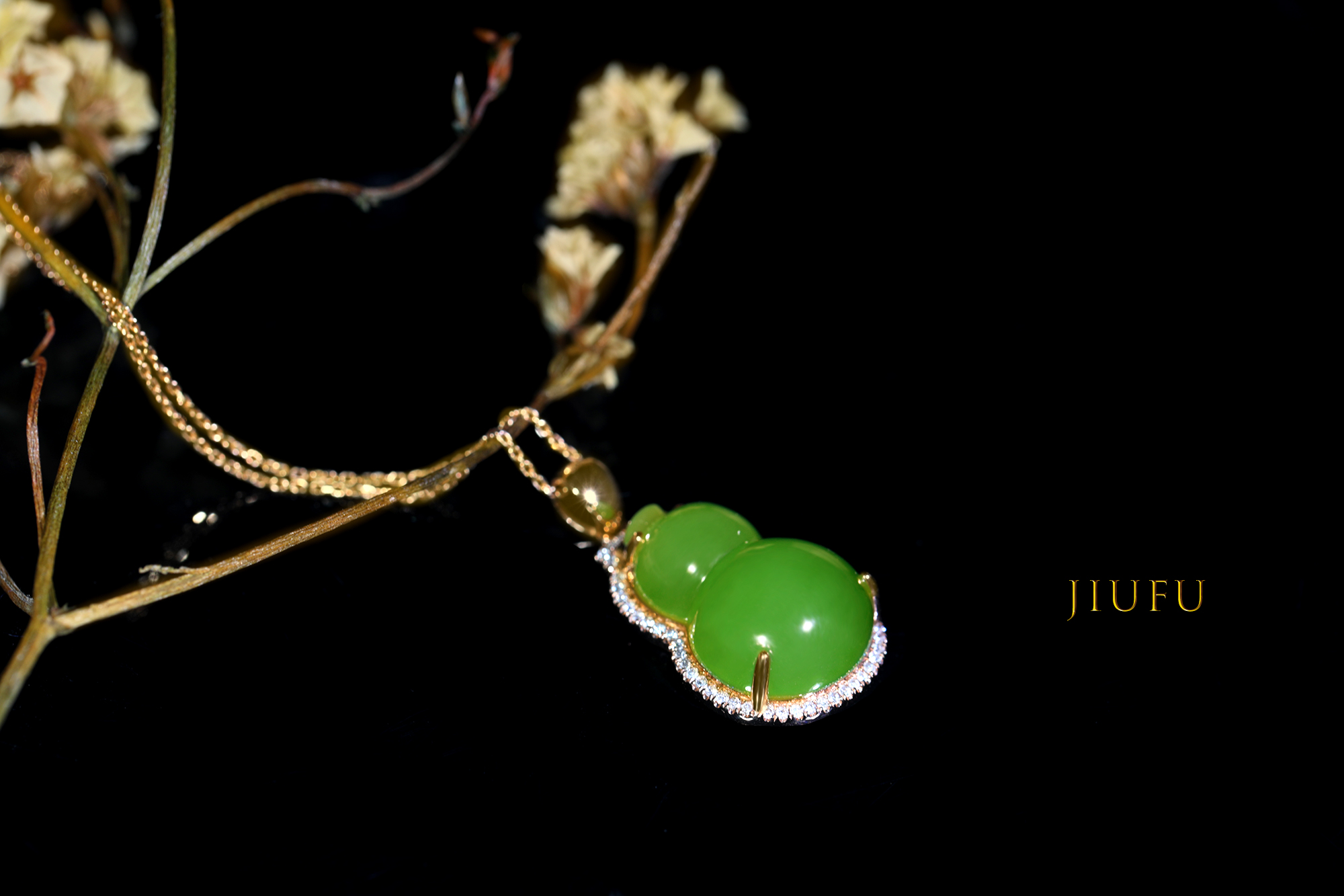 18K玫瑰金和田玉(碧玉)吊坠