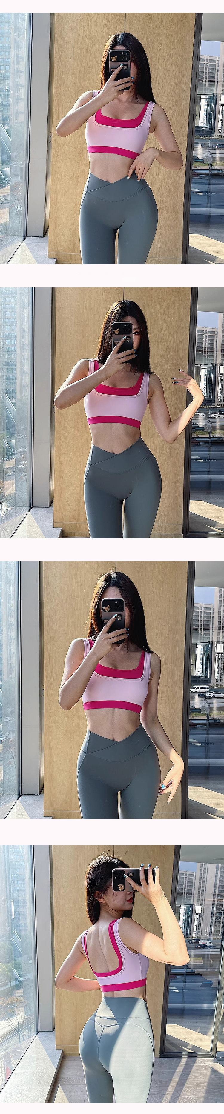 【限时秒】YOGACODE【火树银花系列】2024 春夏瑜伽服背心带胸垫辣妹假两件撞色健身背心DSB774
