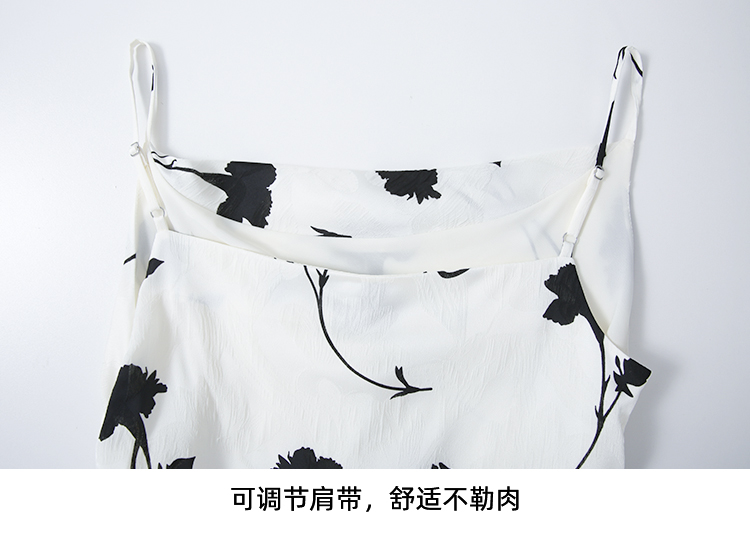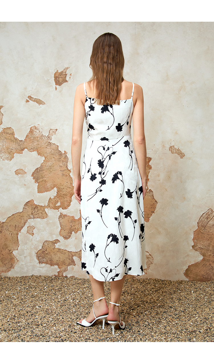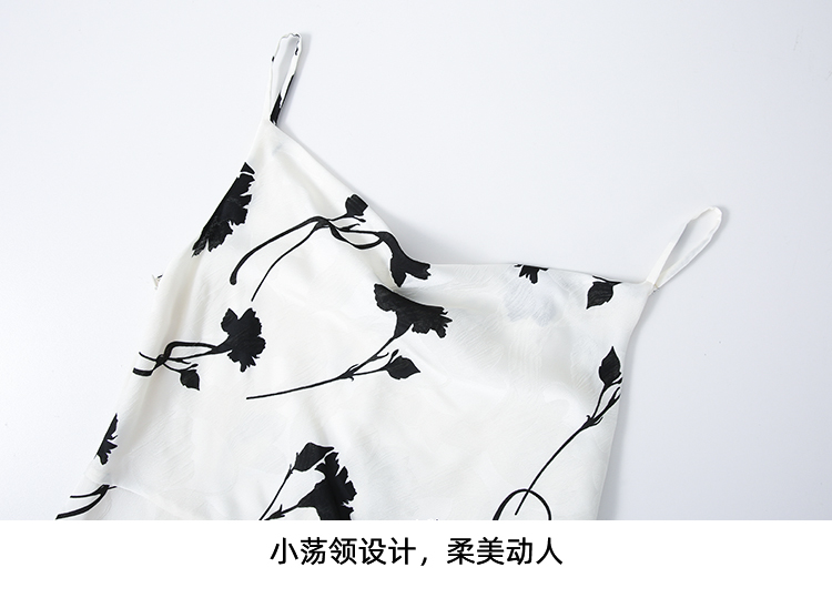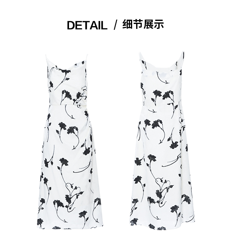 EITIE爱特爱气质荡领印花垂坠显瘦吊带连衣裙2025夏季新款8207931