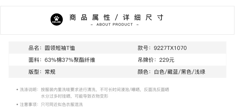 卡尔美2023夏季新款圆领短袖T恤