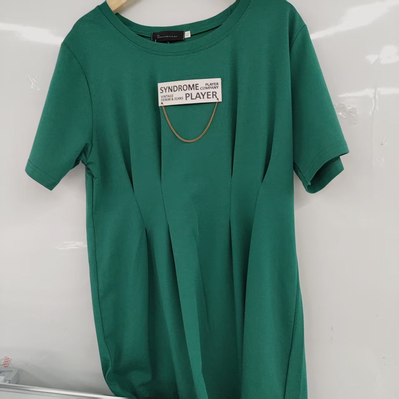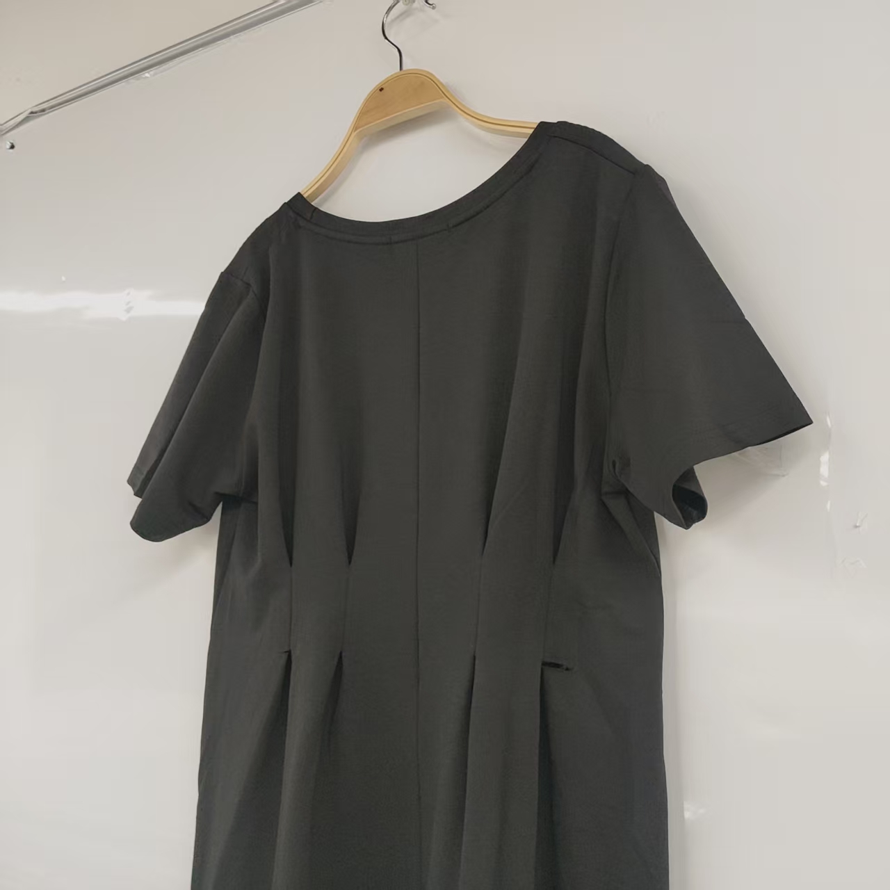 XC7602夏季极简舒适百搭显瘦黑色圆领短袖宽松休闲时尚直筒中长款连衣裙A3-1