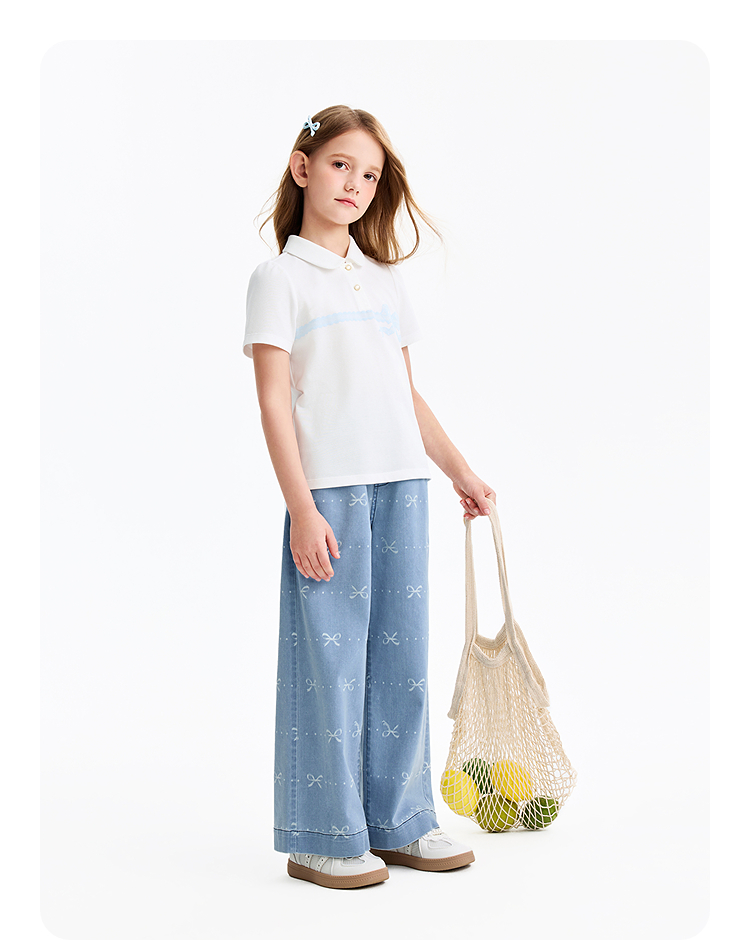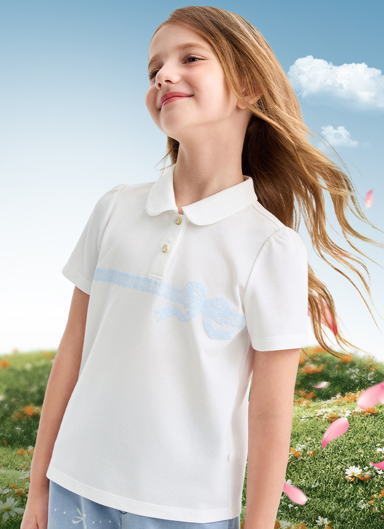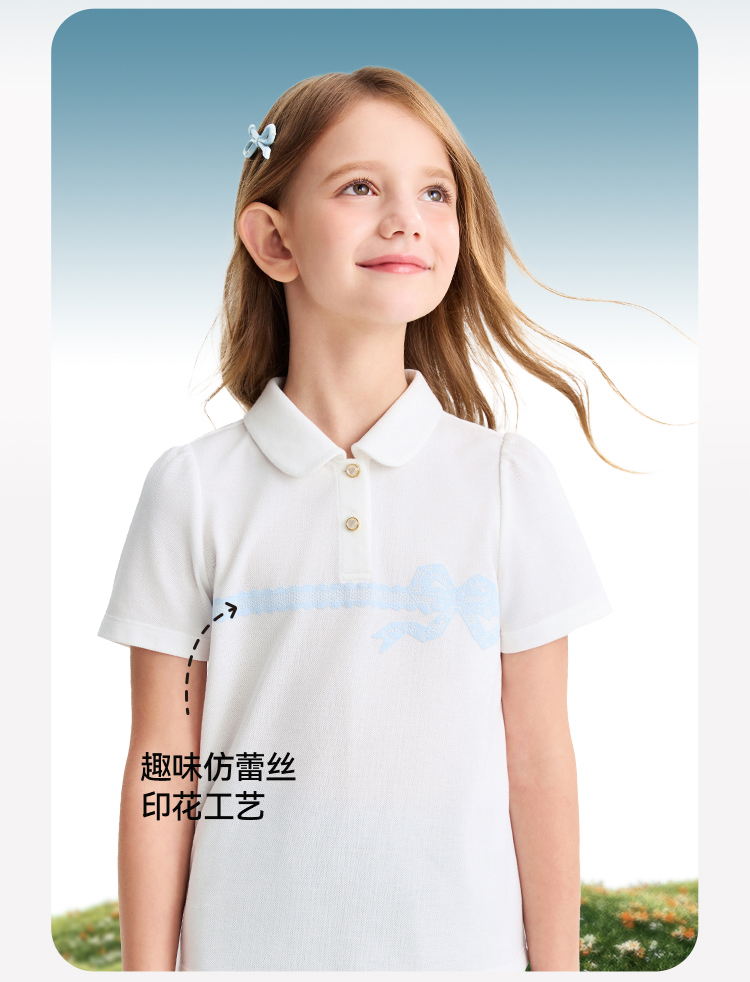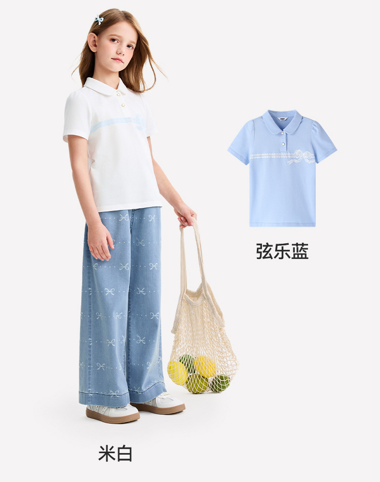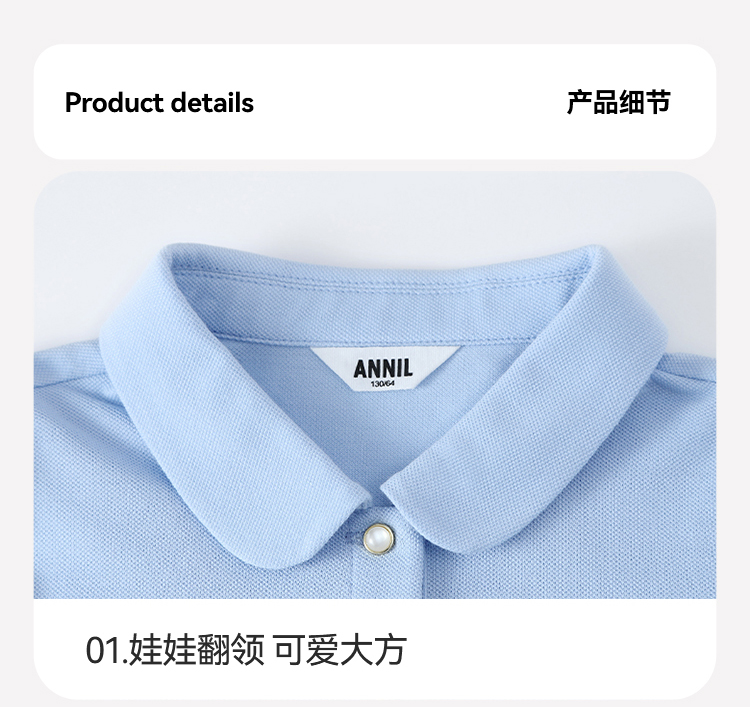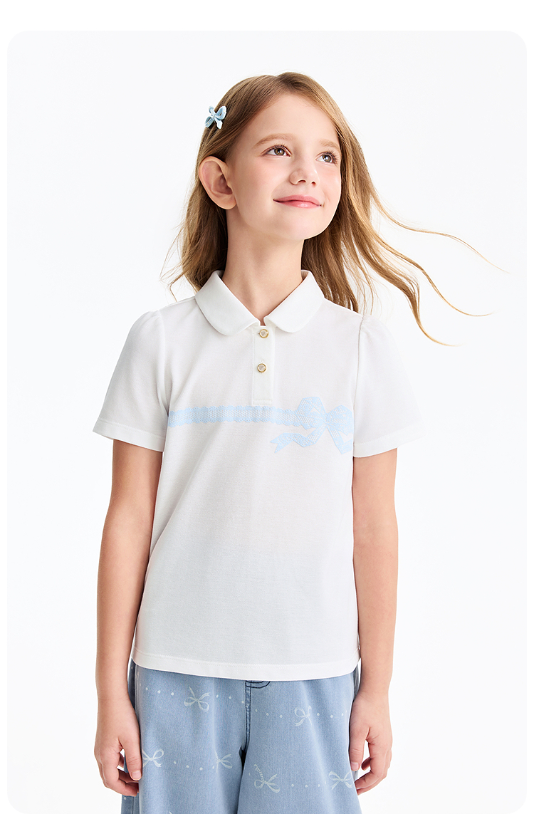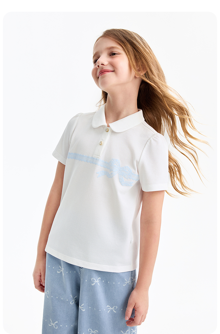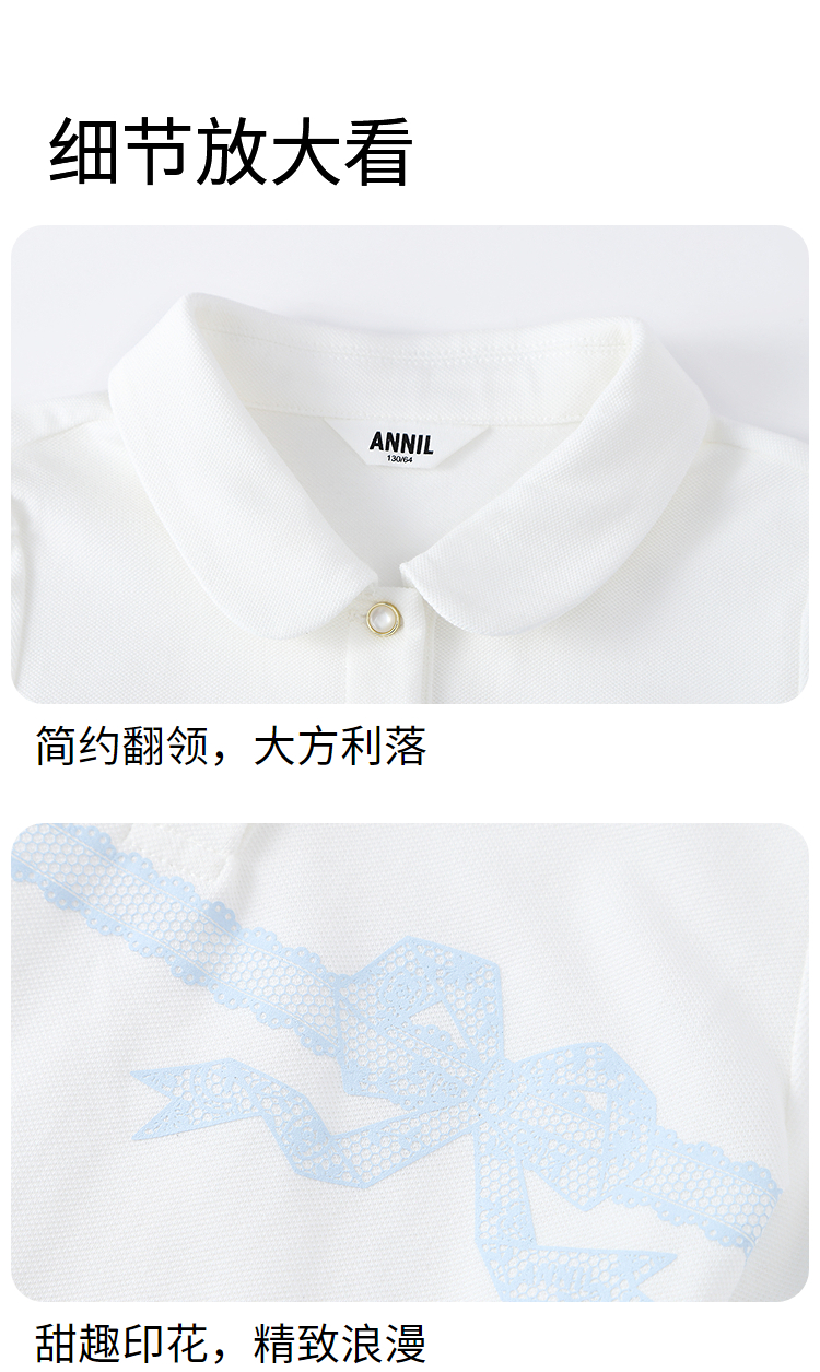 女童翻领短袖针织衫夏季新款安奈儿童装EG621607