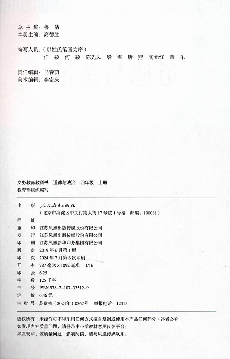 2024秋 道德与法治 四年级上册 人教版 4上 原小学思想品德教育课本 小学生道德与法治书 义务教育教科书人民教育出版社RJ