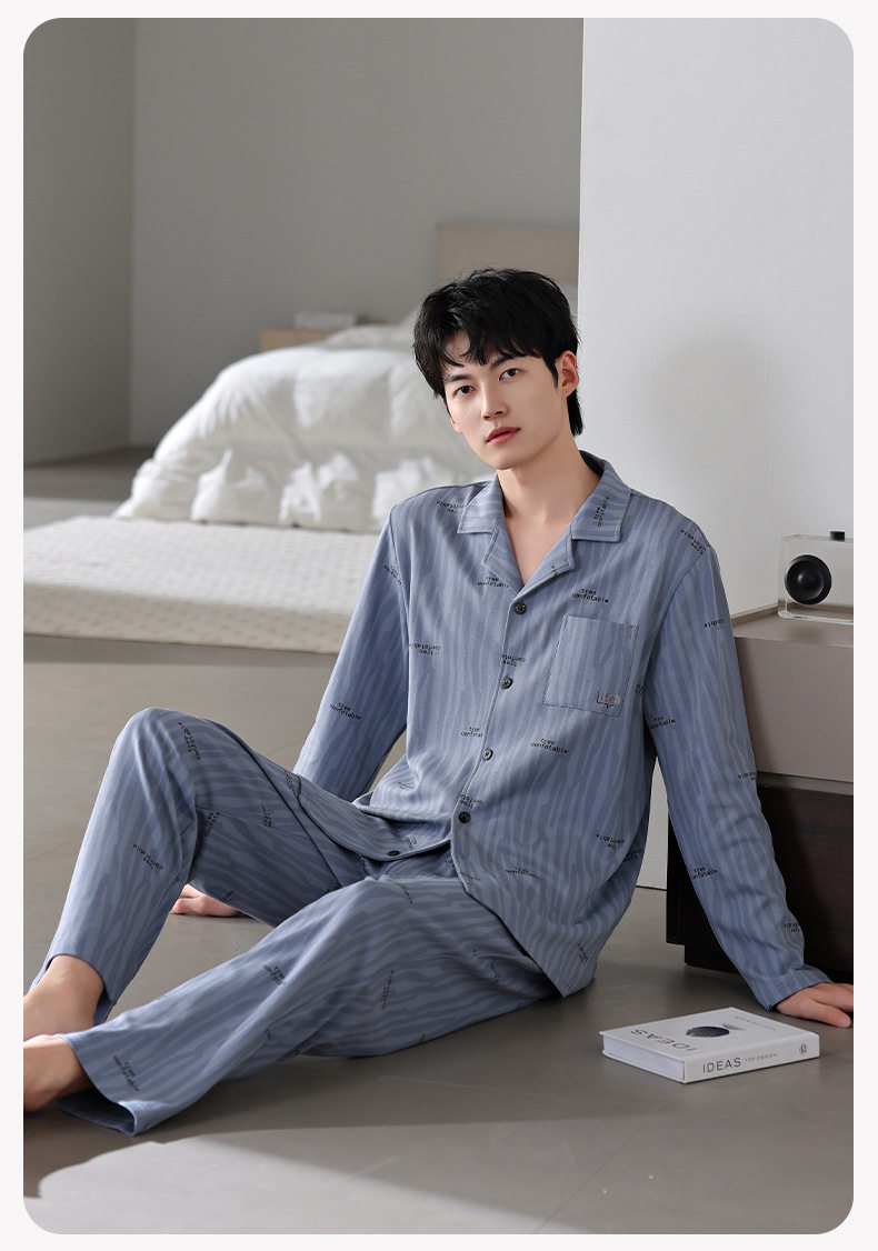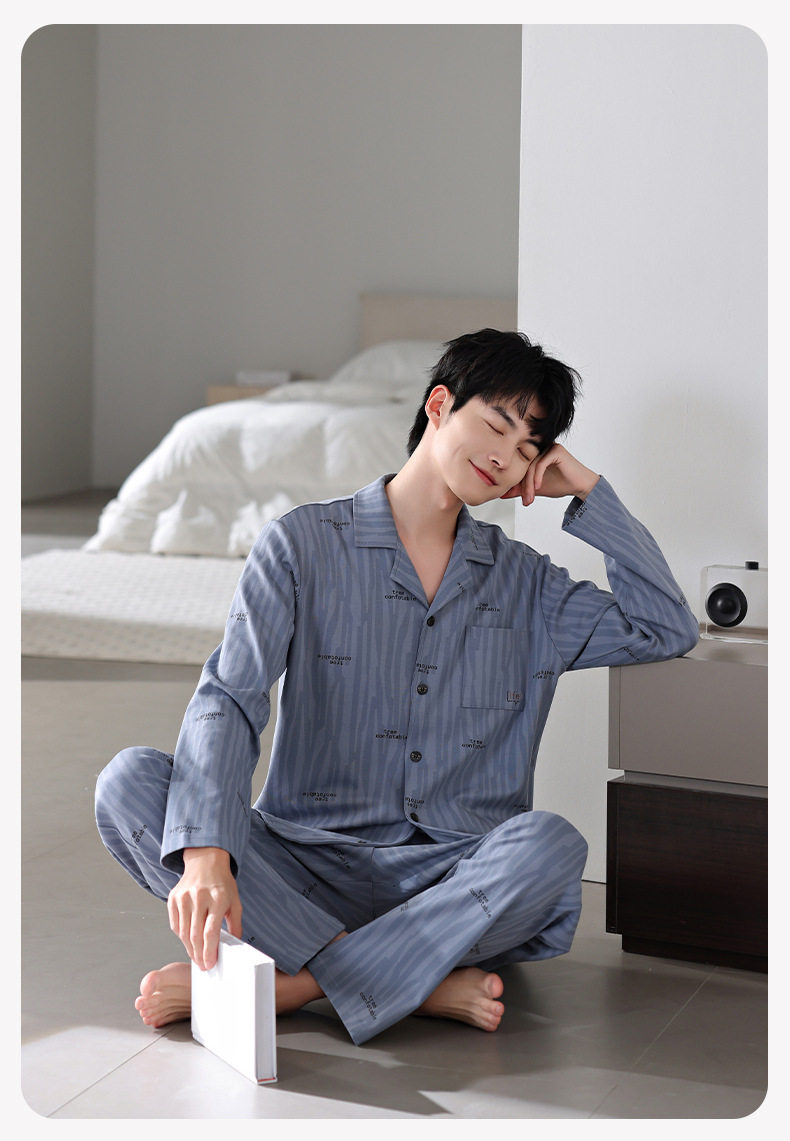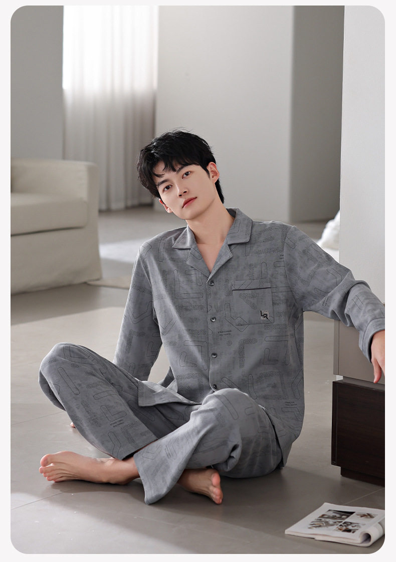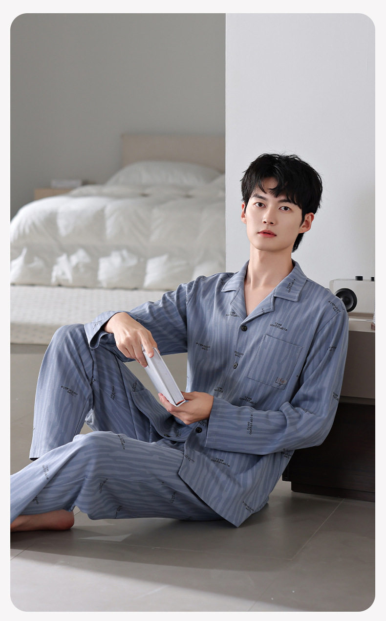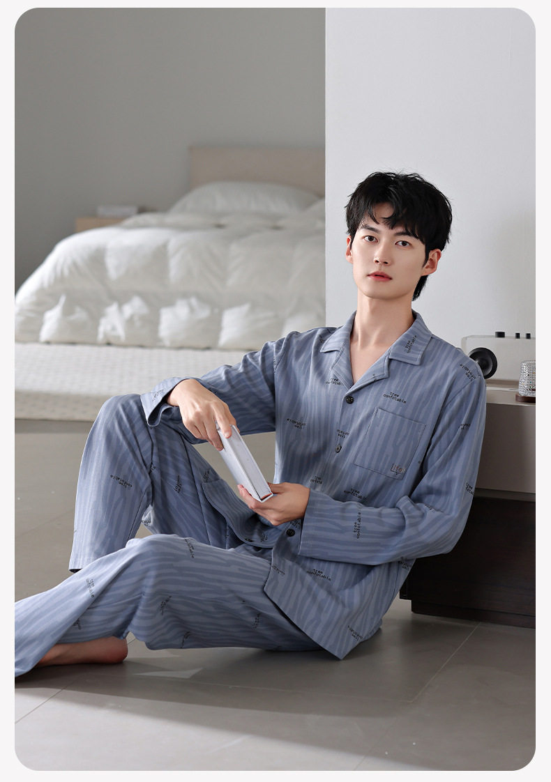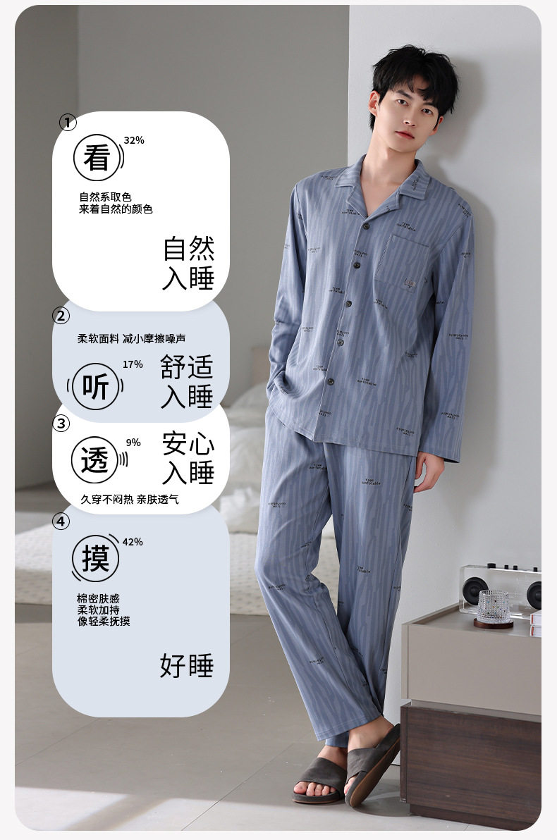 【多款】睡衣男士秋季新品长袖长裤开衫家居服薄款休闲青年可外穿套装 JL-LGM8036/8037/8038/8039/8040/8041/8042/8043/8044/8045