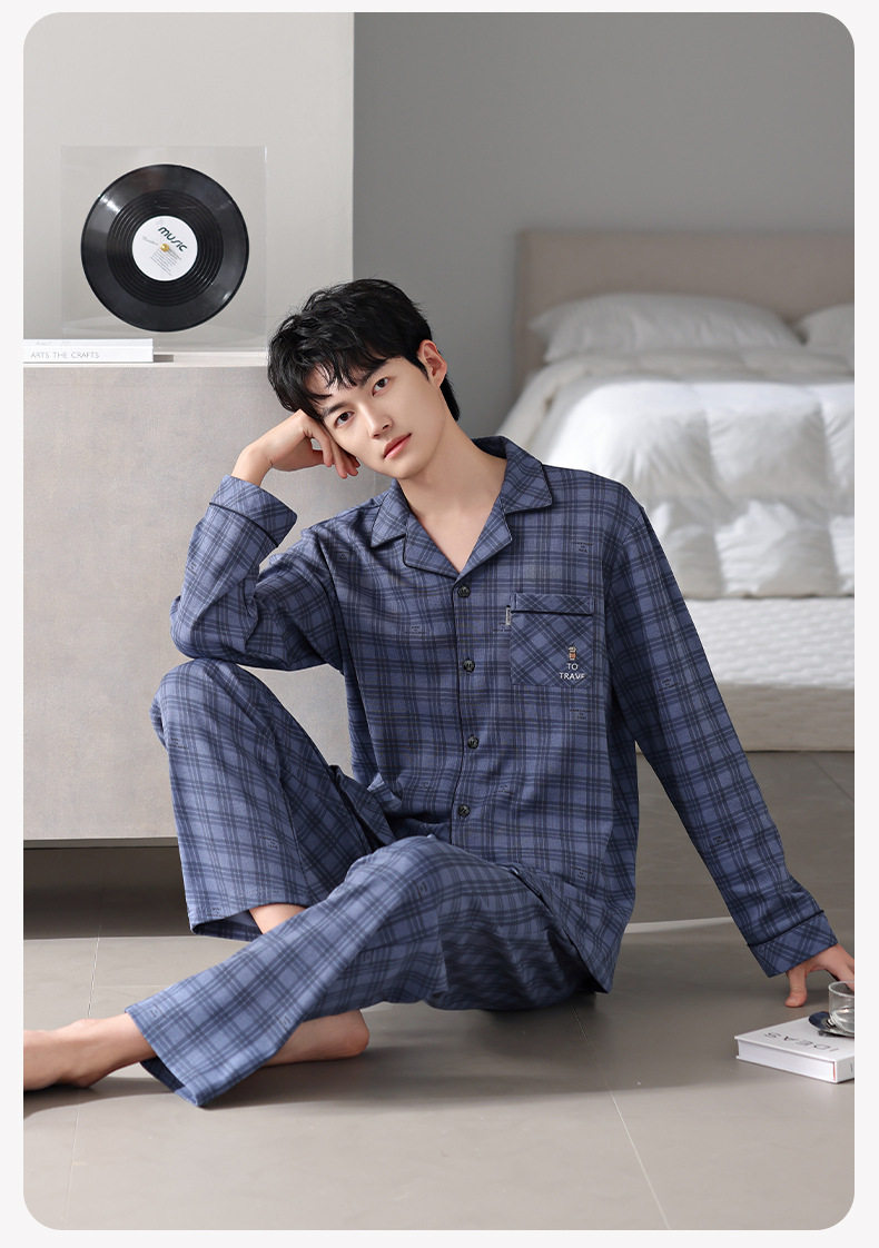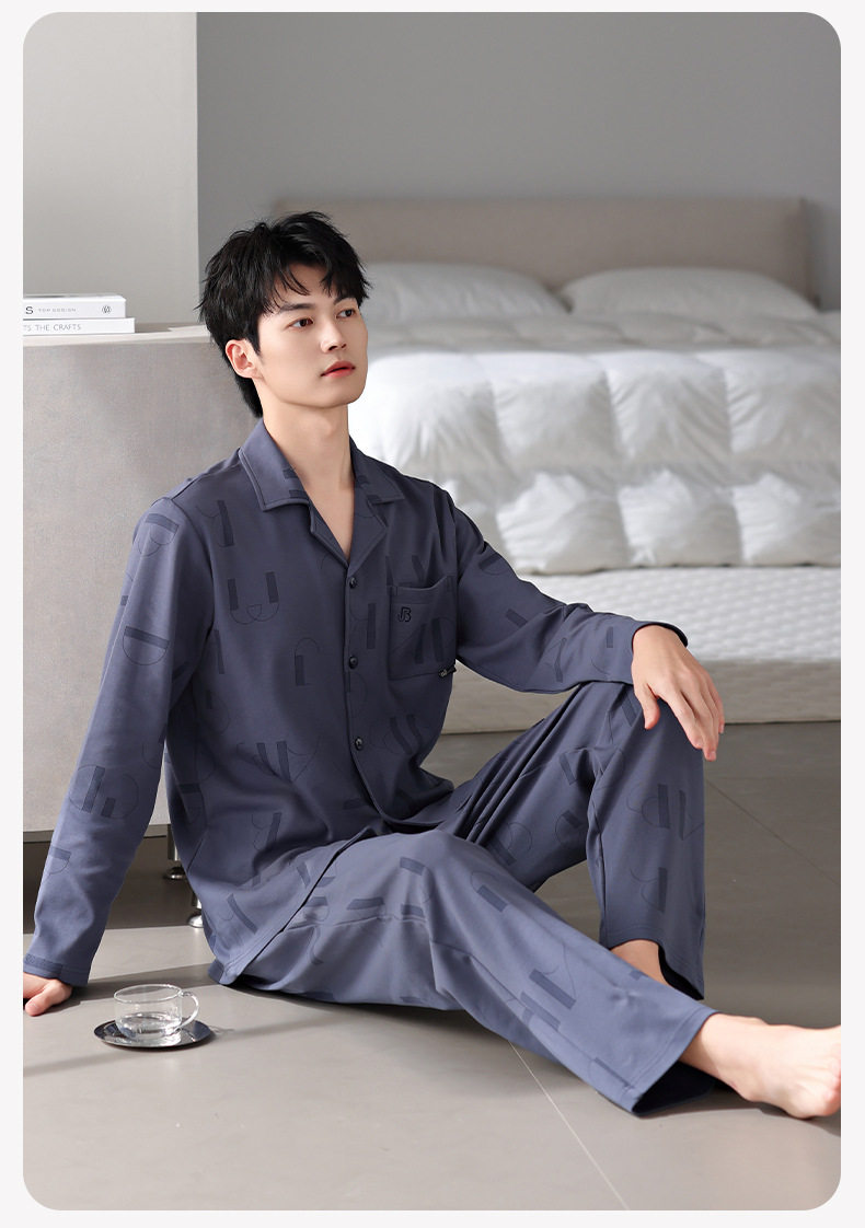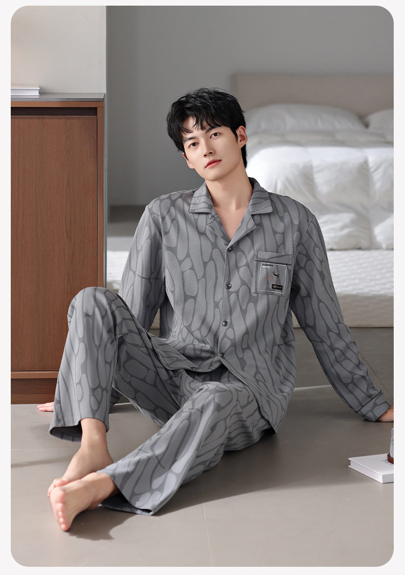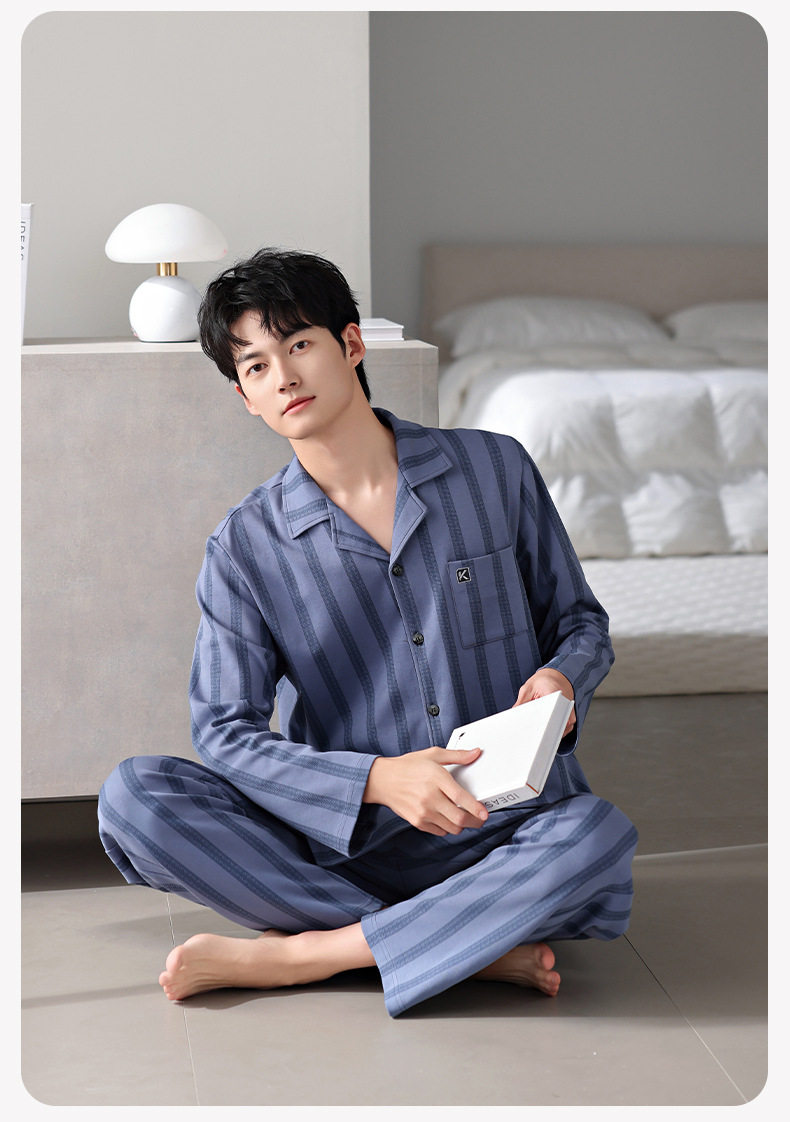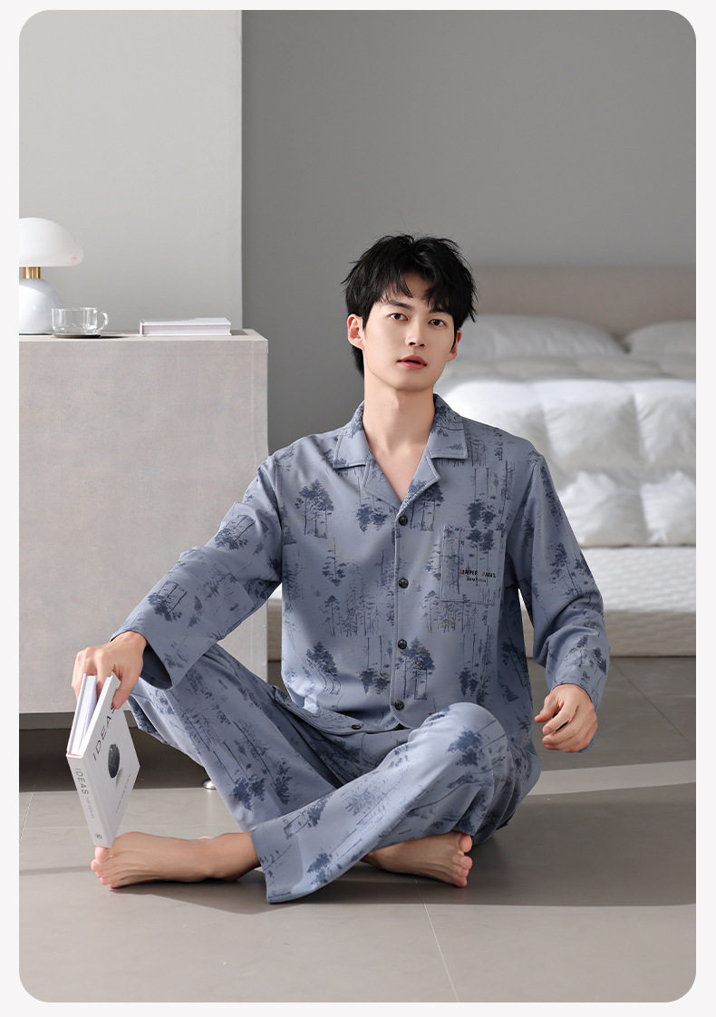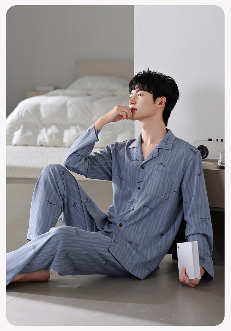 【多款】睡衣男士秋季新品长袖长裤开衫家居服薄款休闲青年可外穿套装 JL-LGM8036/8037/8038/8039/8040/8041/8042/8043/8044/8045