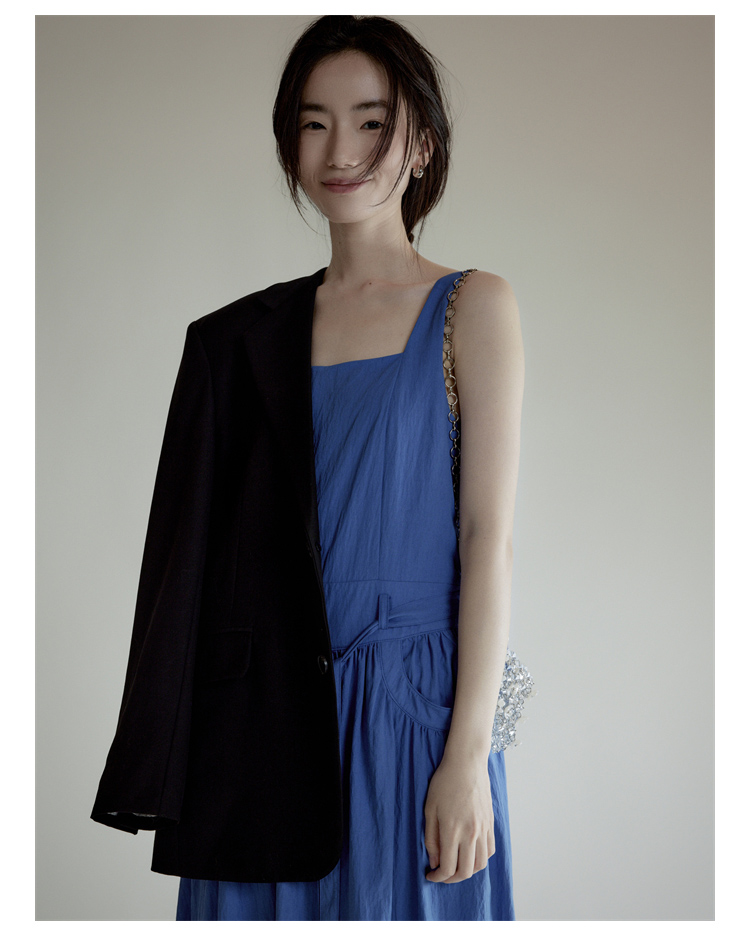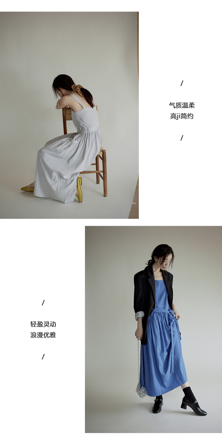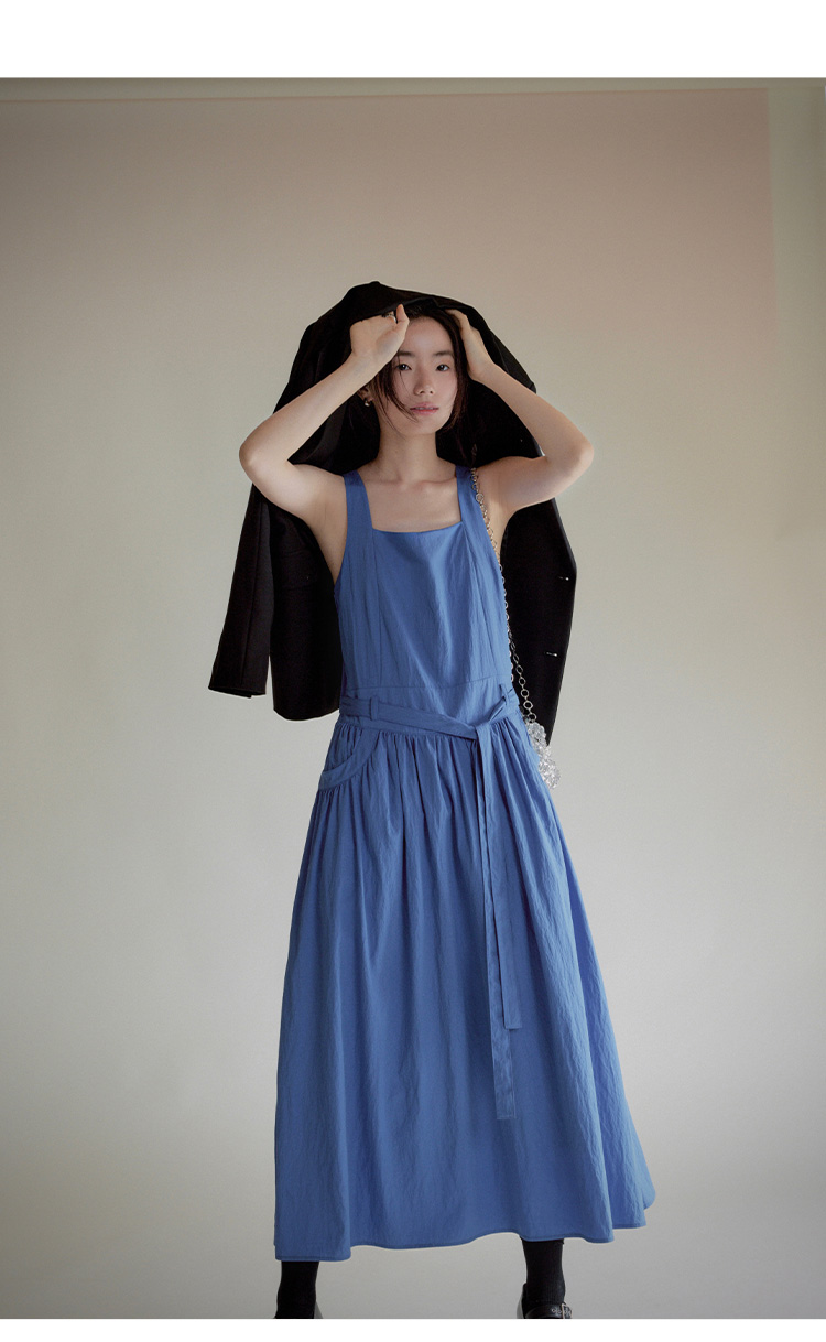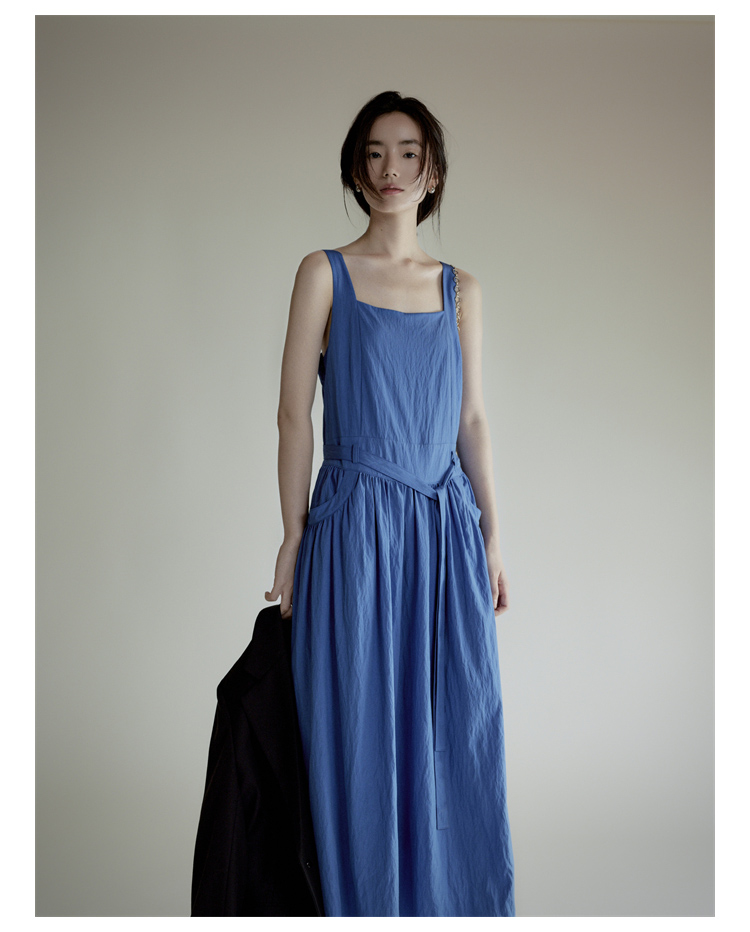【现货】Even Vintage| 浪漫之美 气质方领克莱茵蓝显白吊带连衣裙