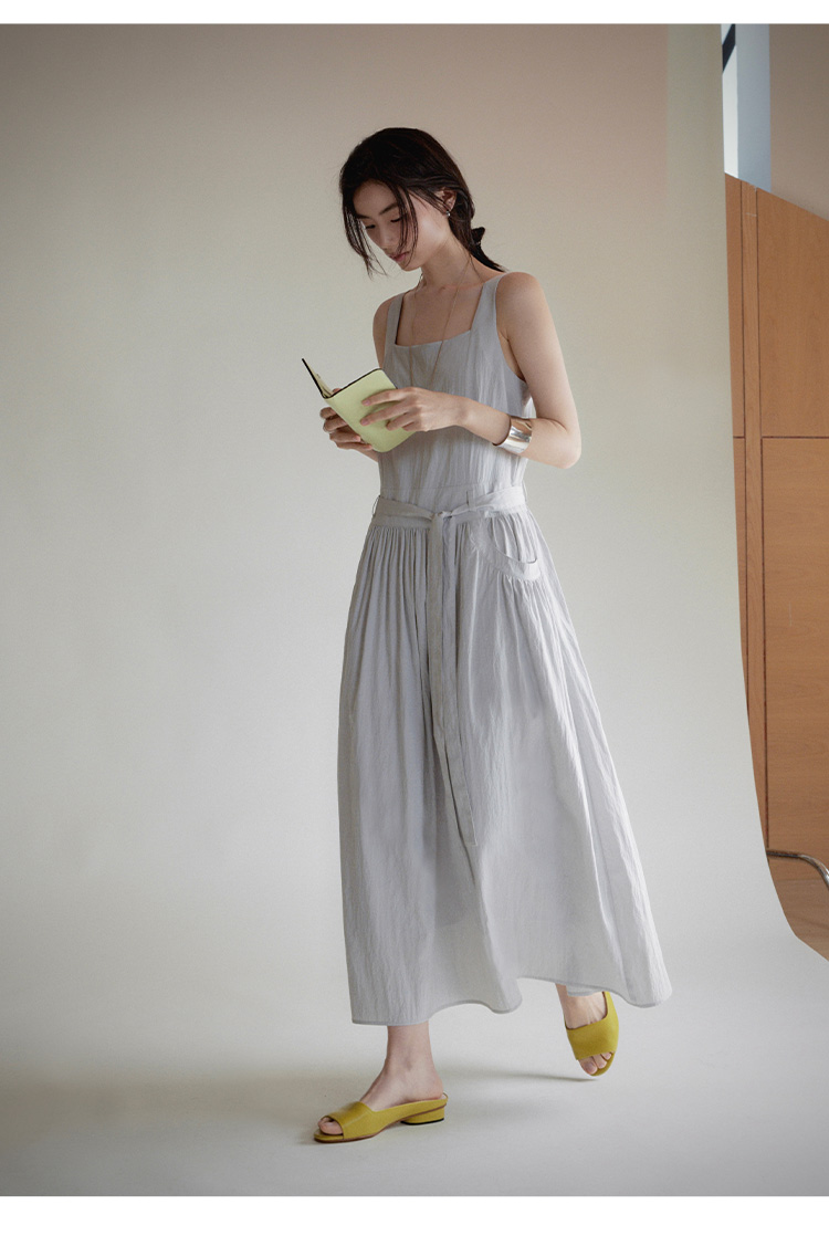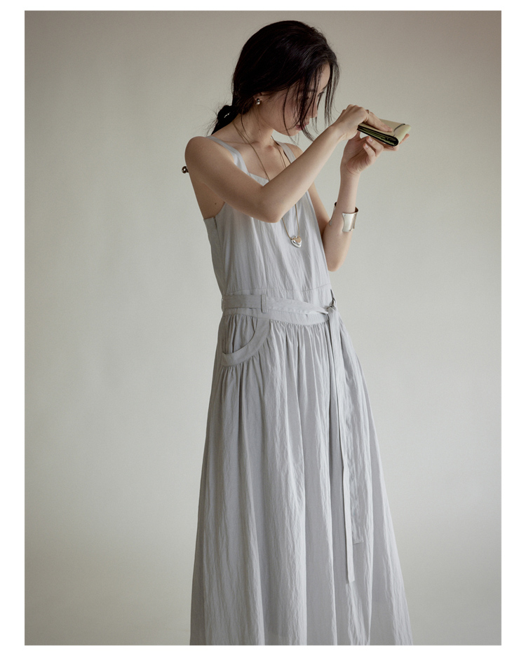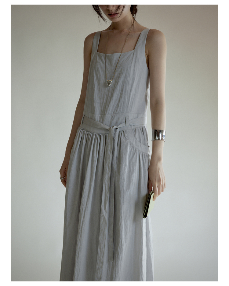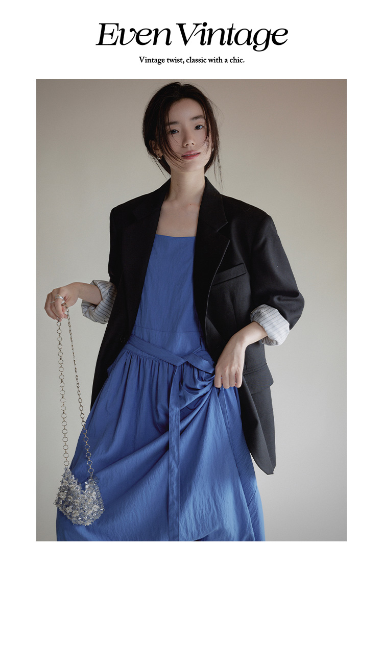 【现货】Even Vintage| 浪漫之美 气质方领克莱茵蓝显白吊带连衣裙