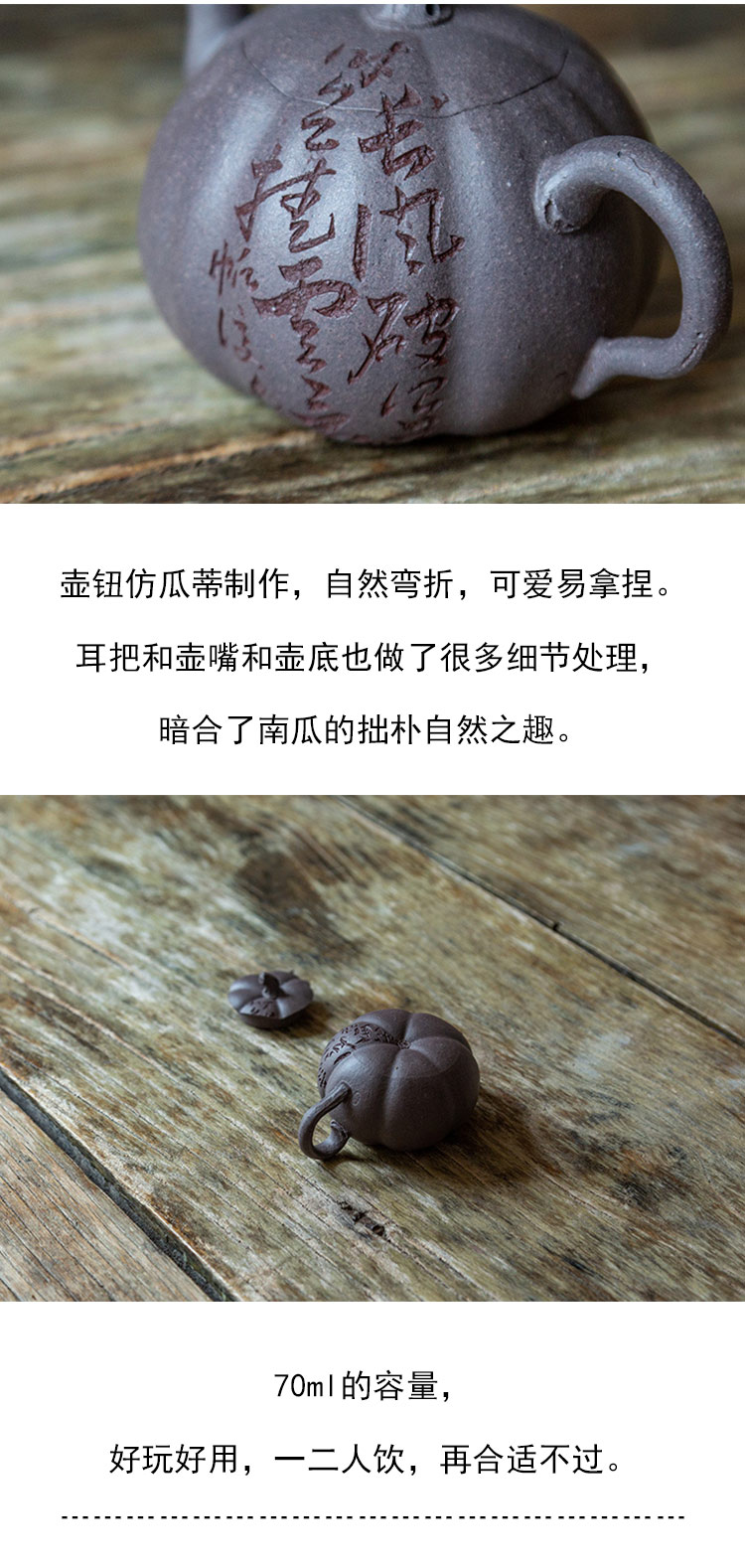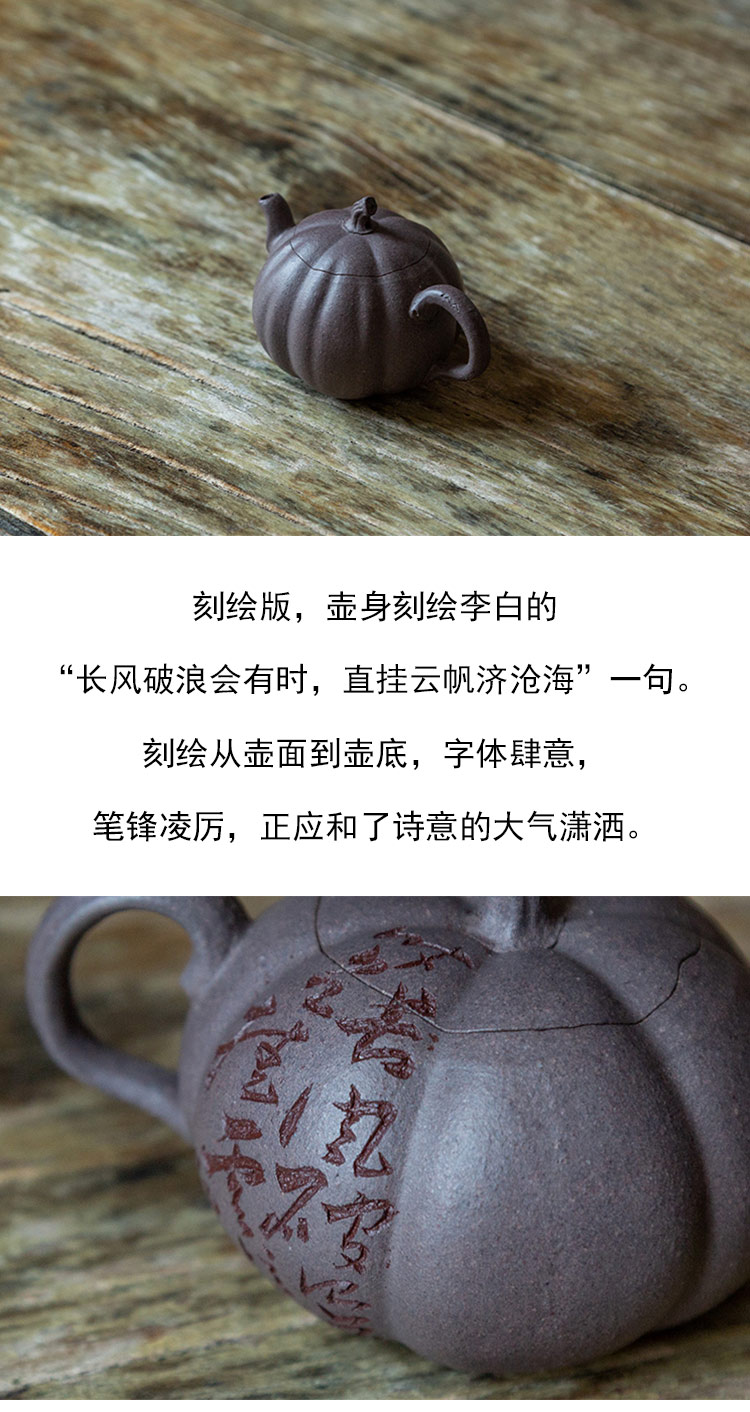 茶香记 天青泥南瓜壶 紫砂壶 全手工 诗词刻绘 古雅可爱 仿生壶