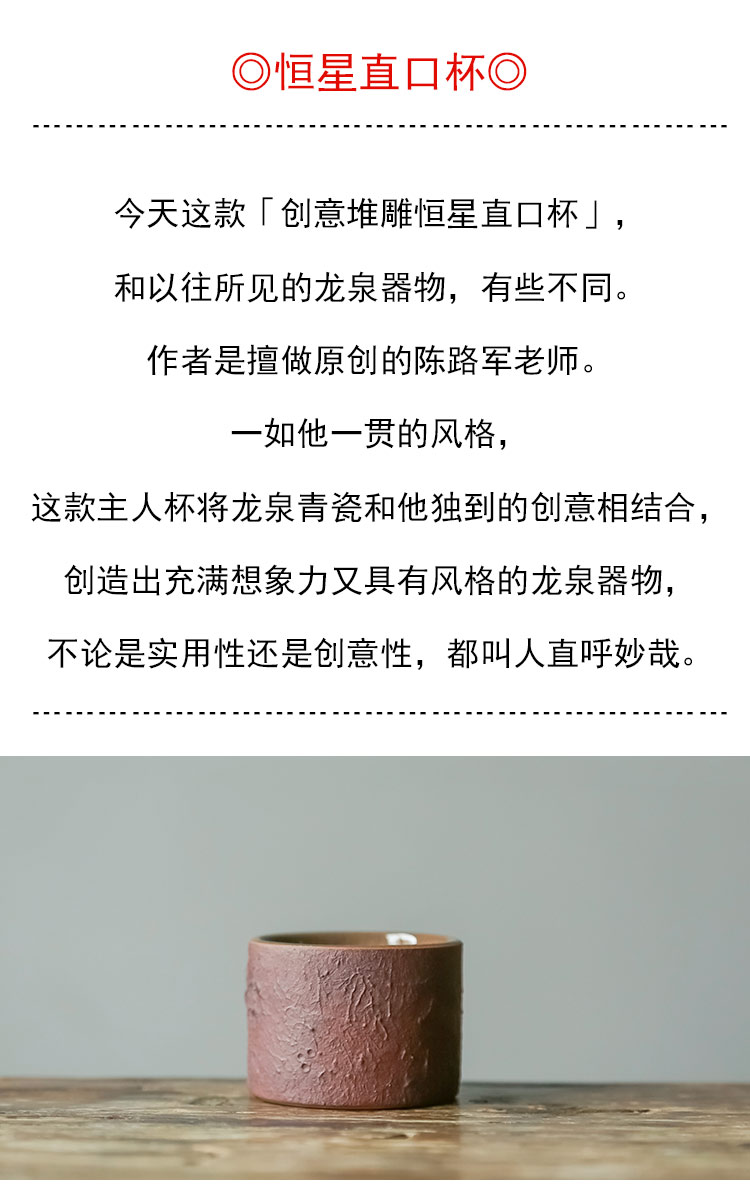 茶香记 龙泉创意堆雕恒星直口杯70ml青瓷紫砂开片茶杯主人杯手作