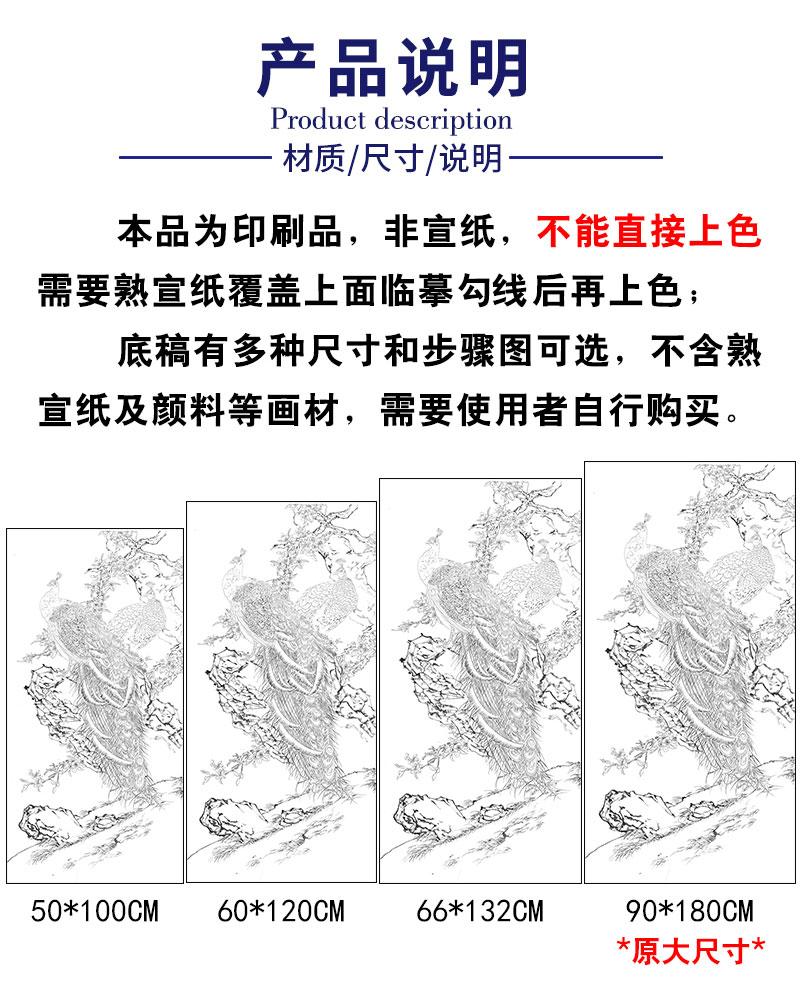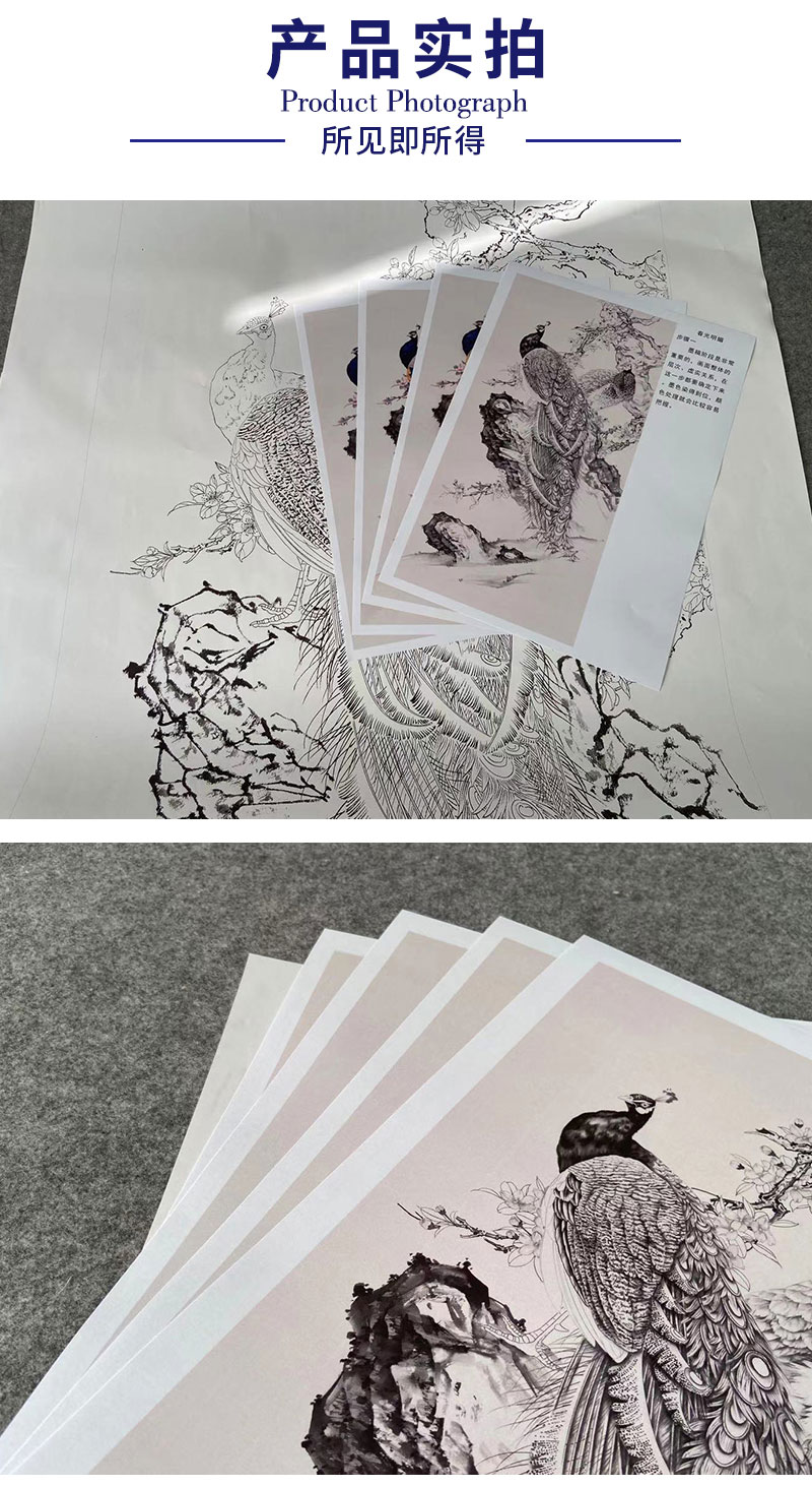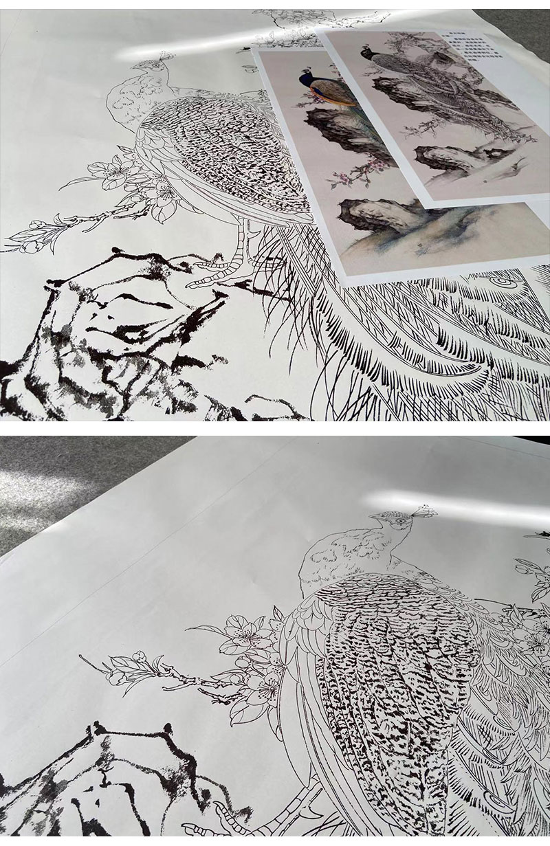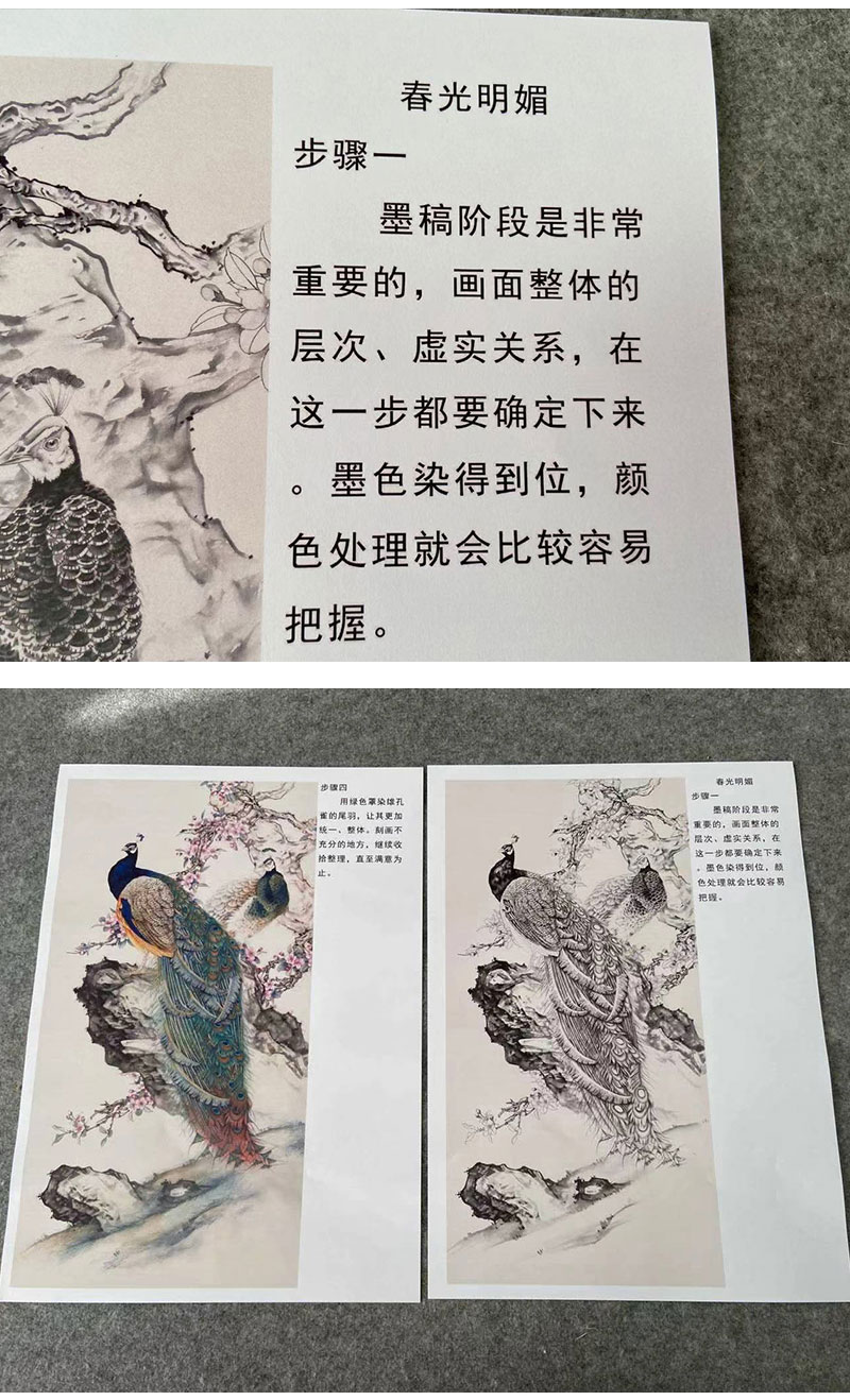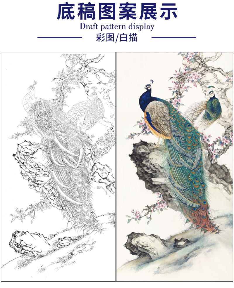 【有步骤】陈军工笔画白描底稿《春光明媚》孔雀初学者临摹花鸟线稿CJ31