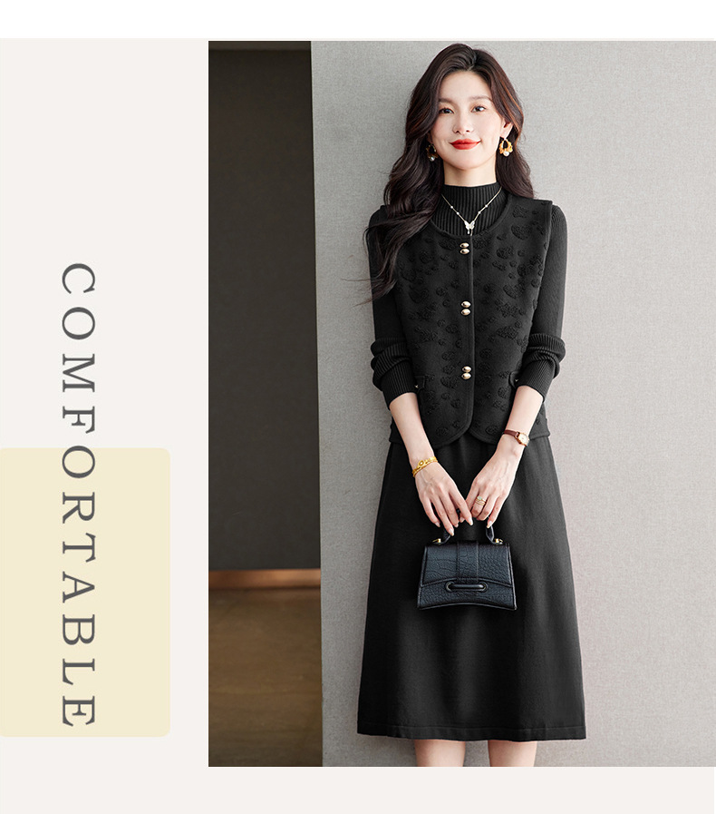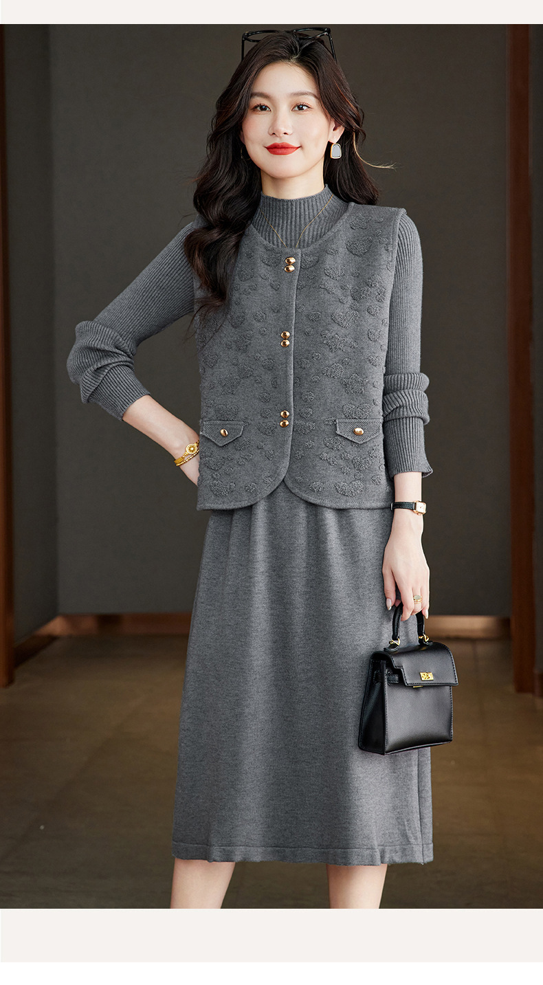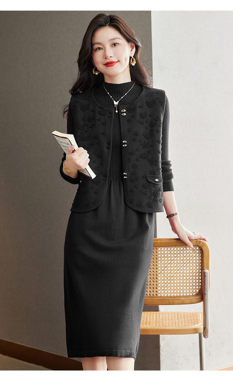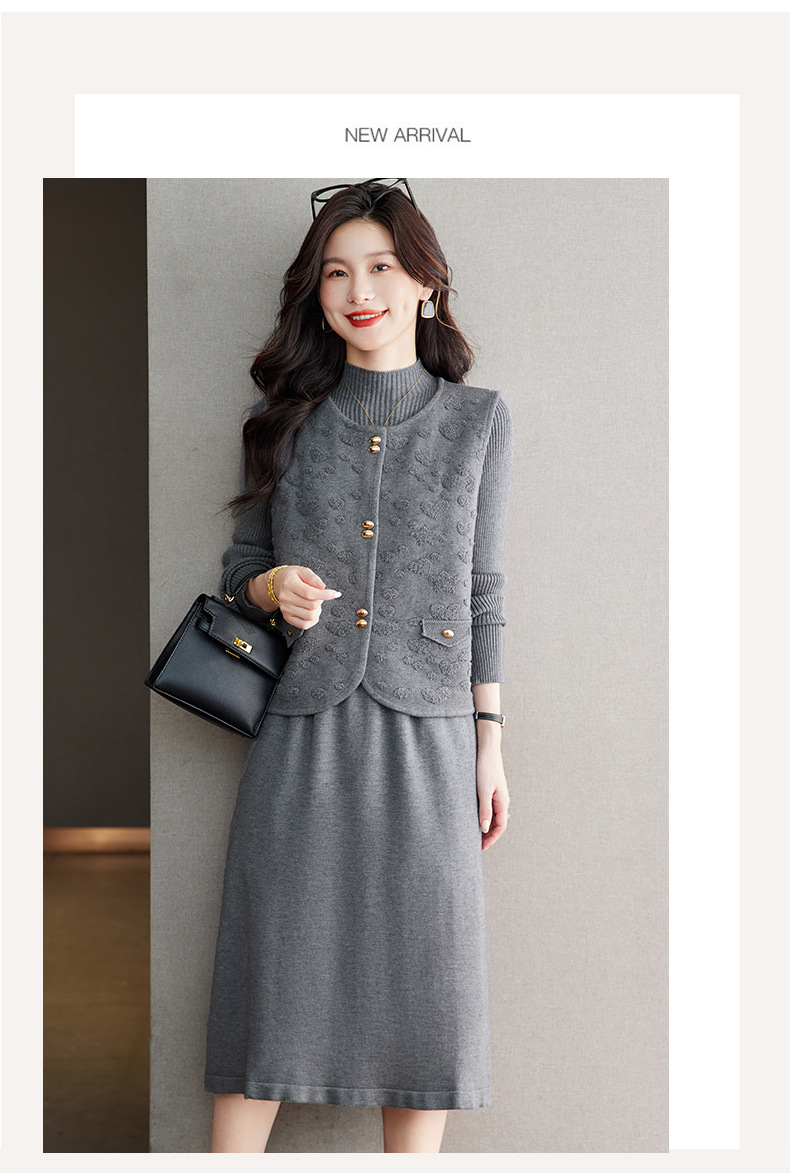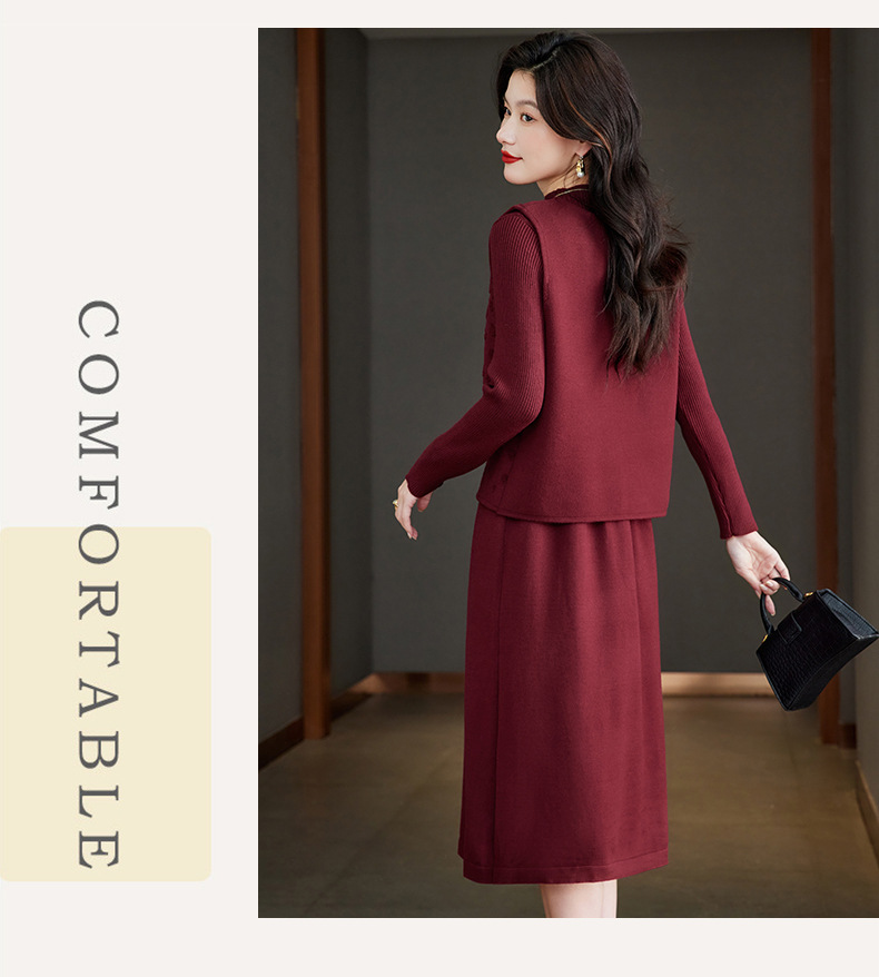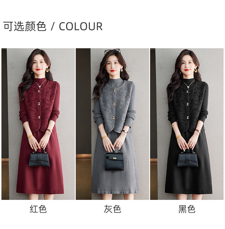 M2748-198休闲连衣裙女秋冬2025新款针织衫潮流马甲打底毛衣裙时尚两件套装