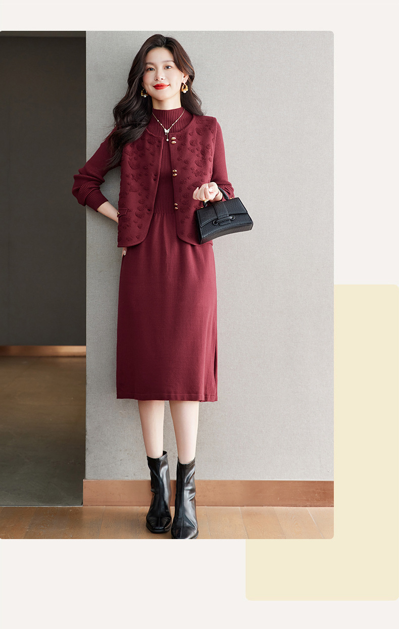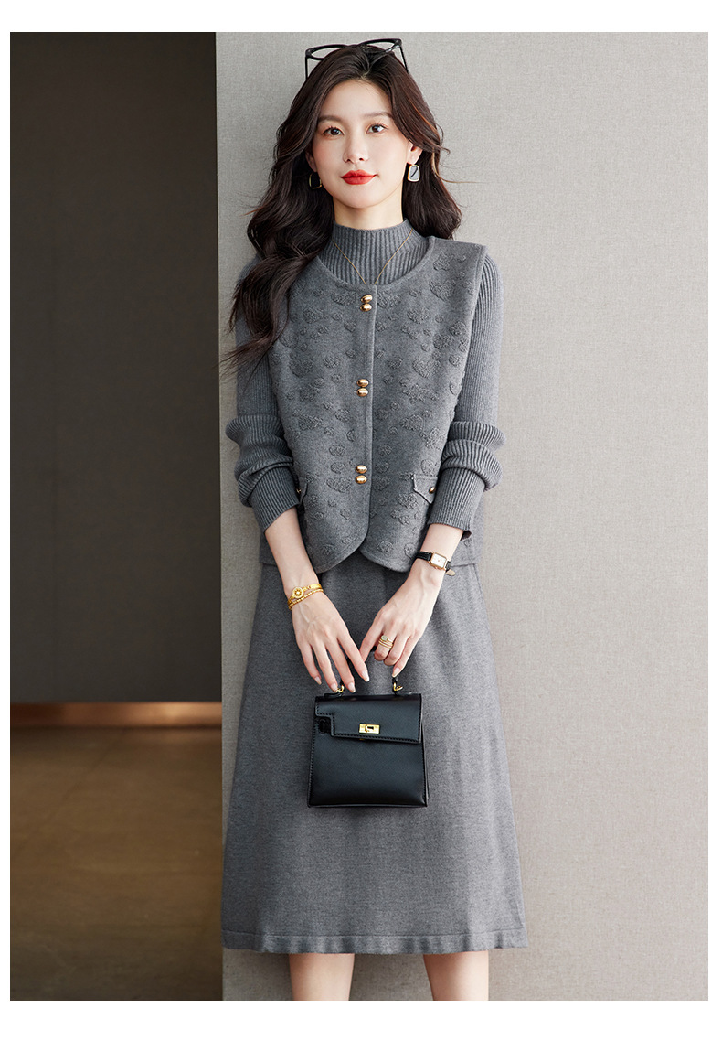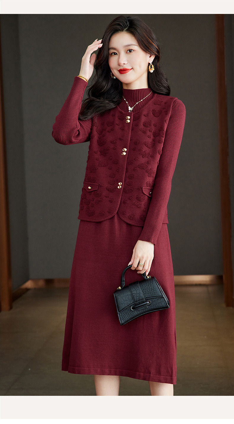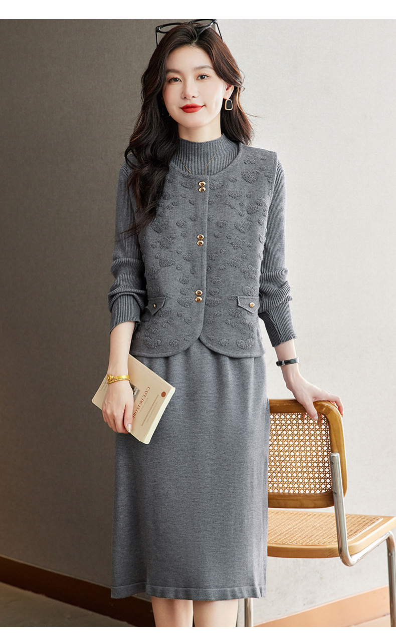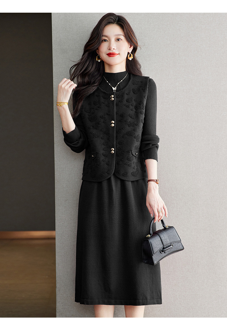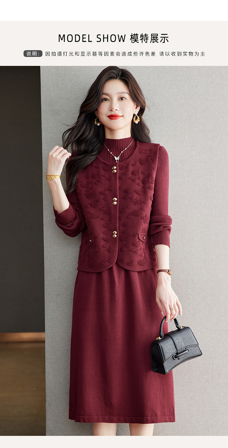M2748-198休闲连衣裙女秋冬2025新款针织衫潮流马甲打底毛衣裙时尚两件套装