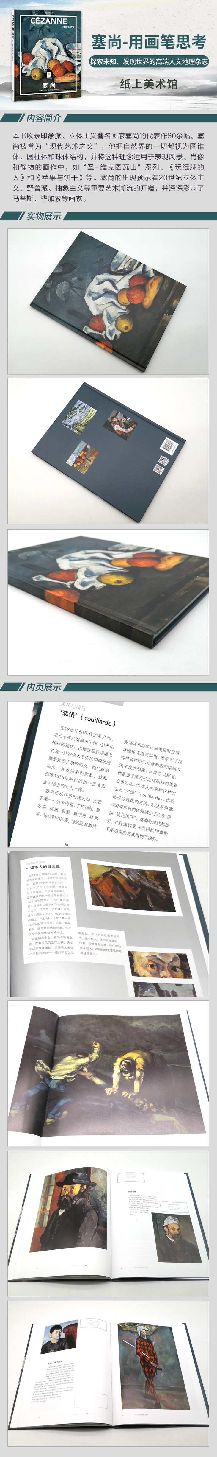 本书收录印象派、立体主义著名画家塞尚的代表作60余幅。塞尚被誉为“现代艺术之父”,他把自然界的一切都视为圆锥体、圆柱体和球体结构,并将这种理念运用于表现风景、肖像和静物的画作中,如“圣-维克图瓦山”系列、《玩纸牌的人》和《苹果与饼干》等。塞尚的出现预示着20世纪立体主义、野兽派、抽象主义等重要艺术潮流的开端,并深深影响了马蒂斯、毕加索等画家。