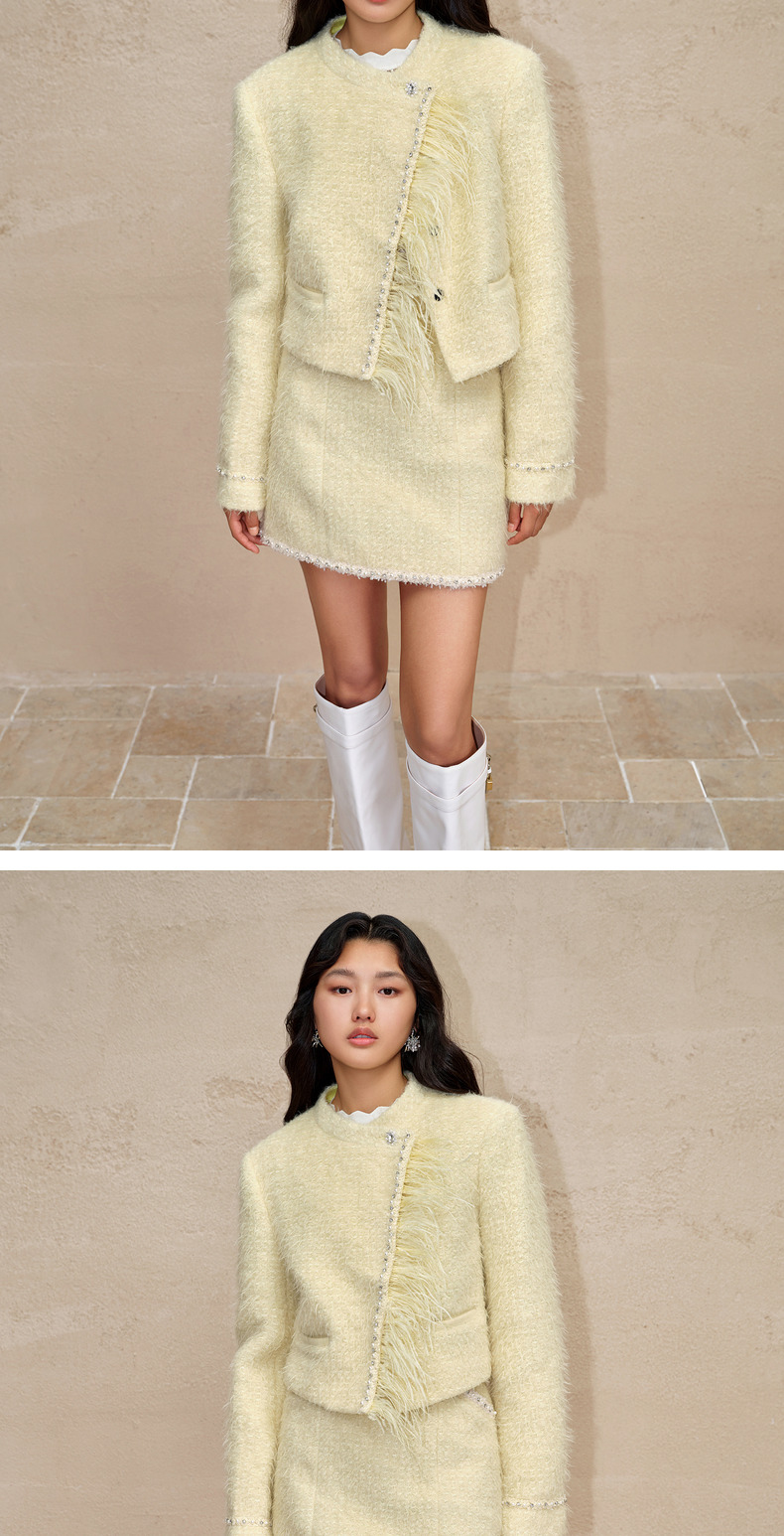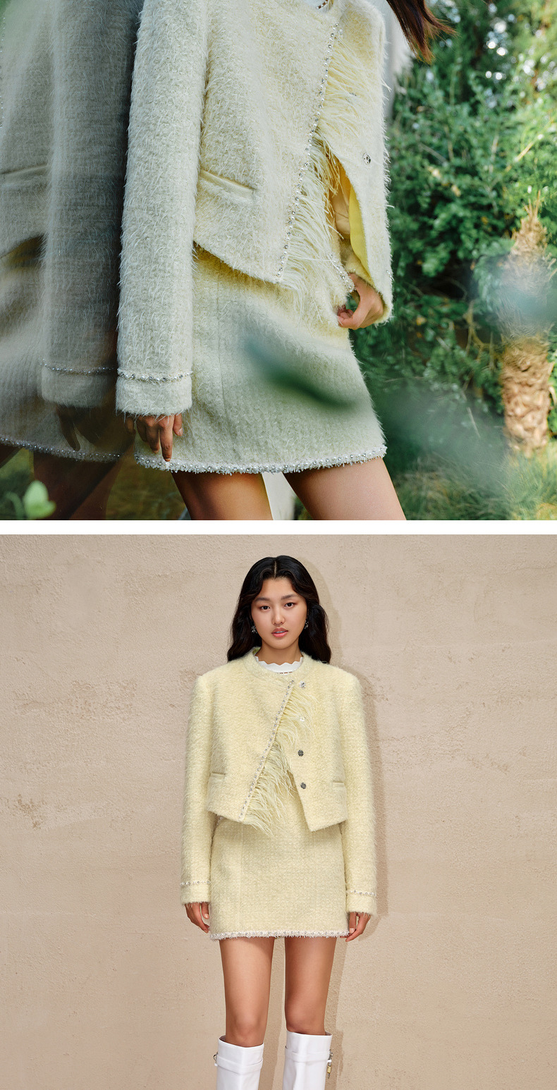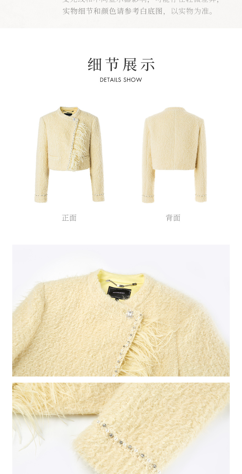 MAXRIENY洛神小香外套毛绒斜门襟宽肩花纱外套(货号:MC88JA778)