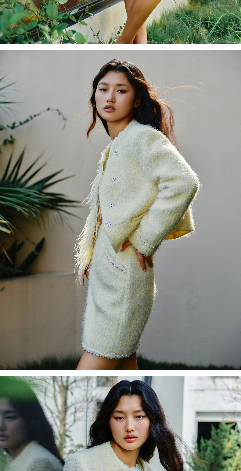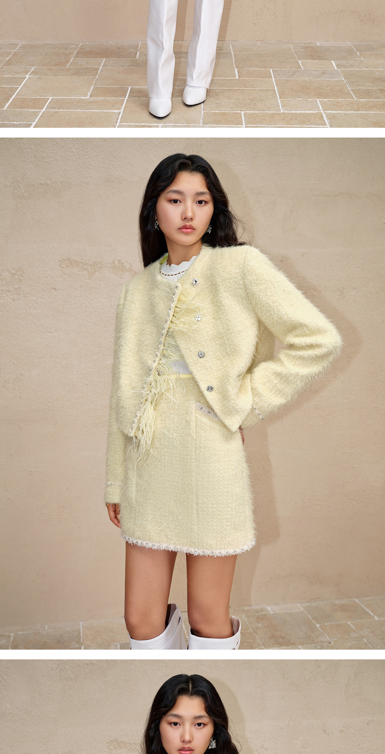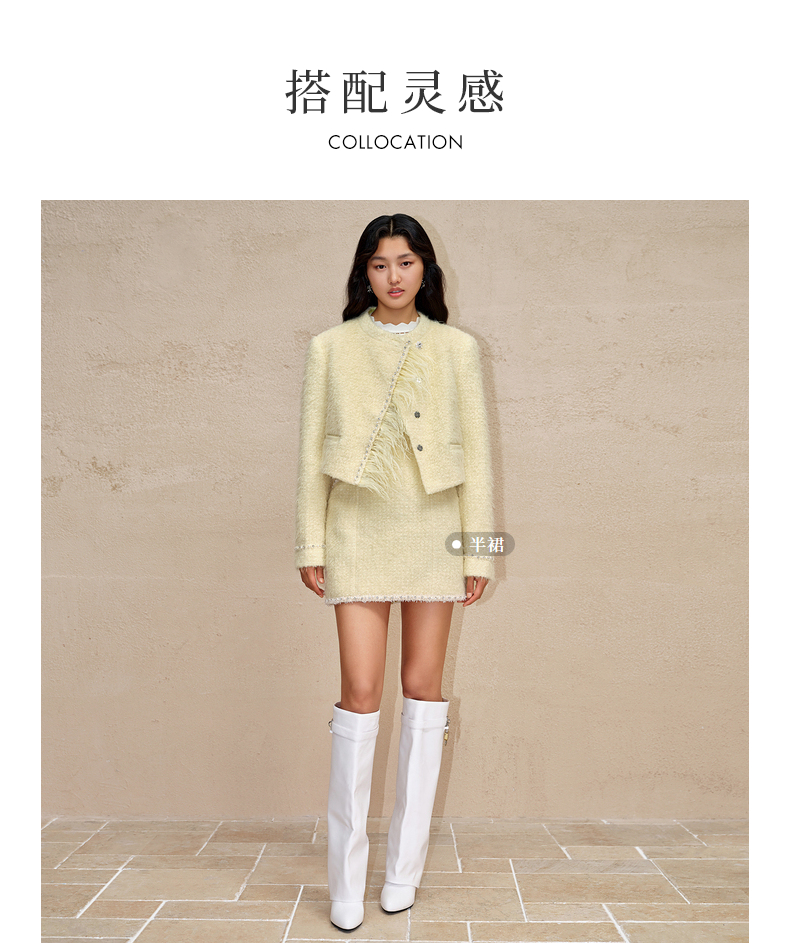 MAXRIENY洛神小香外套毛绒斜门襟宽肩花纱外套(货号:MC88JA778)