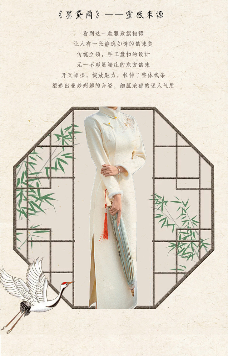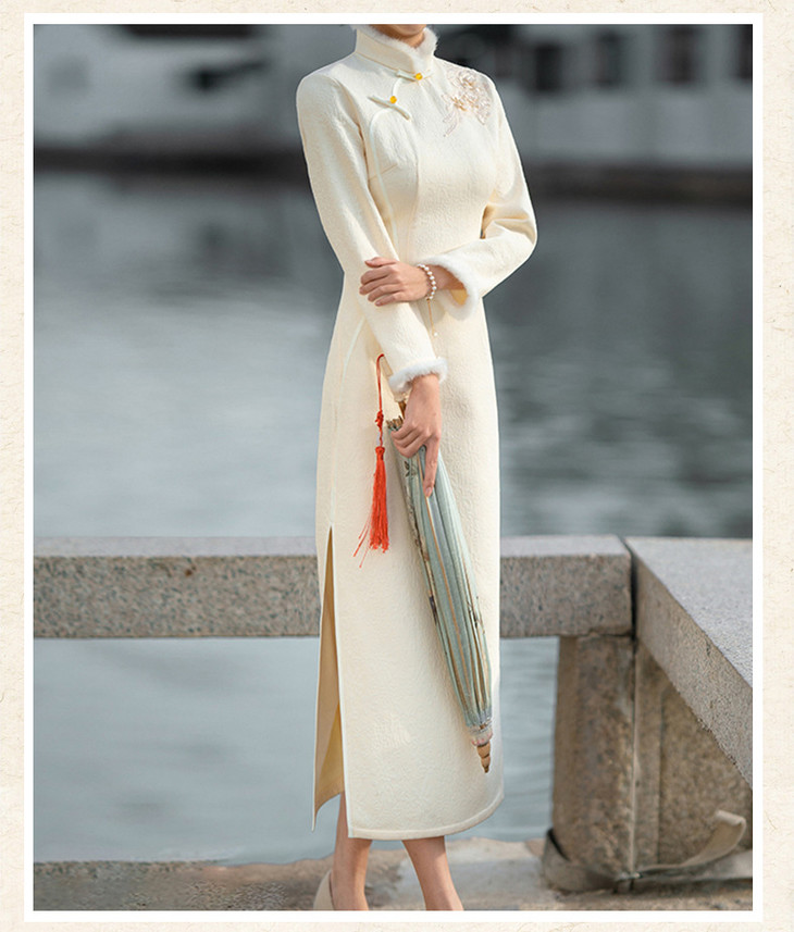 春季国风新中式长款苏州长袖旗袍改良年轻款女高级感复古旗袍60894