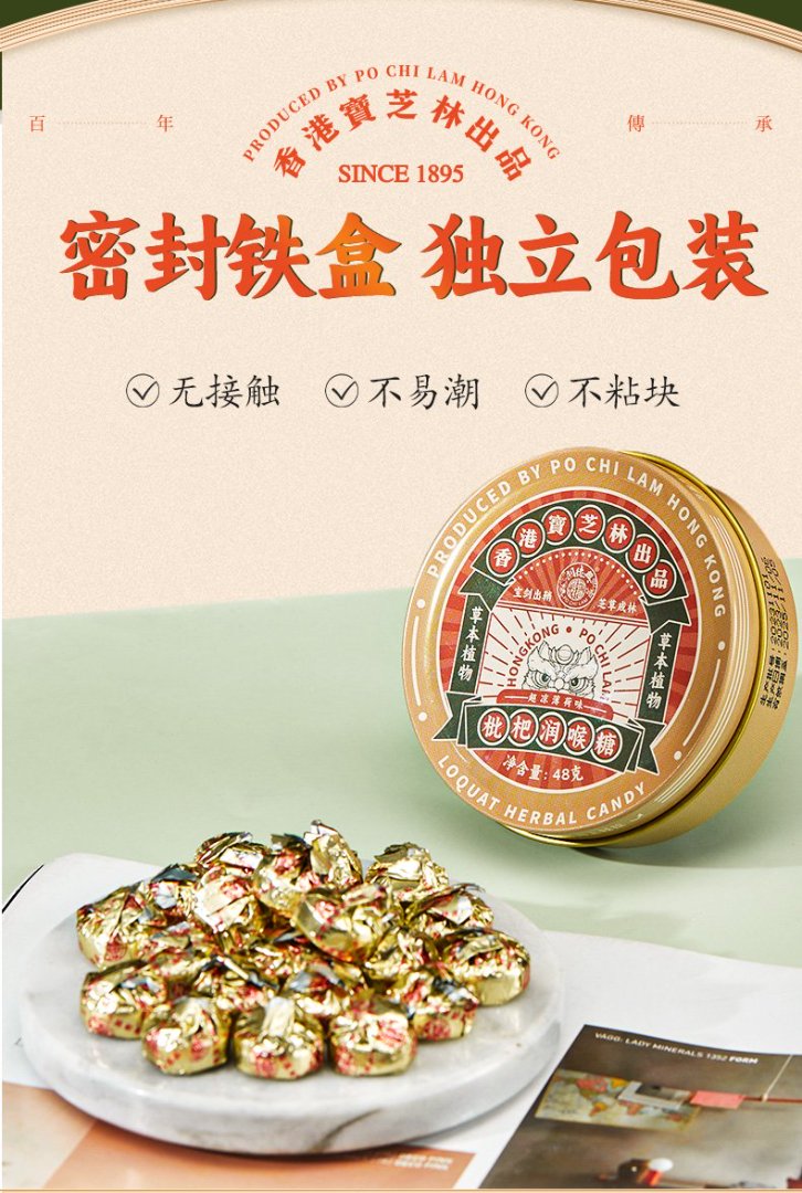 【甄选】宝芝林枇杷润喉糖清凉入喉酷爽激昂独立包装铁盒包装1罐24粒