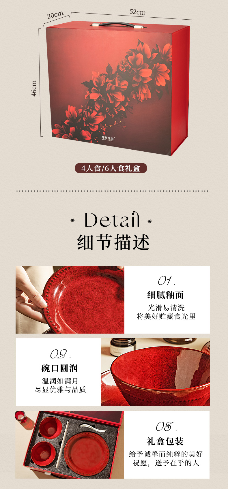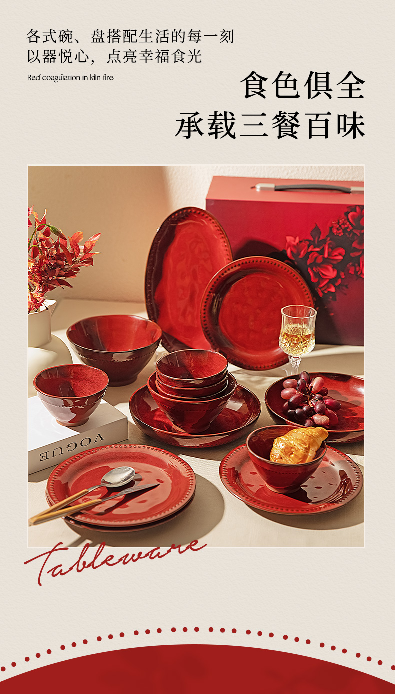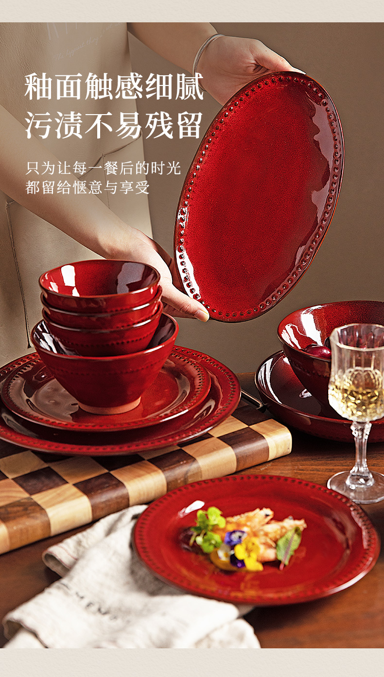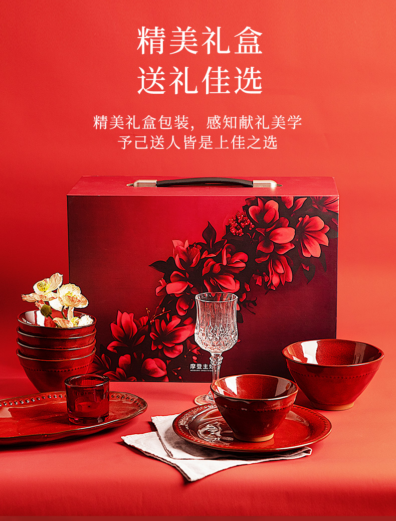 摩登主妇红色新婚结婚订婚礼物送新人闺蜜高级实用碗碟盘餐具套装