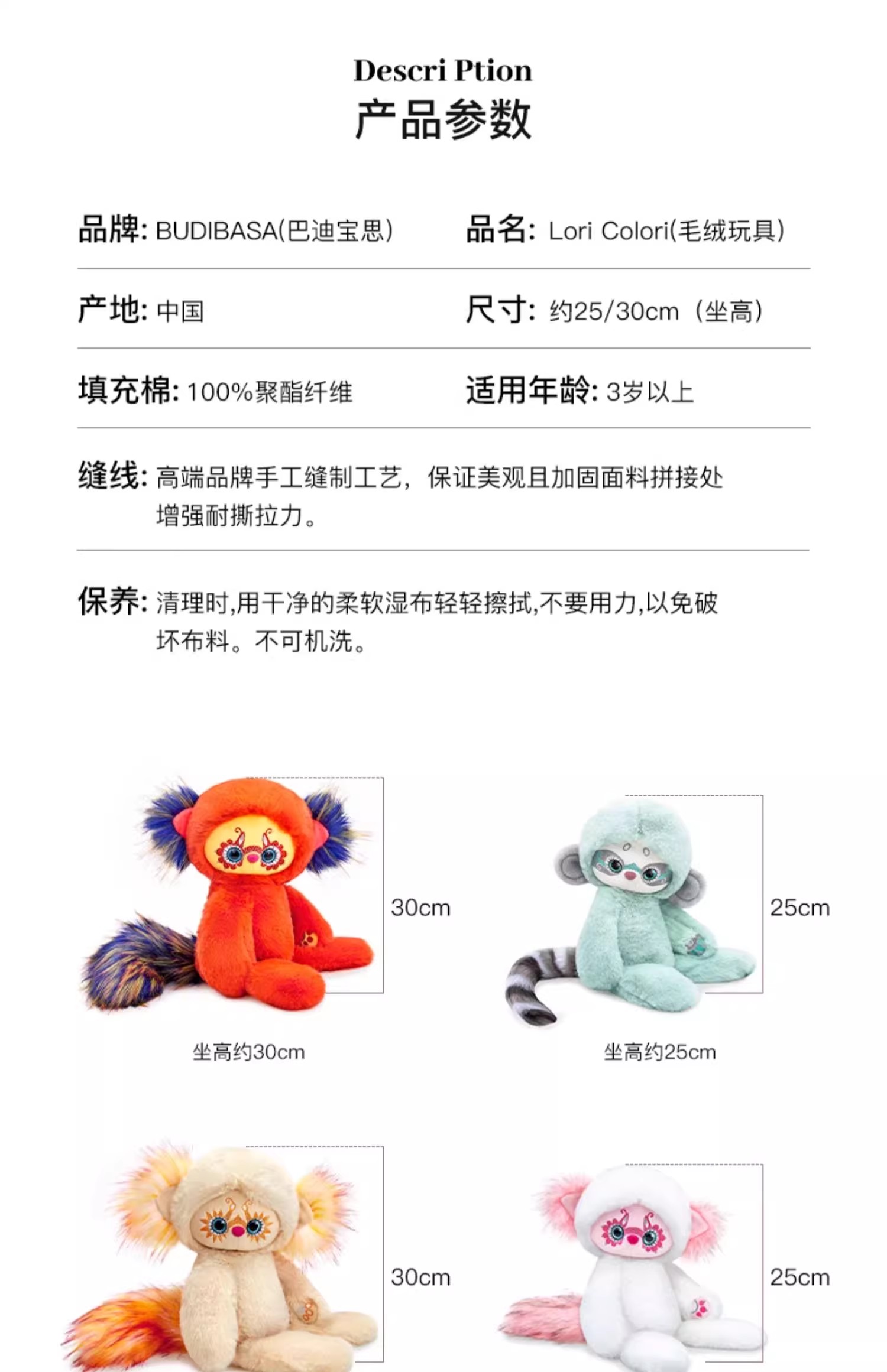 BUDIBASA巴迪宝思萝莉可萝莉桃可玫粉25cm毛绒玩具