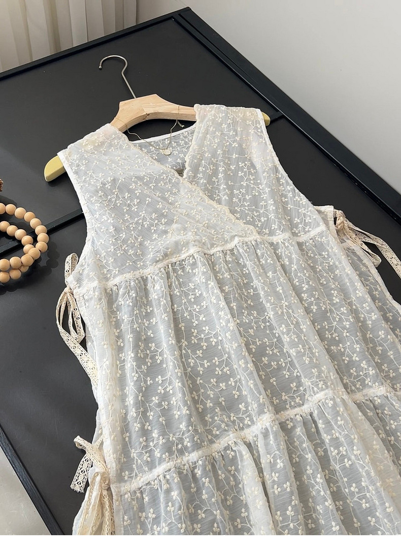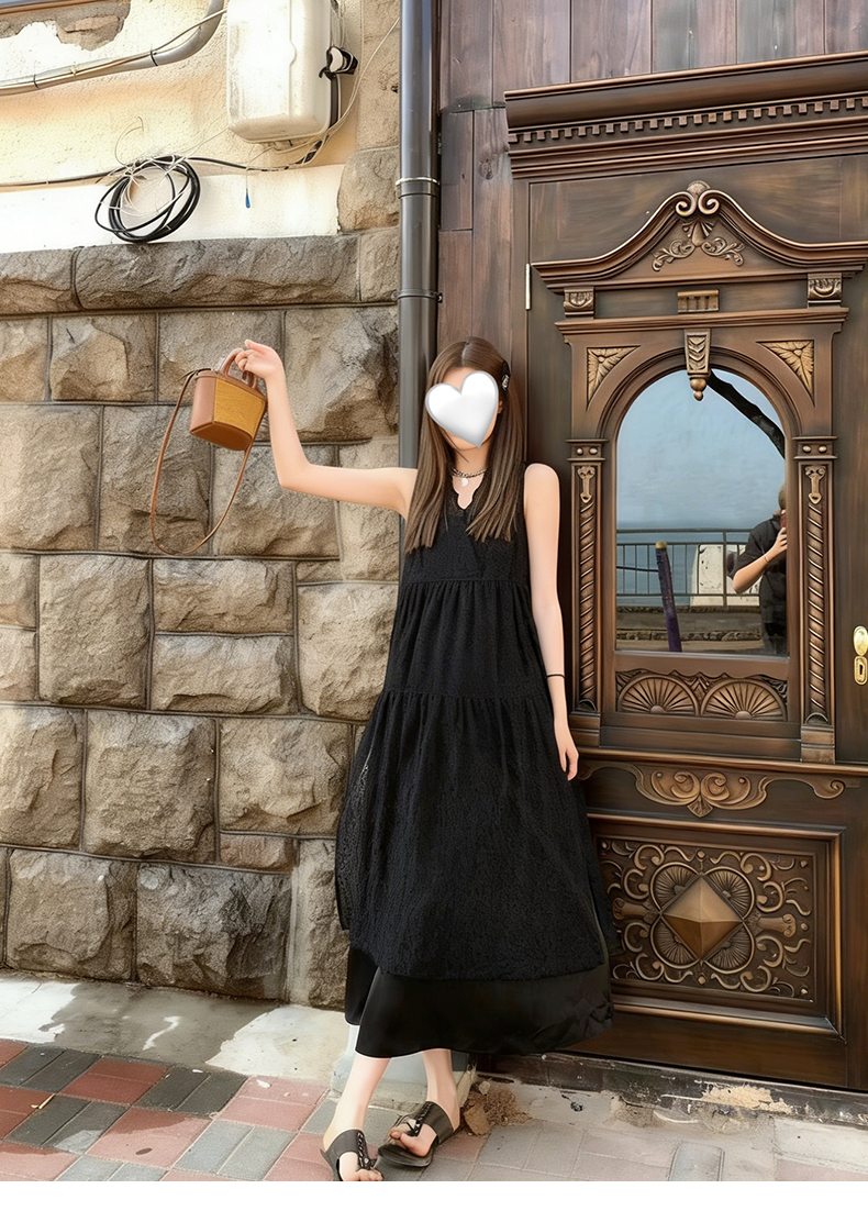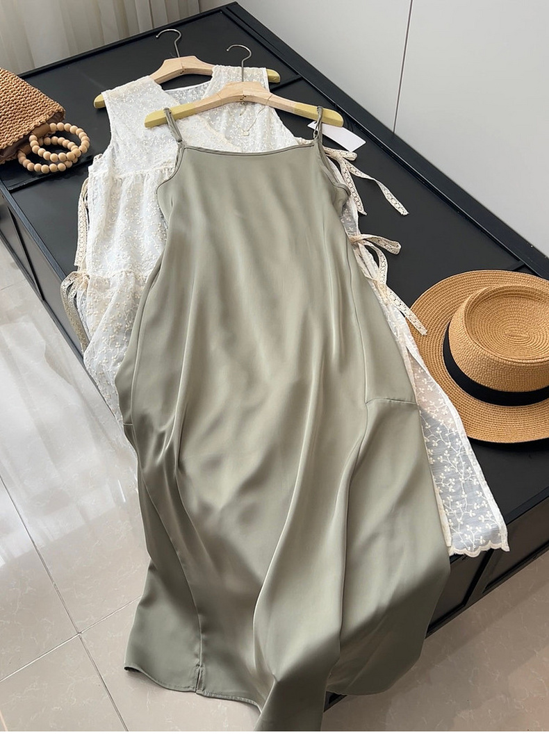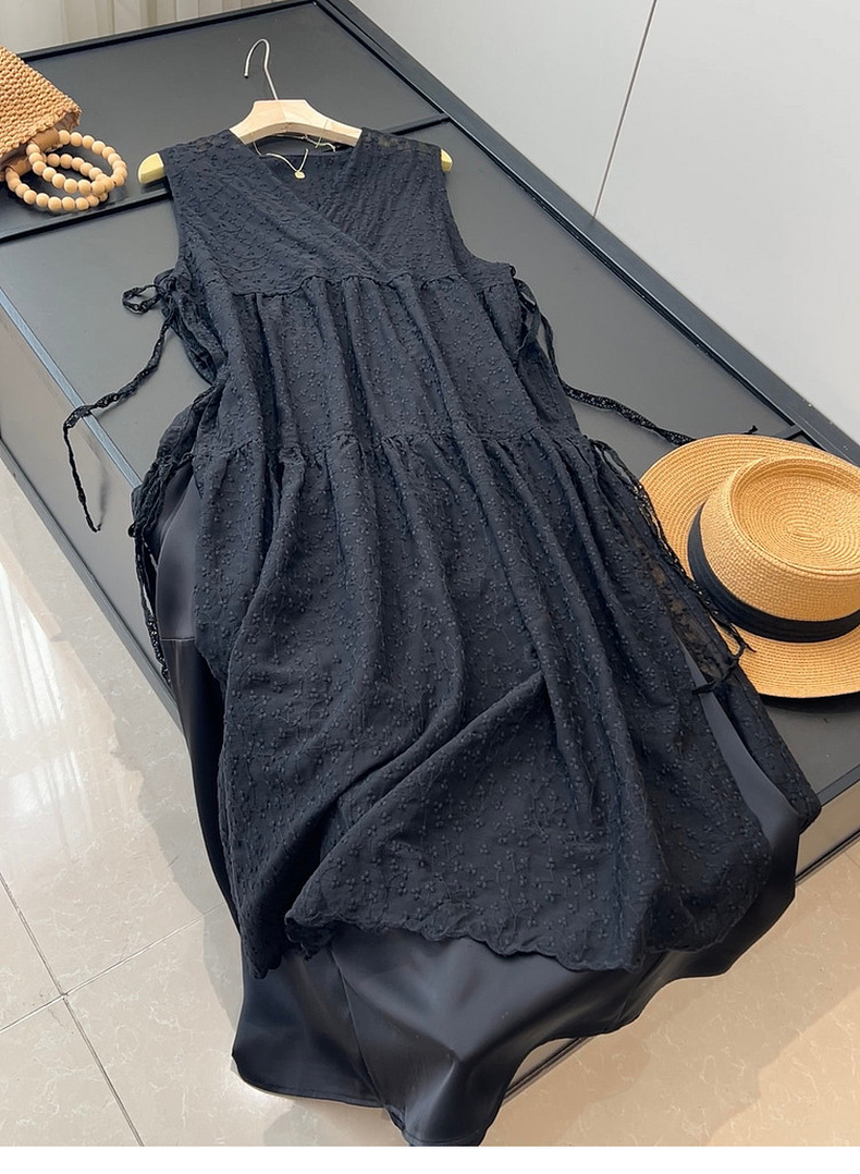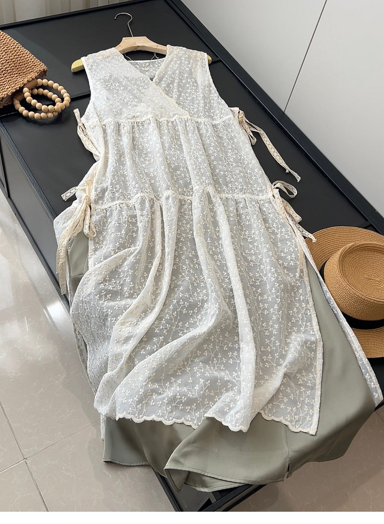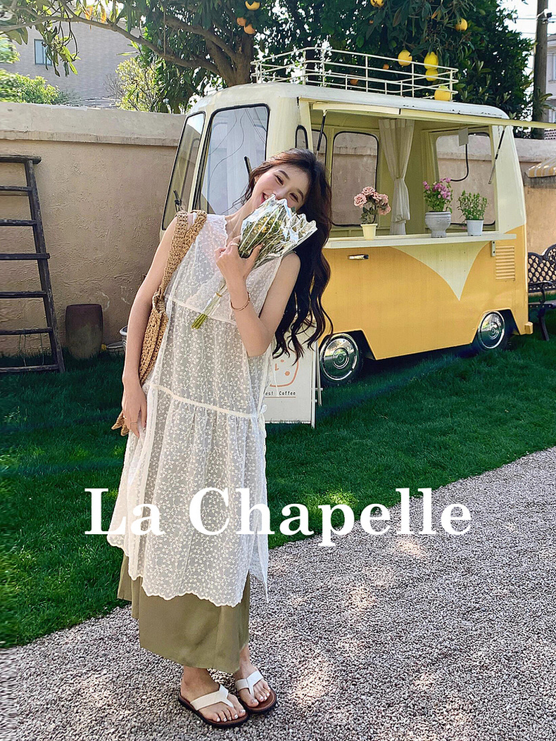 专柜实拍【蕾丝两件套】拉夏贝尔/La Chapelle别致刺绣侧边系带无袖连衣裙叠穿净版吊带裙套装