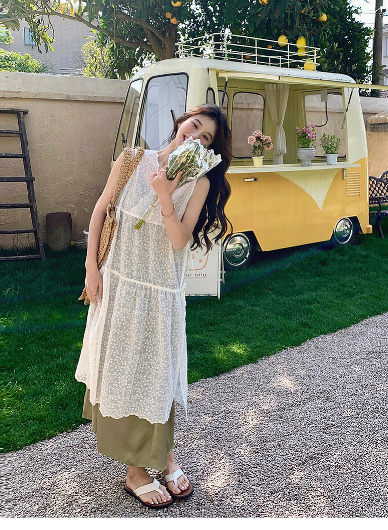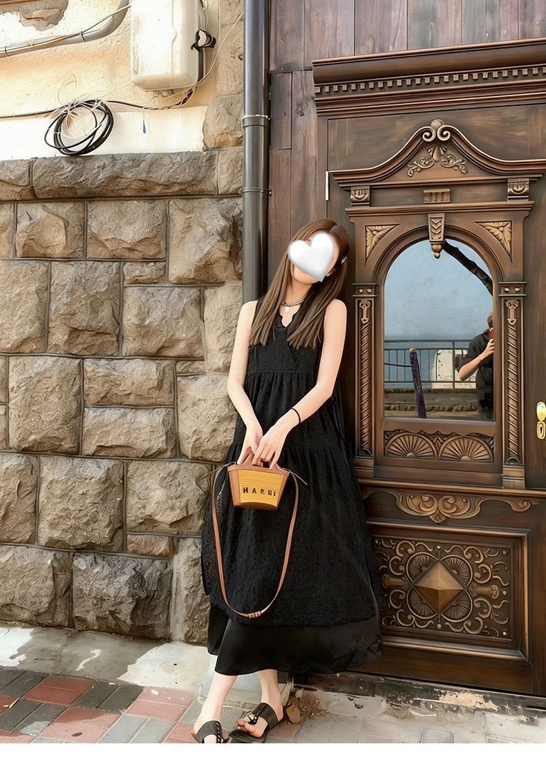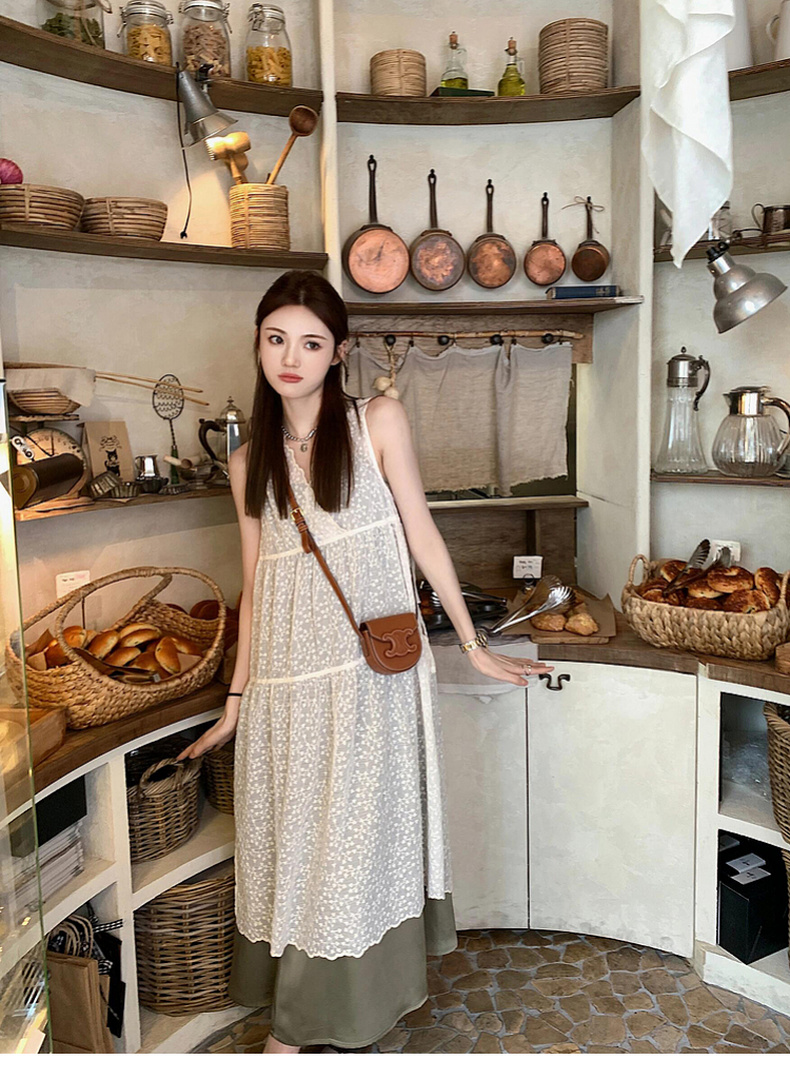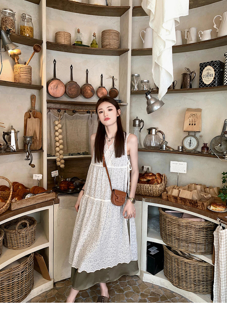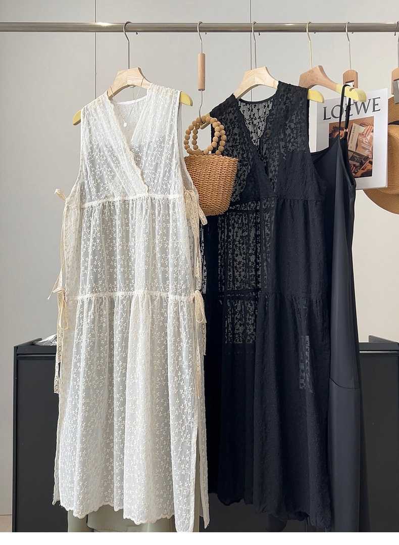 专柜实拍【蕾丝两件套】拉夏贝尔/La Chapelle别致刺绣侧边系带无袖连衣裙叠穿净版吊带裙套装