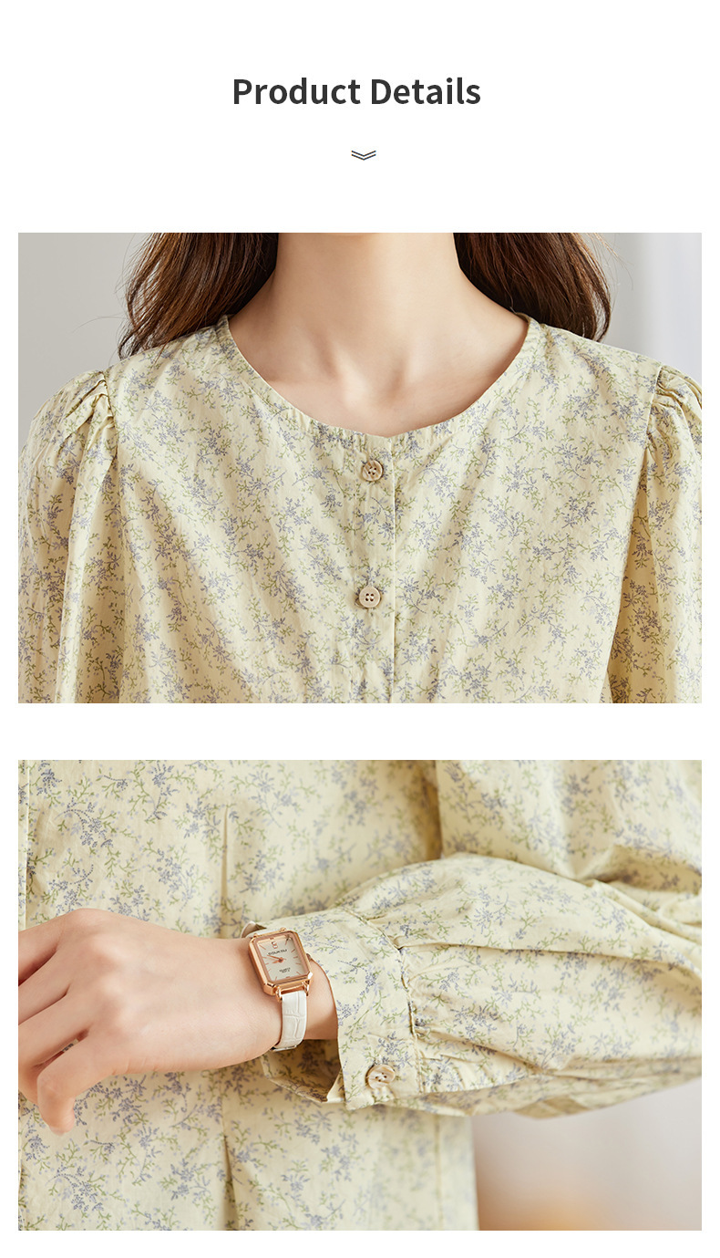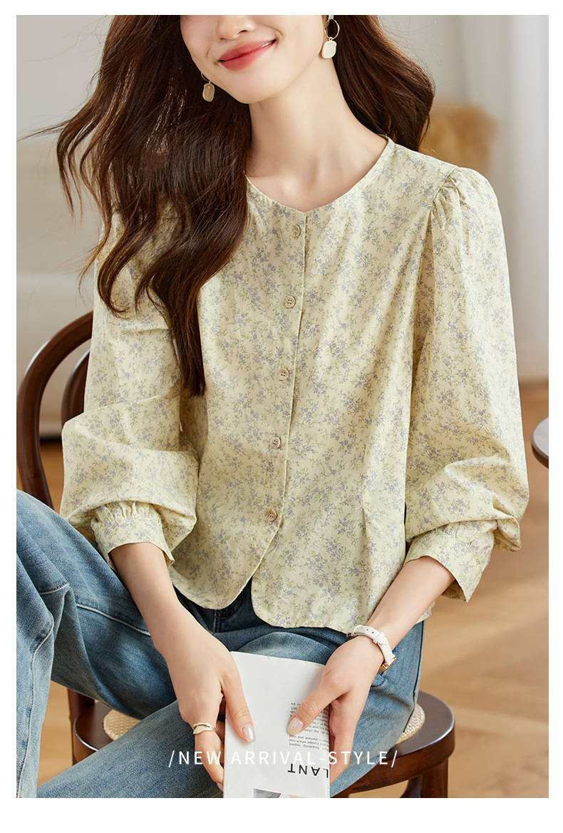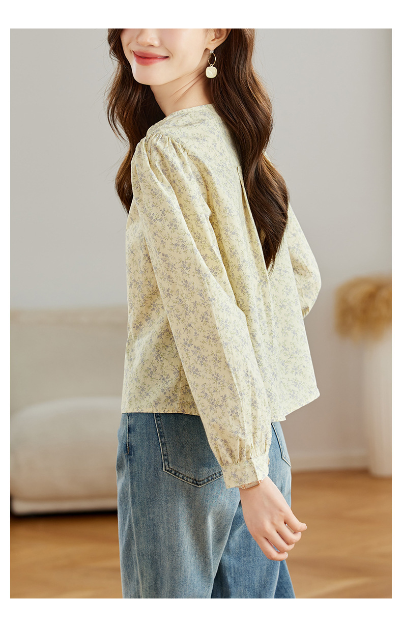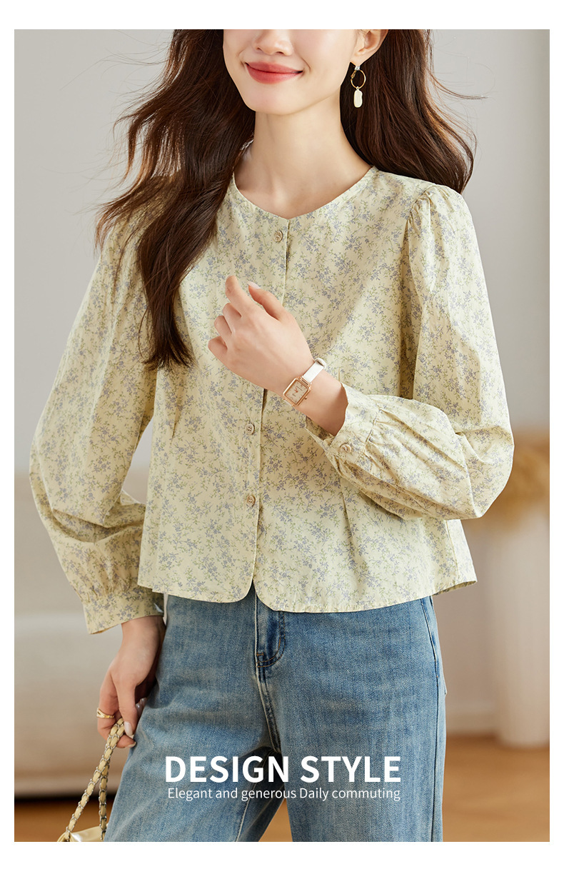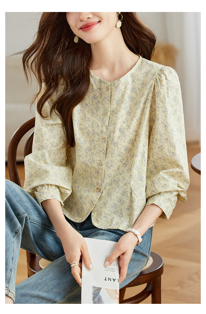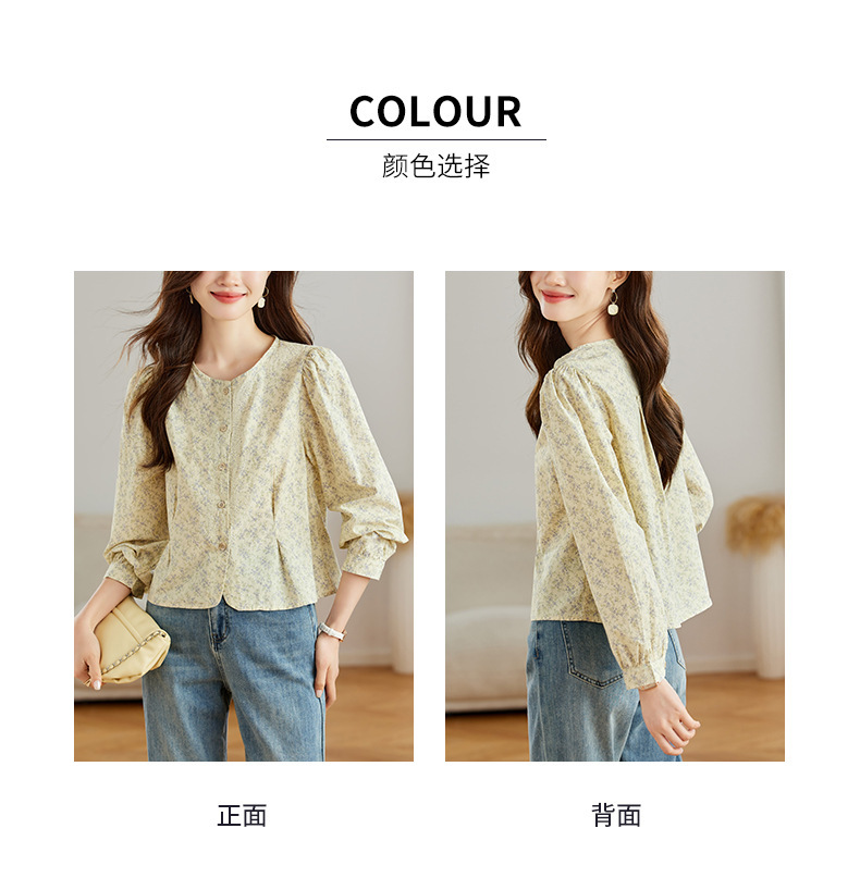 丁摩 圆领碎花衬衫女长袖田园风上衣甜美纯棉衬衣5ZF-47026