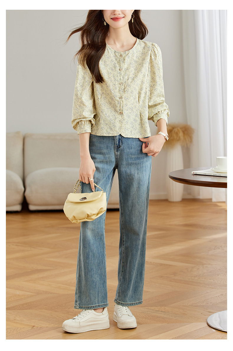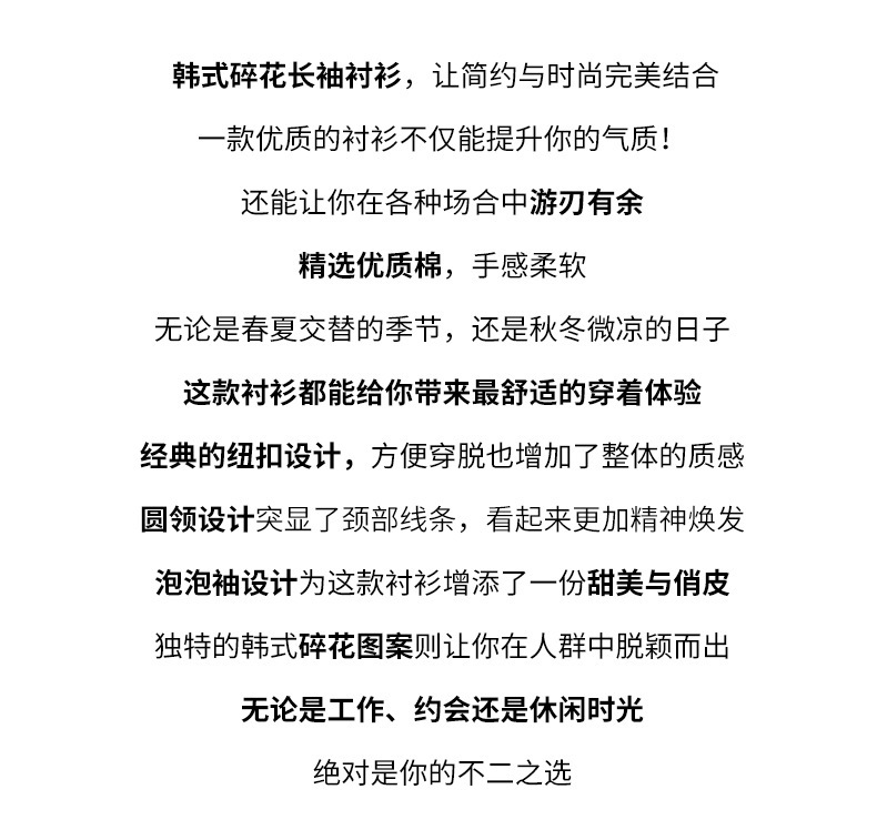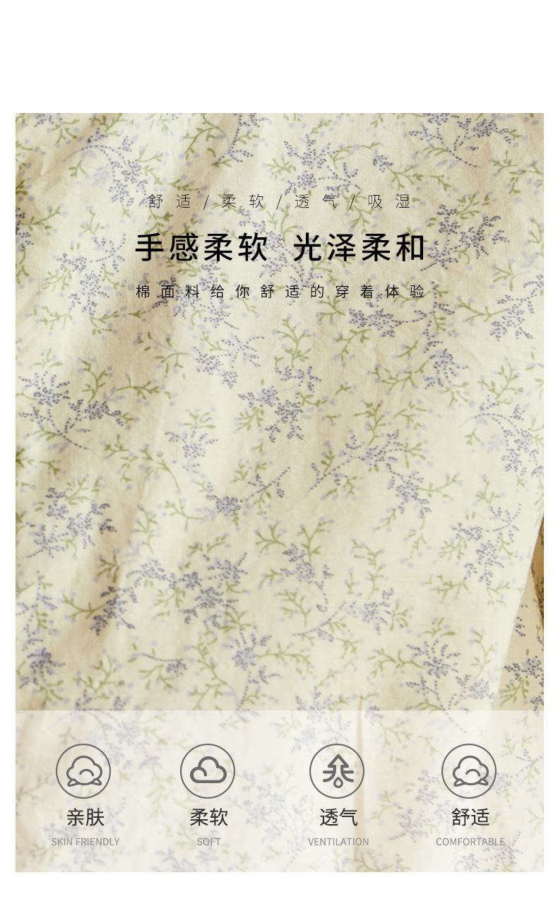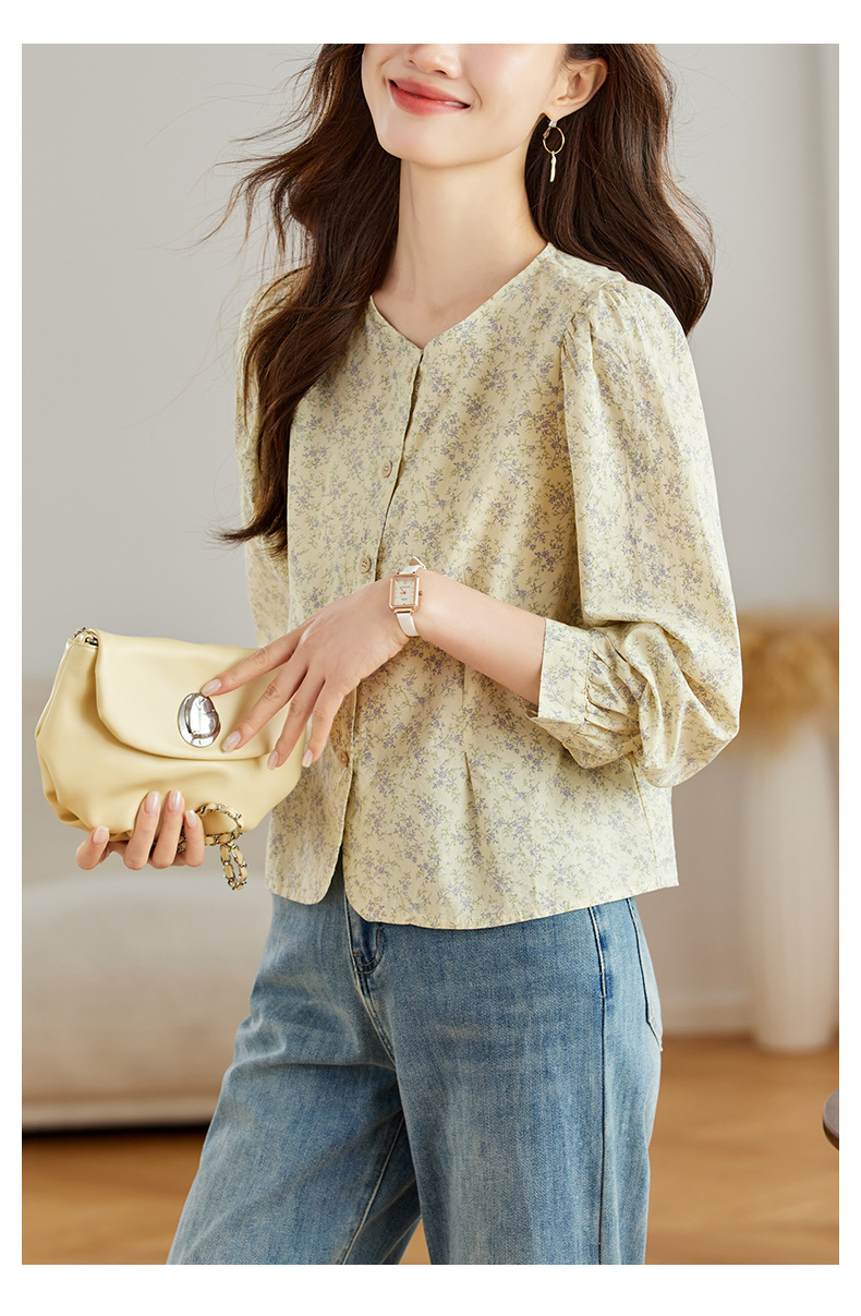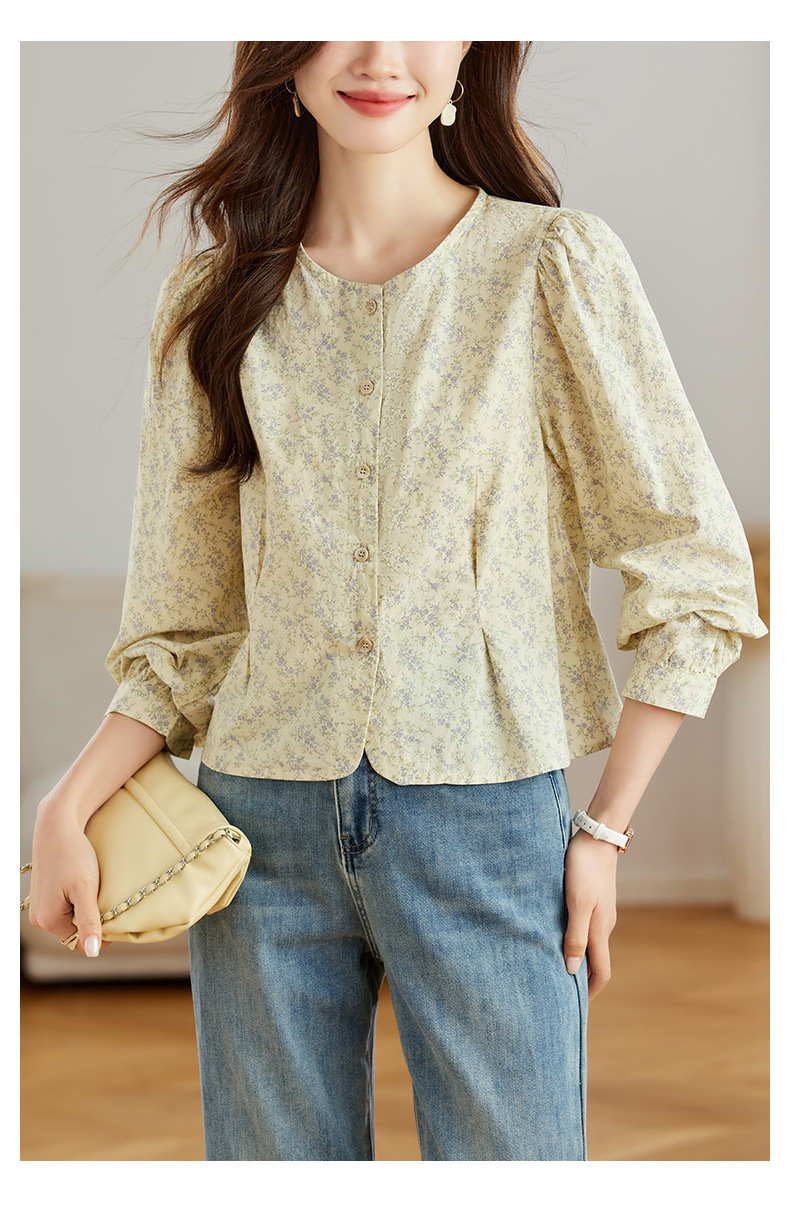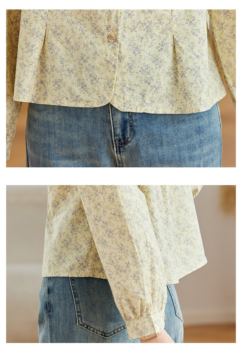 丁摩 圆领碎花衬衫女长袖田园风上衣甜美纯棉衬衣5ZF-47026