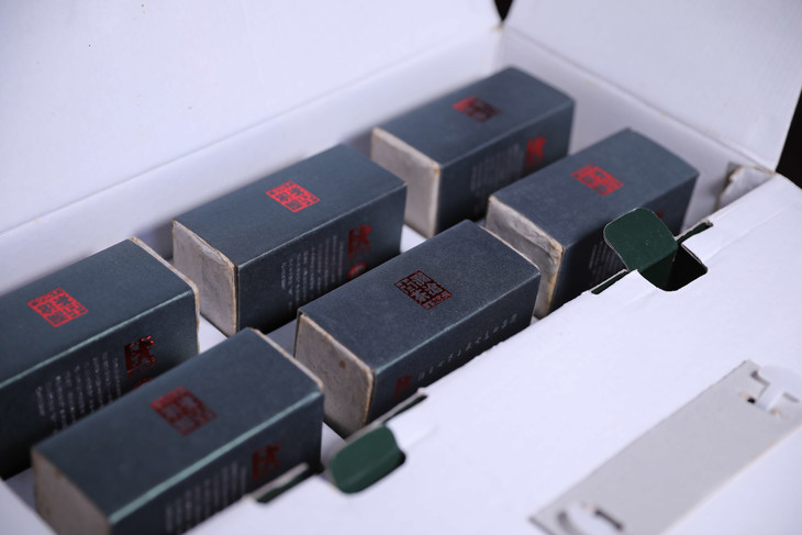 以景迈、芒景、邦崴和马背茶的古树茶为原料,原料存放两年,多次拼配而成。