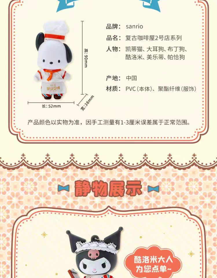 日本三丽鸥Sanrio复古咖啡厅2号店系列库洛米美乐蒂玉桂狗KT挂件