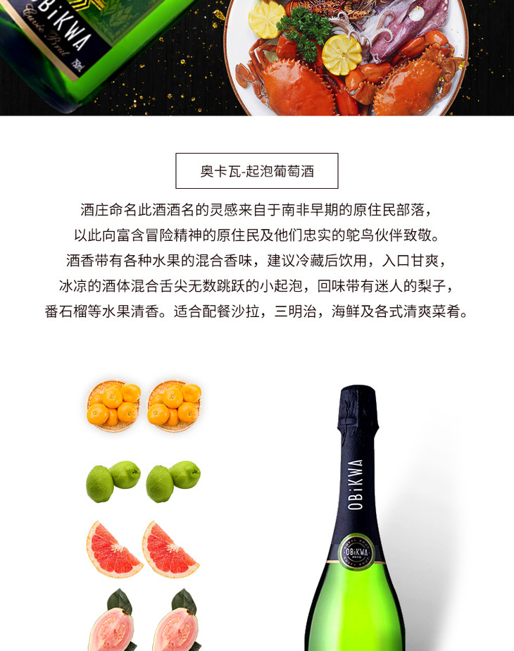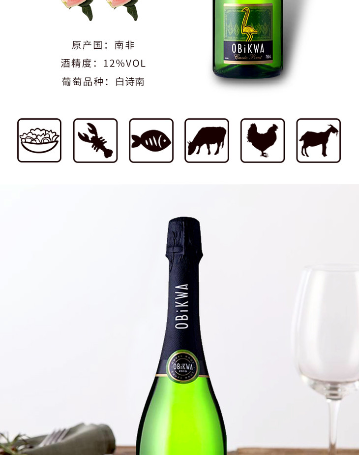 南非原瓶进口葡萄酒 奥卡瓦起泡葡萄酒 Obikwa sparkling 750ml