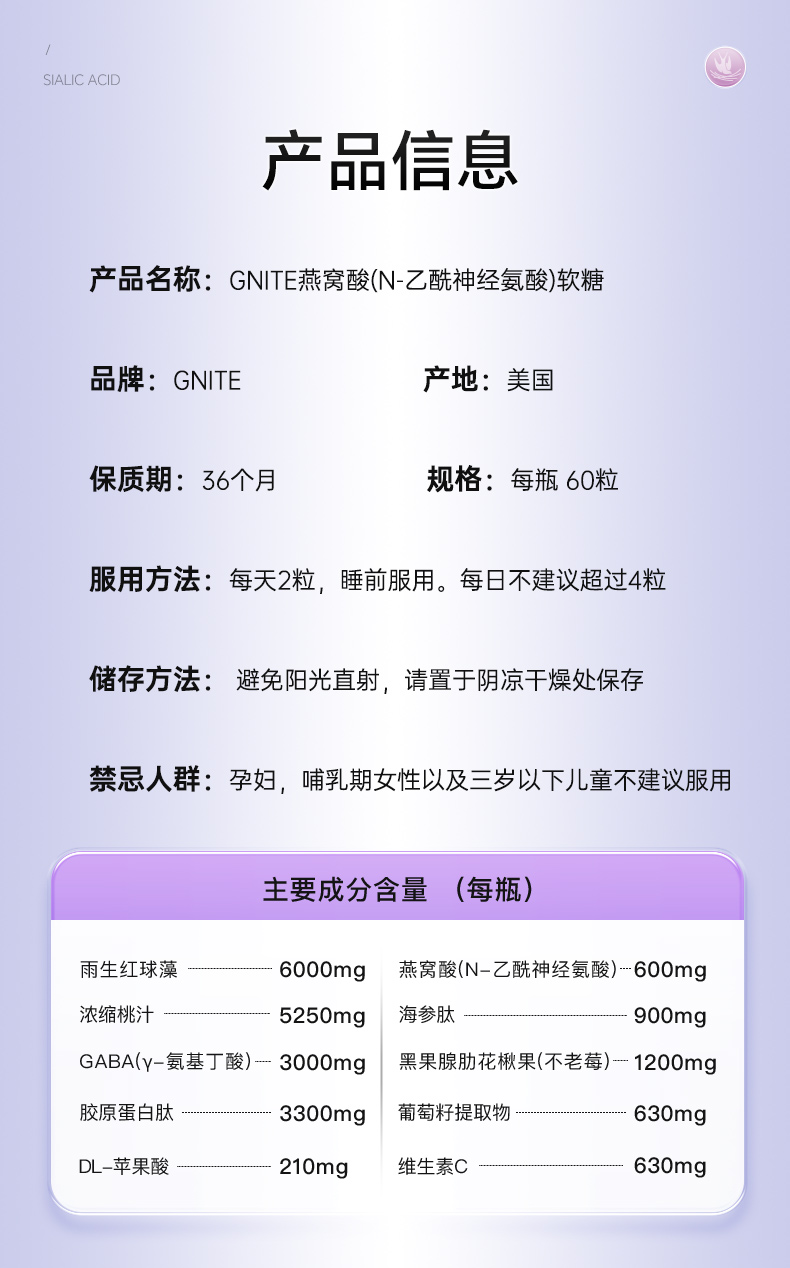 【北京卫视专属】GNITE美国胶原蛋白肽美人肌gaba舒压燕窝酸软糖